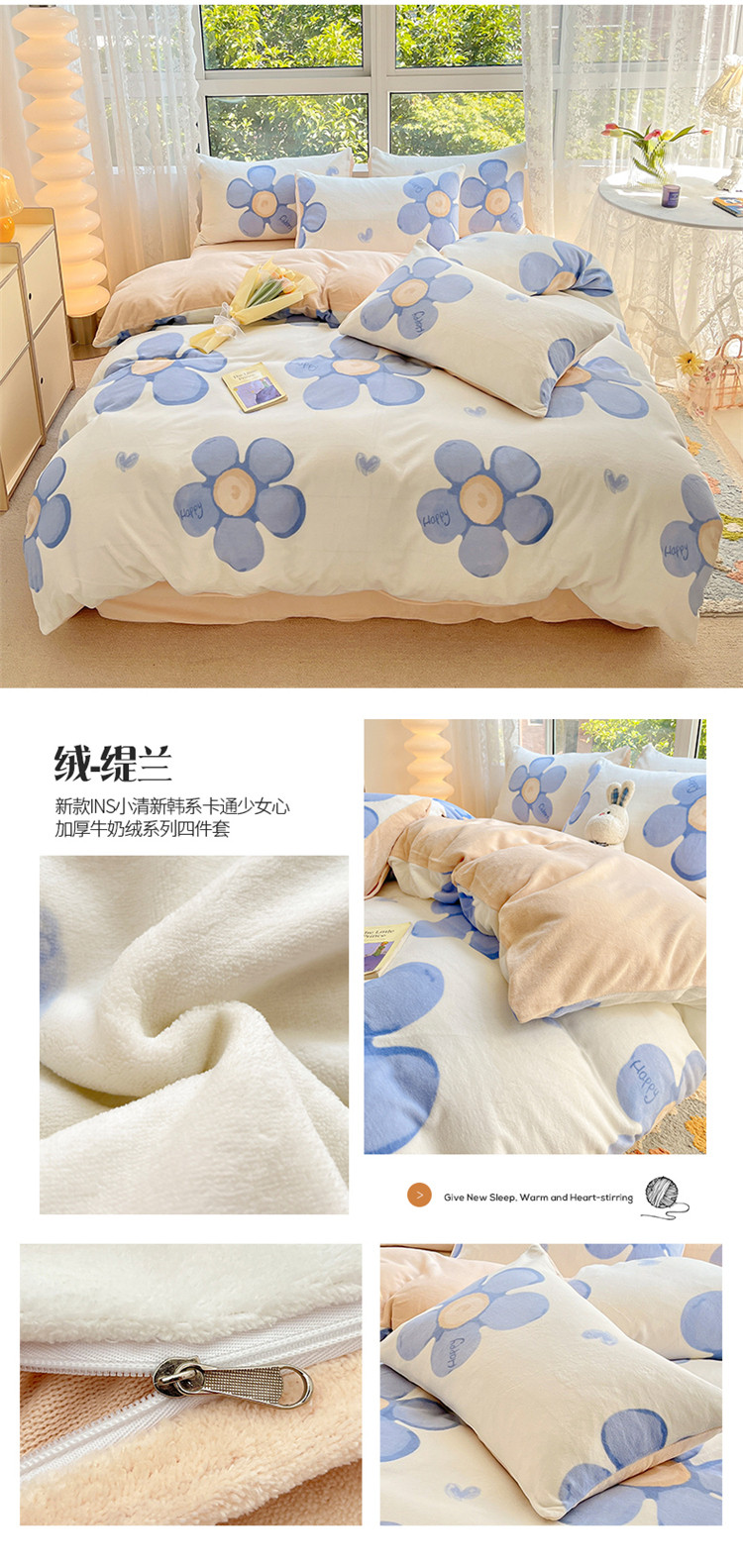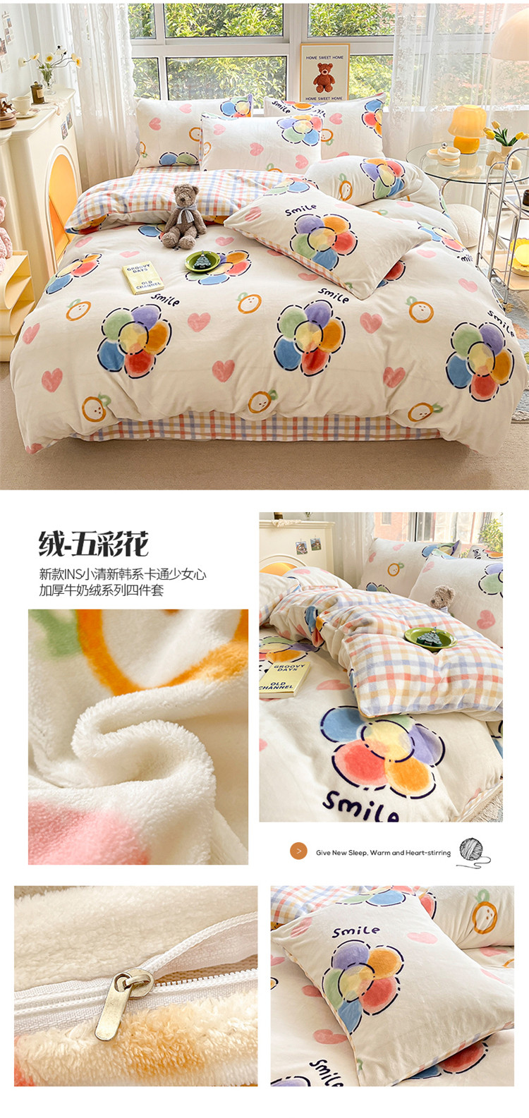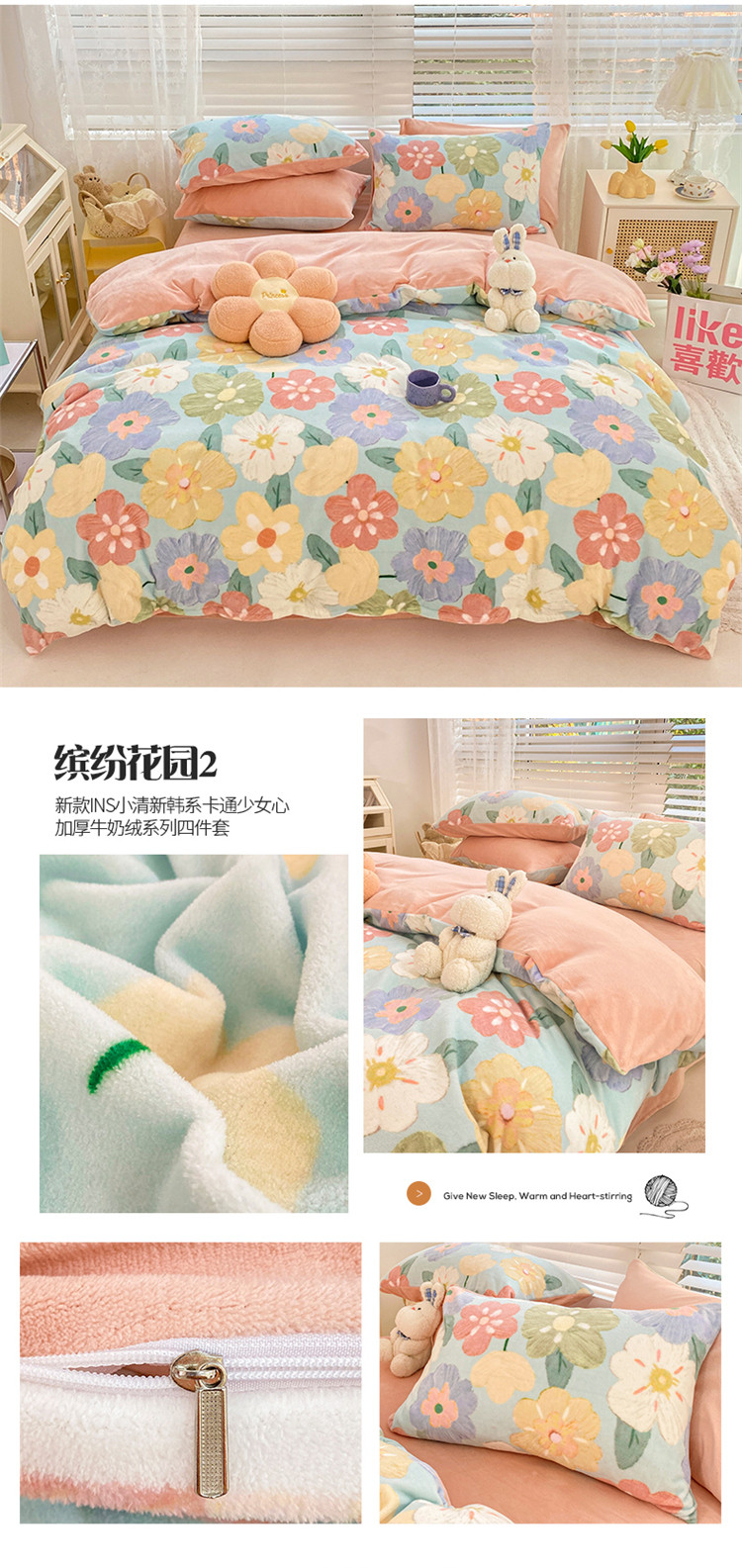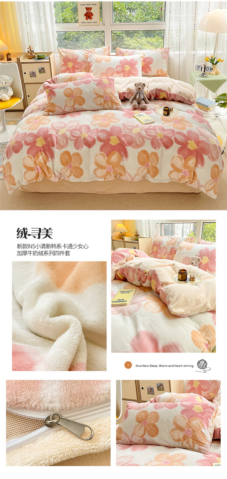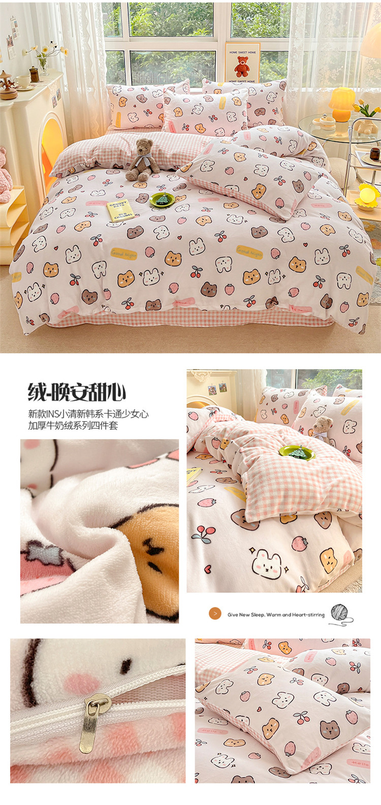 商品名称:(总)桃子家居 2022新款ins小清新加厚牛奶绒系列四件套