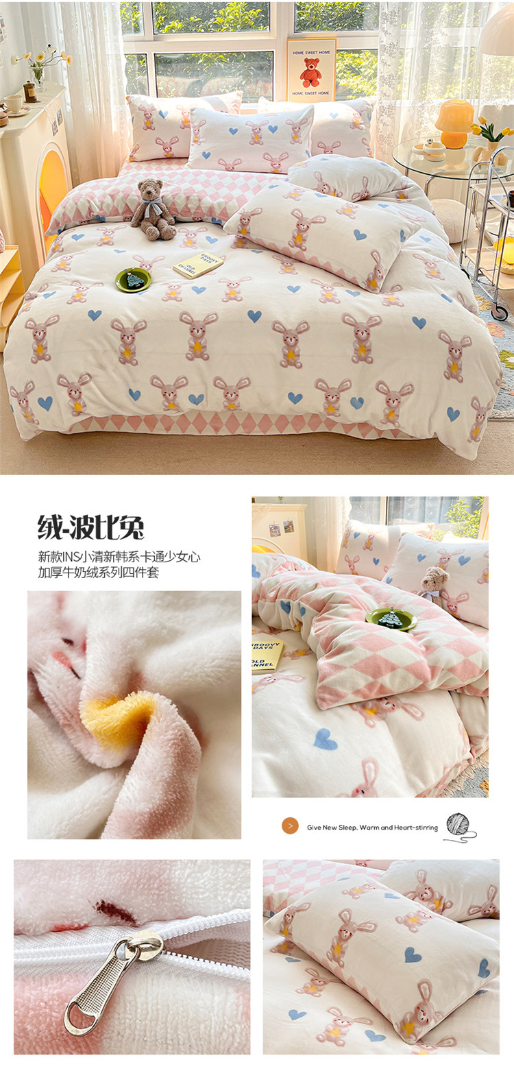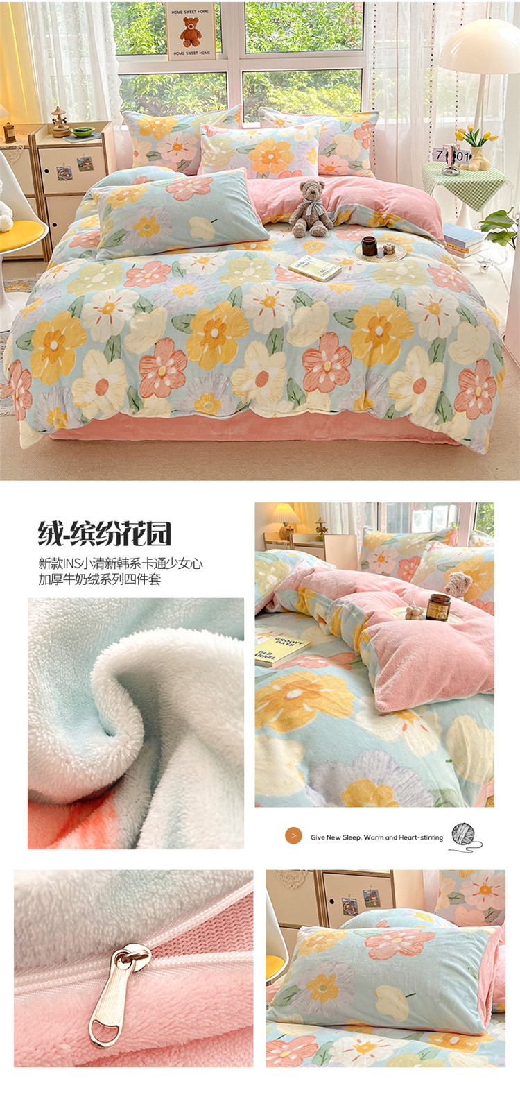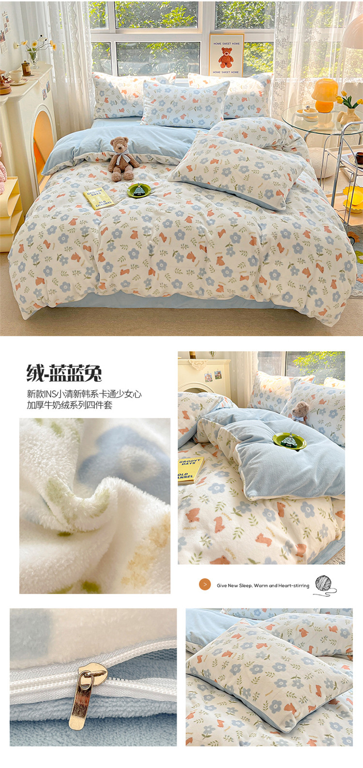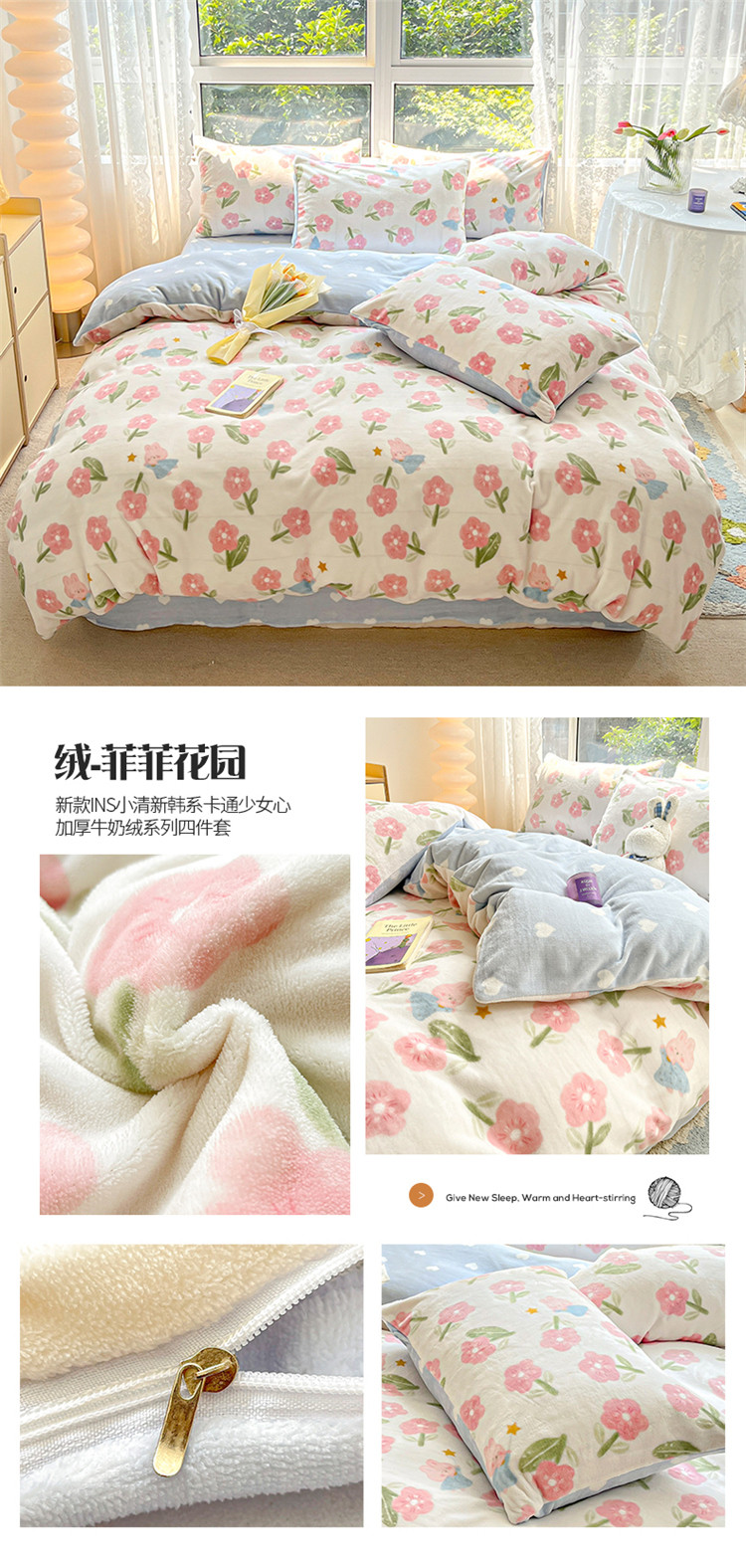 商品名称:(总)桃子家居 2022新款ins小清新加厚牛奶绒系列四件套
