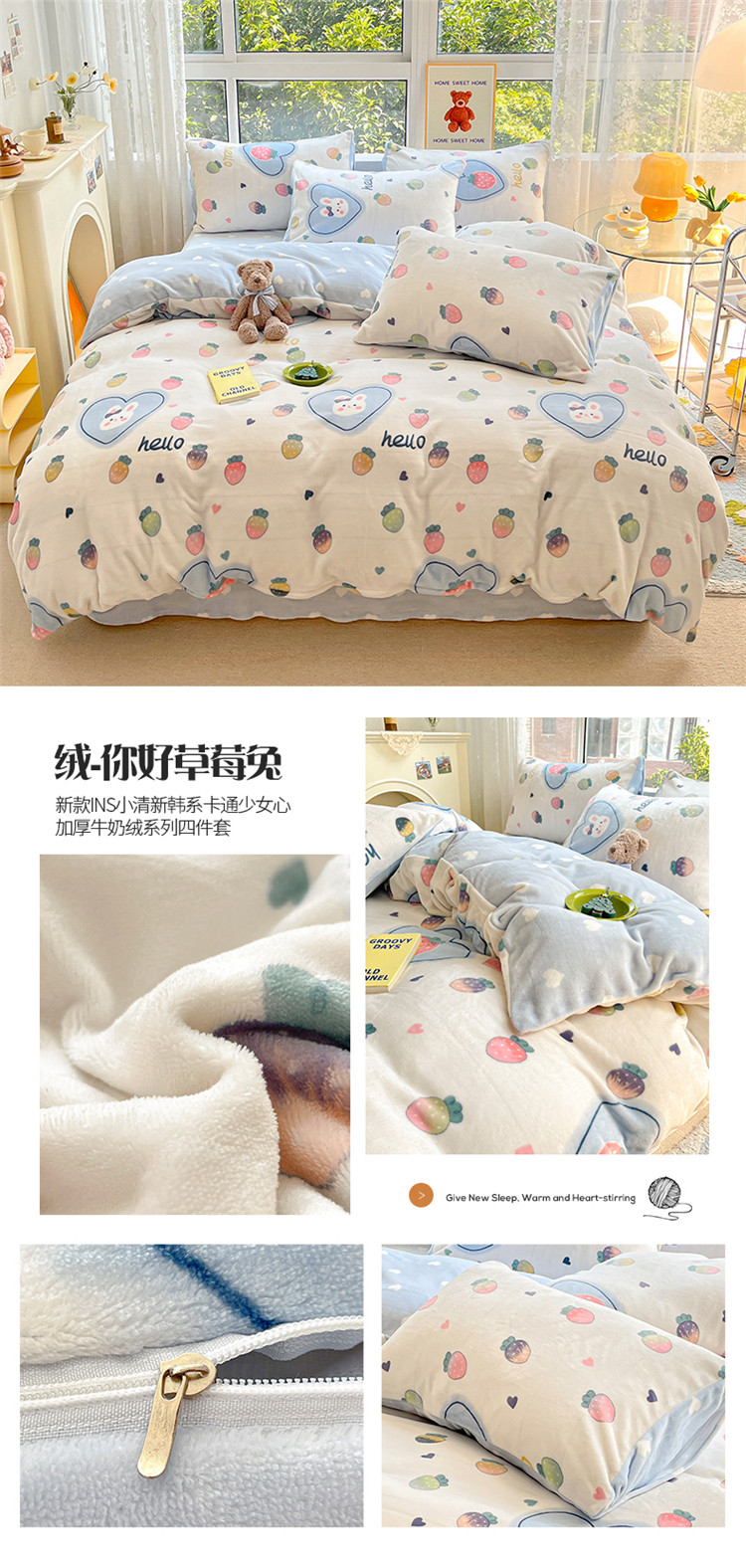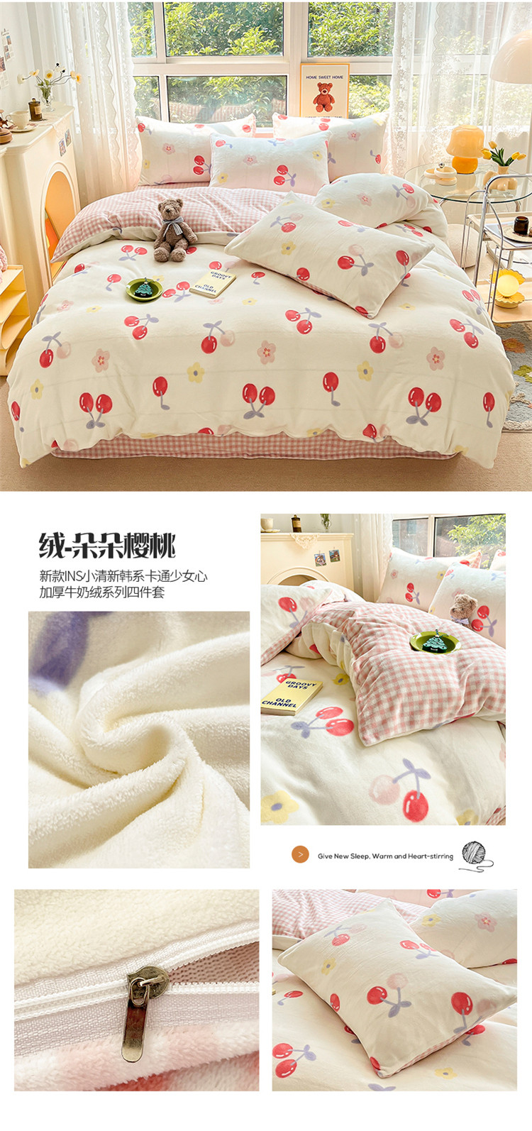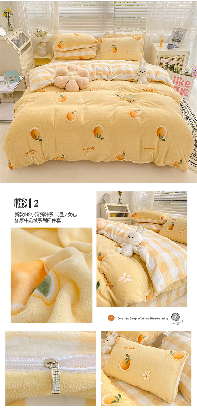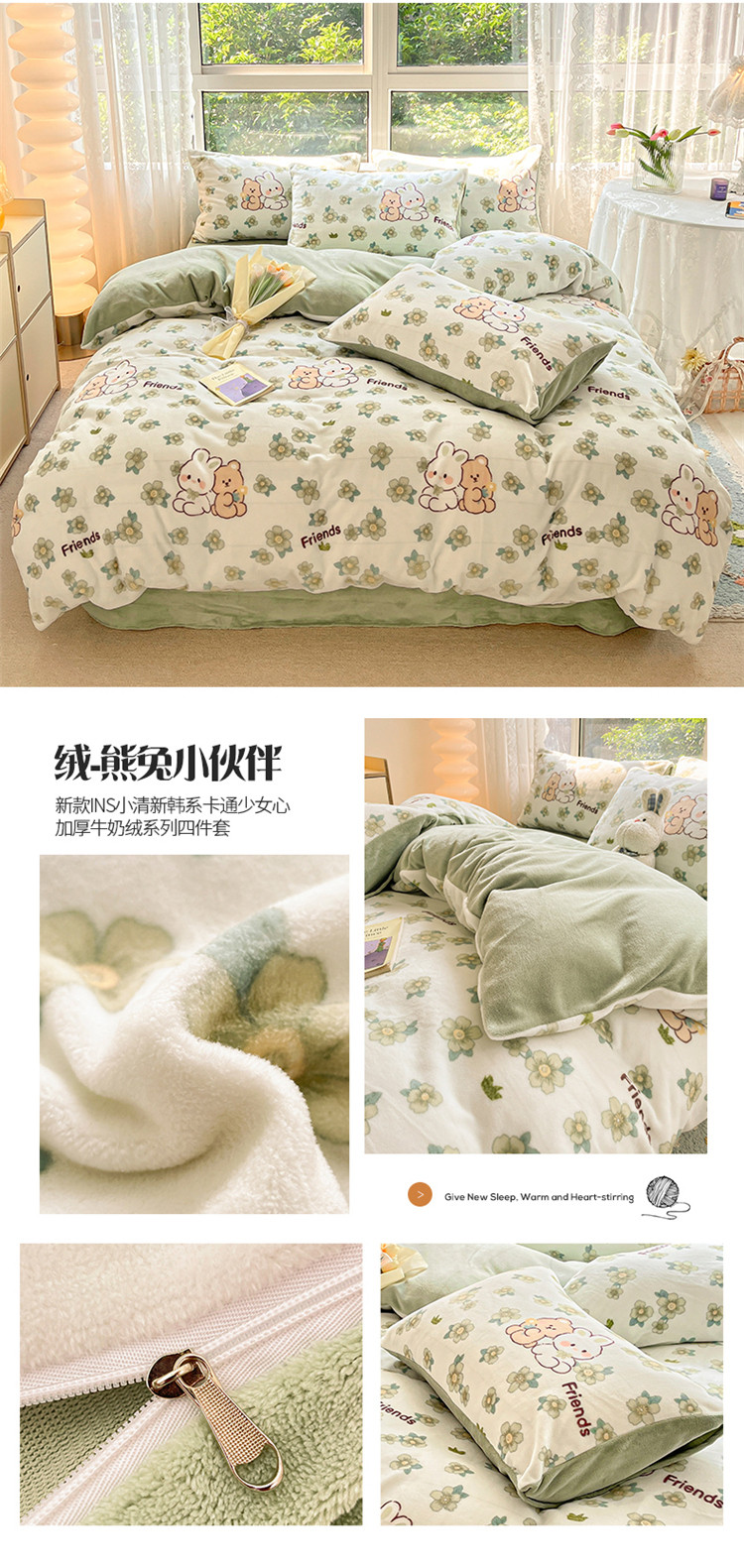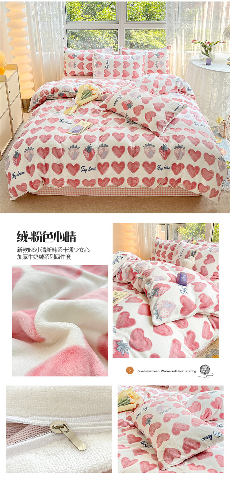 商品名称:(总)桃子家居 2022新款ins小清新加厚牛奶绒系列四件套