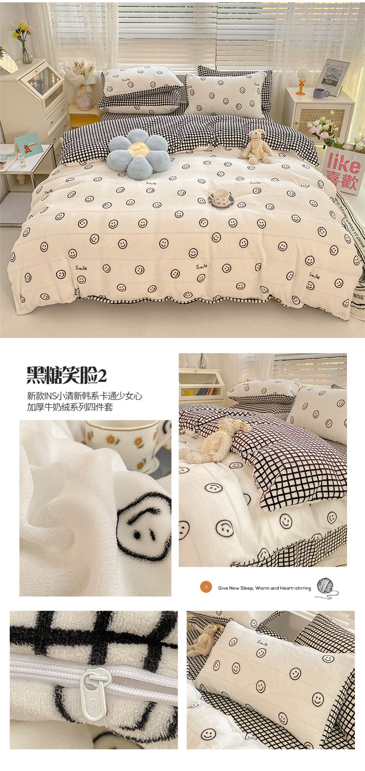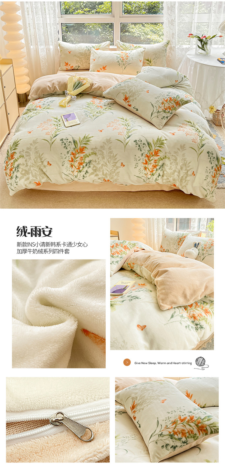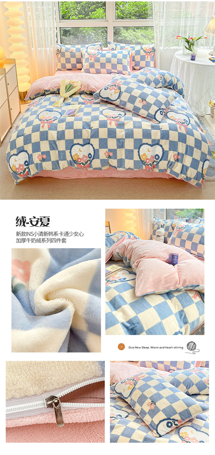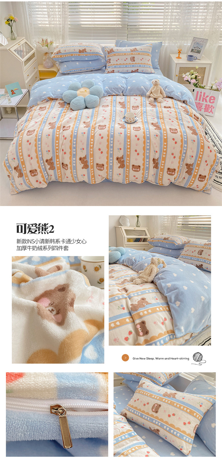 商品名称:(总)桃子家居 2022新款ins小清新加厚牛奶绒系列四件套