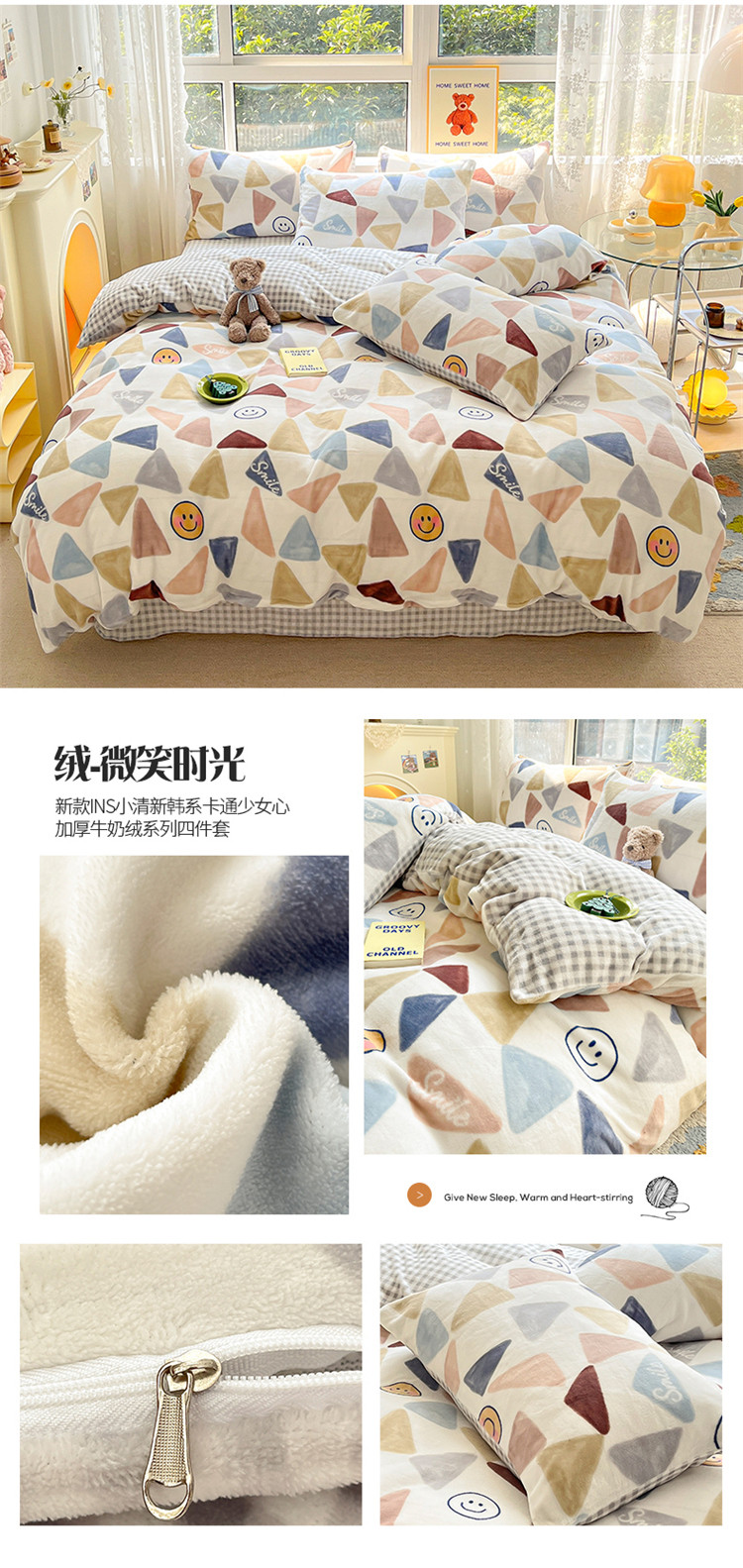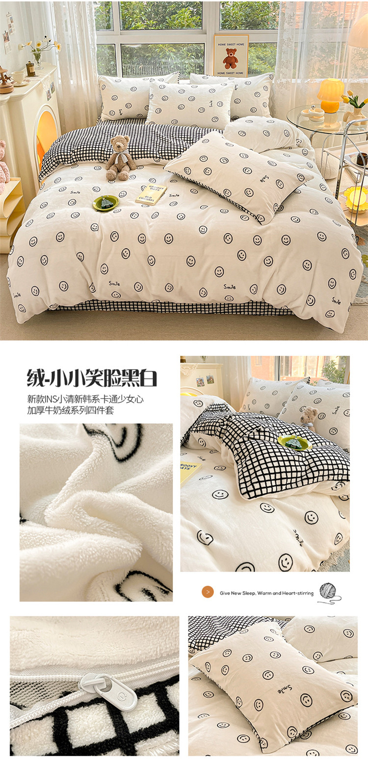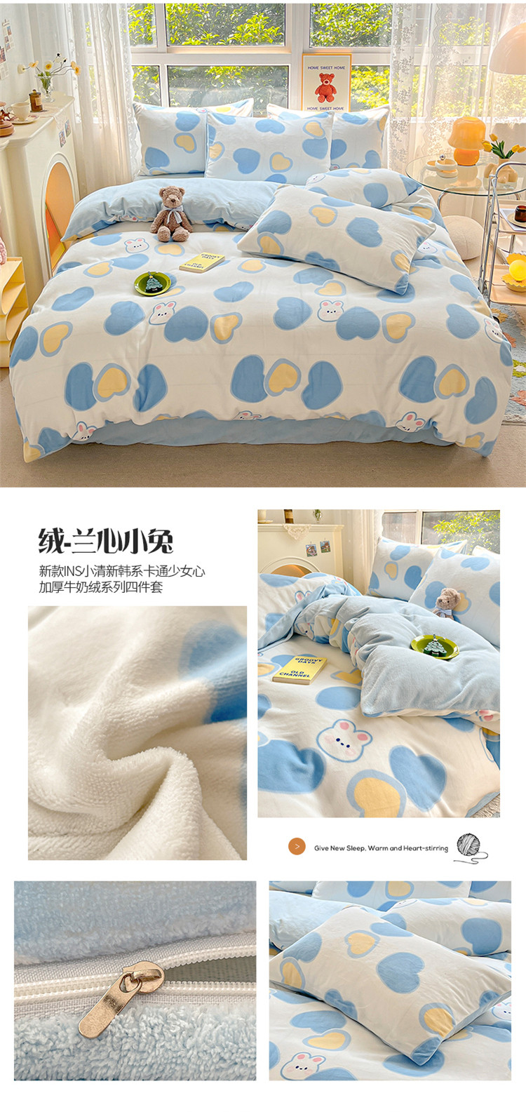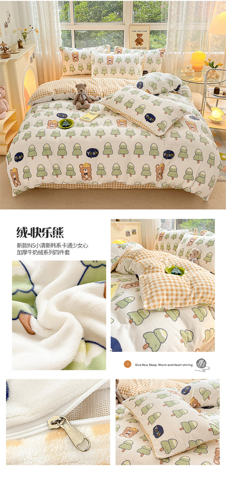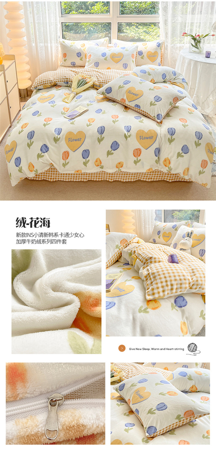 商品名称:(总)桃子家居 2022新款ins小清新加厚牛奶绒系列四件套