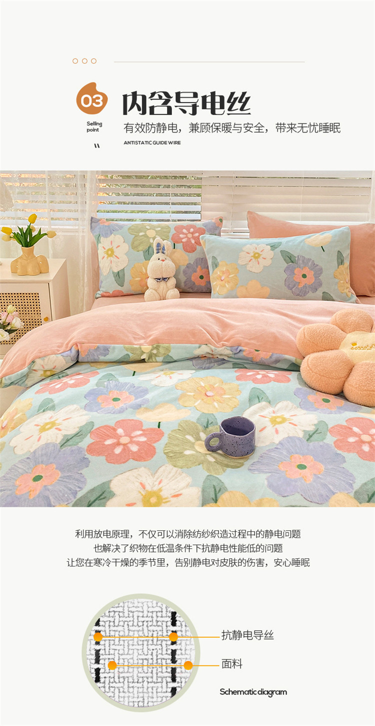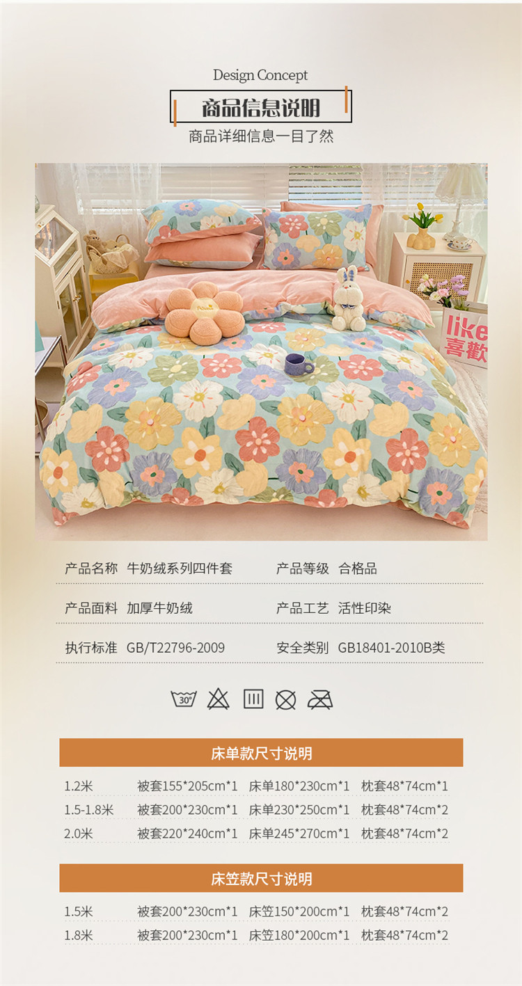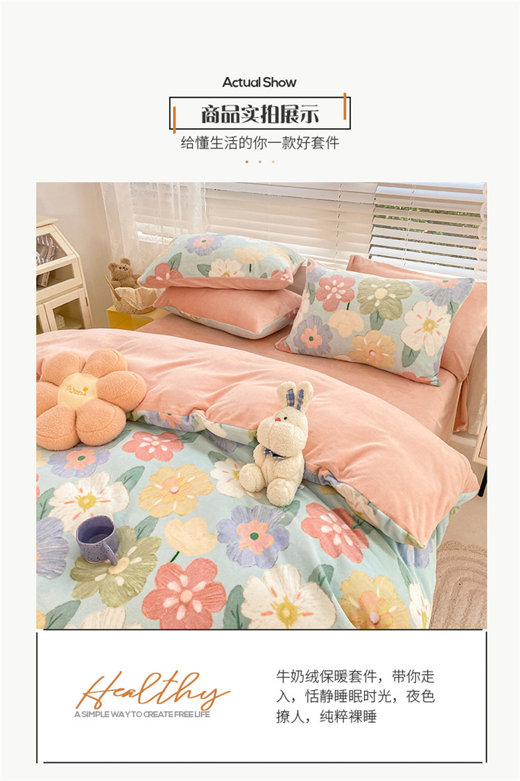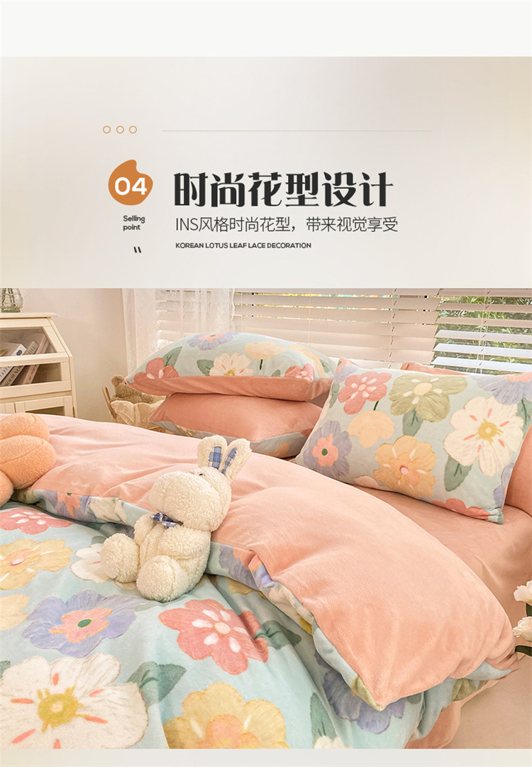 商品名称:桃子家居 2022新款ins小清新韩系加厚牛奶绒系列四件套 绒-缤纷花园2