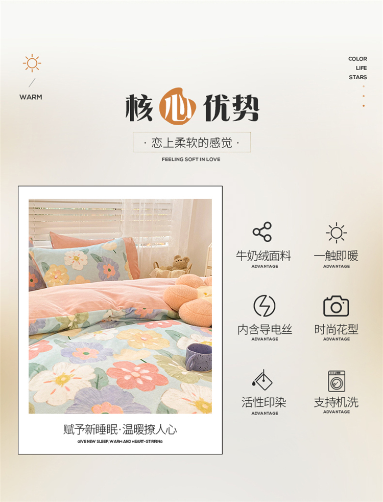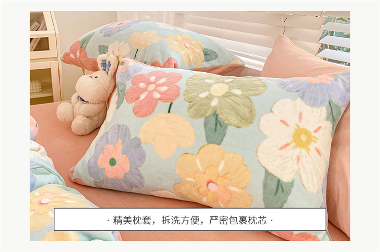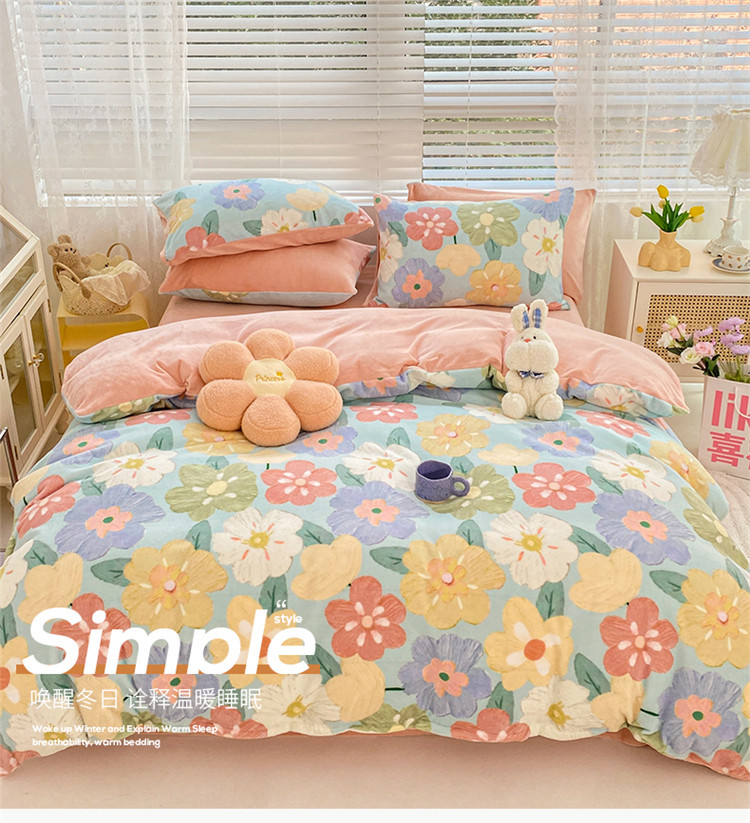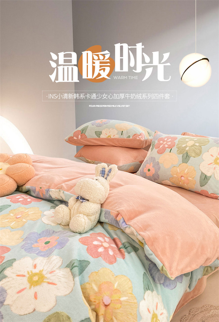 桃子家居 2022新款ins小清新韩系加厚牛奶绒系列四件套 绒-缤纷花园2