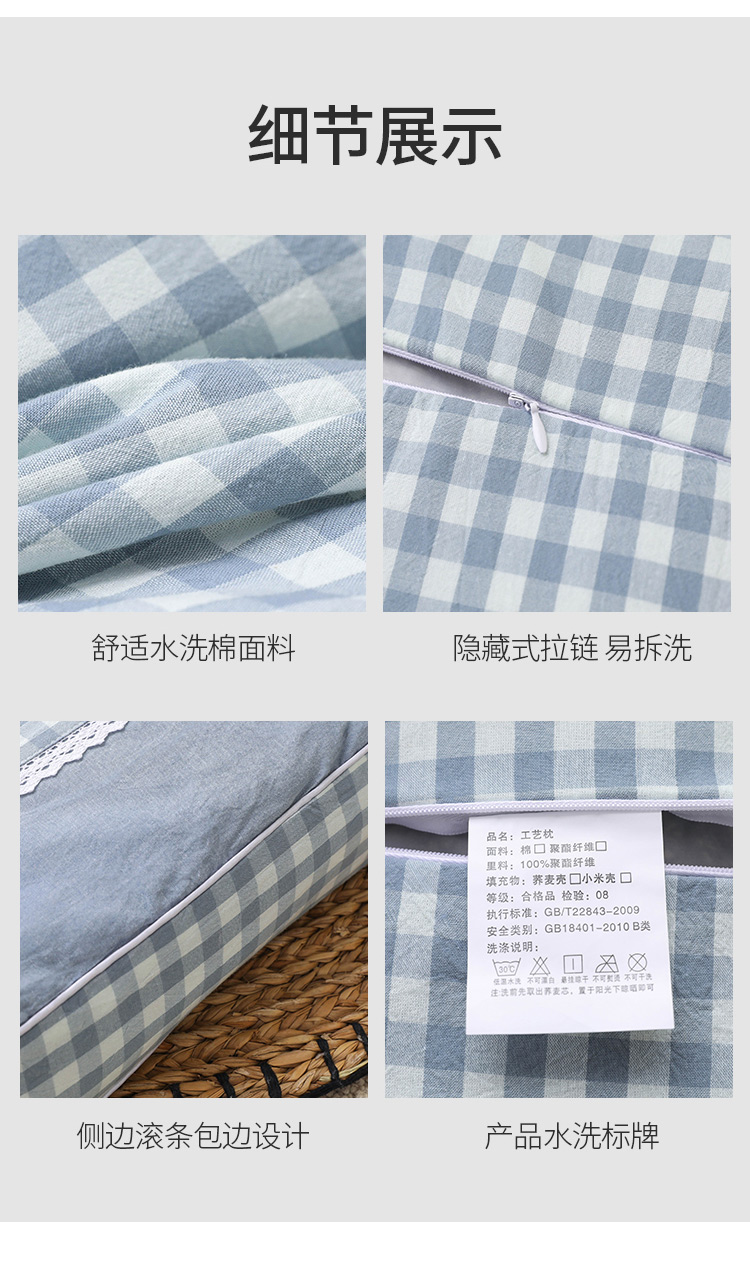 商品名称:(总)织布人 2022新款纯棉水洗棉宫廷风荞麦枕硬方枕头枕芯