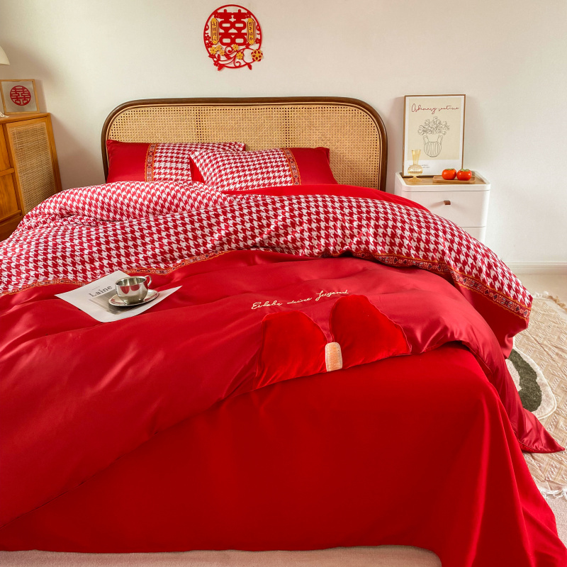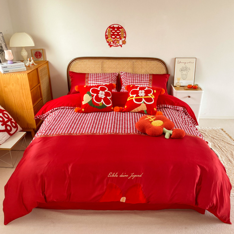 (总)用心 2026年新款双面长绒棉提花婚庆刺绣四件套,喜上喜,禧爱,吉祥