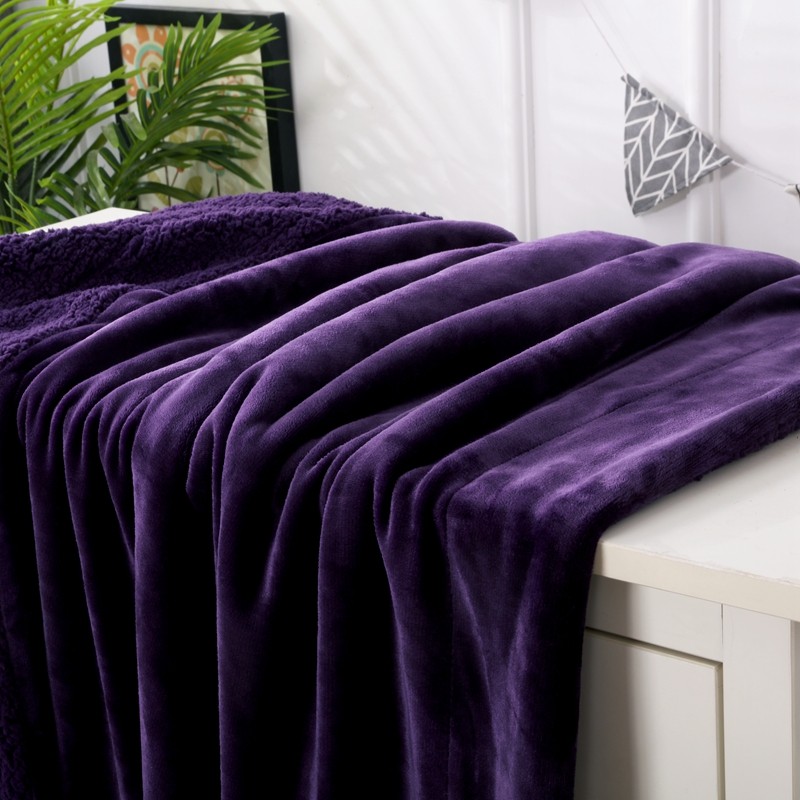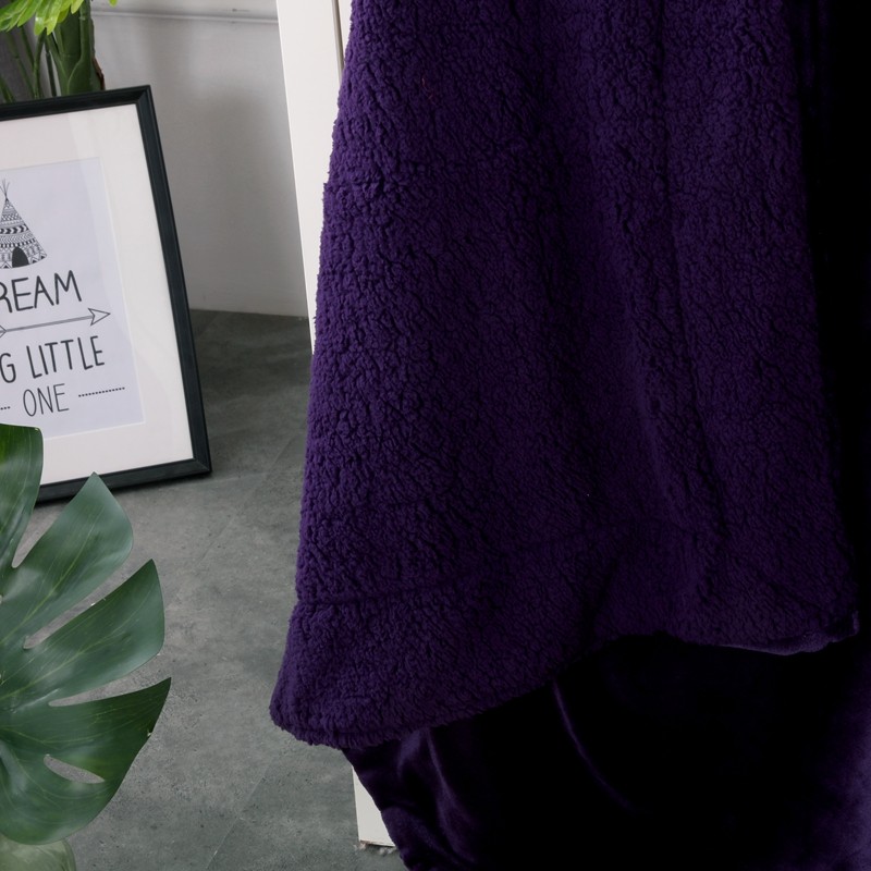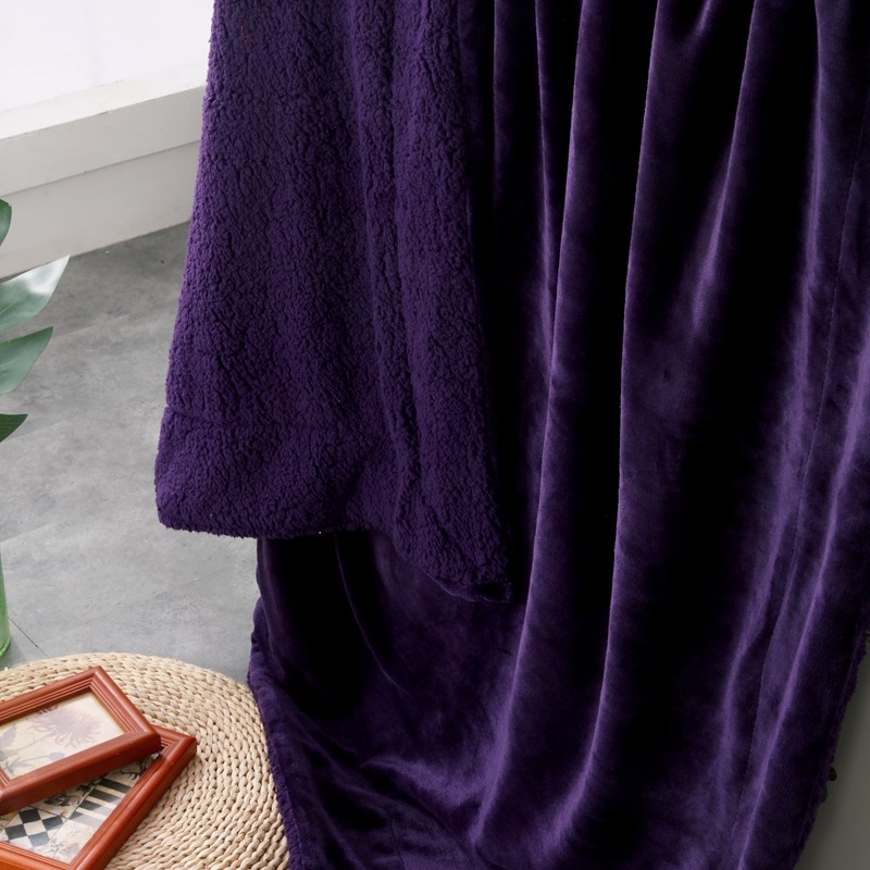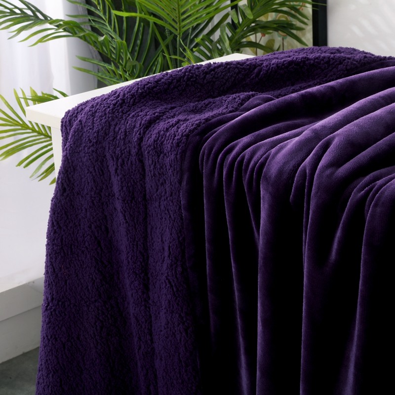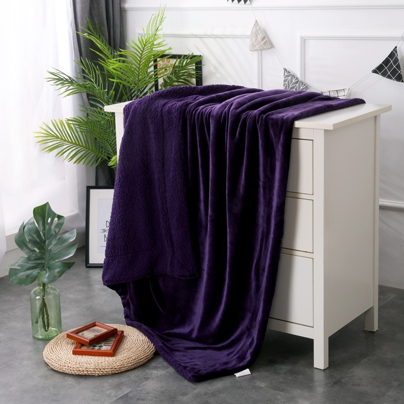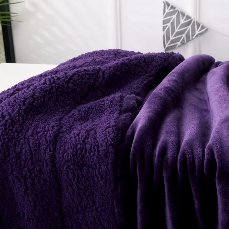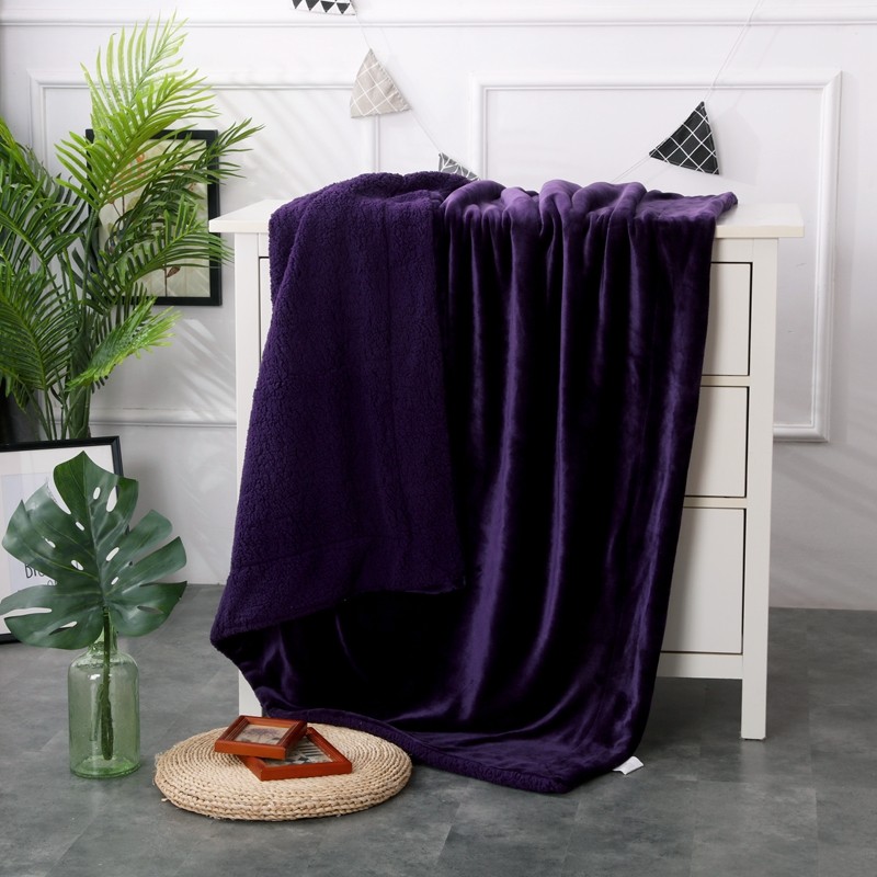 卡琪曼 2022新双面法兰绒羊羔绒毛毯办公室午睡盖毯子 紫色