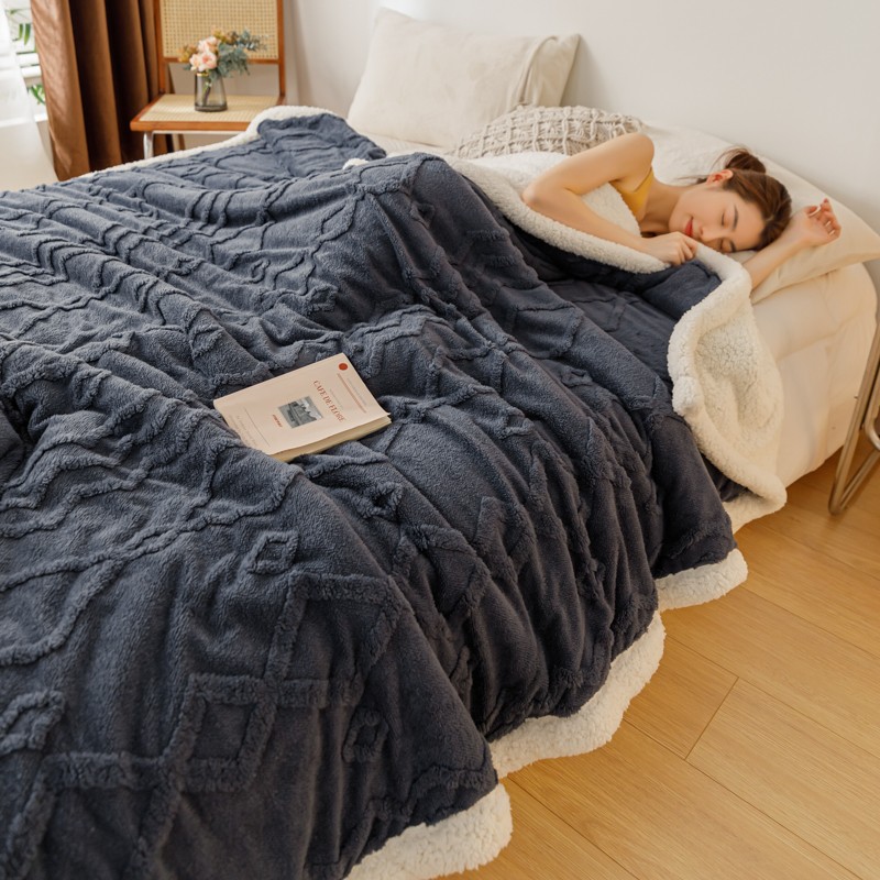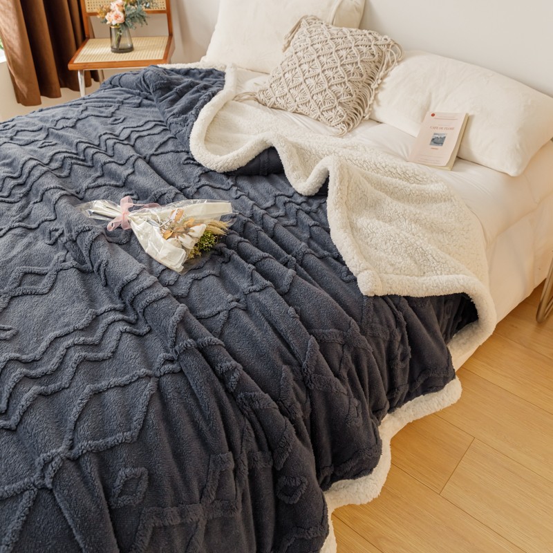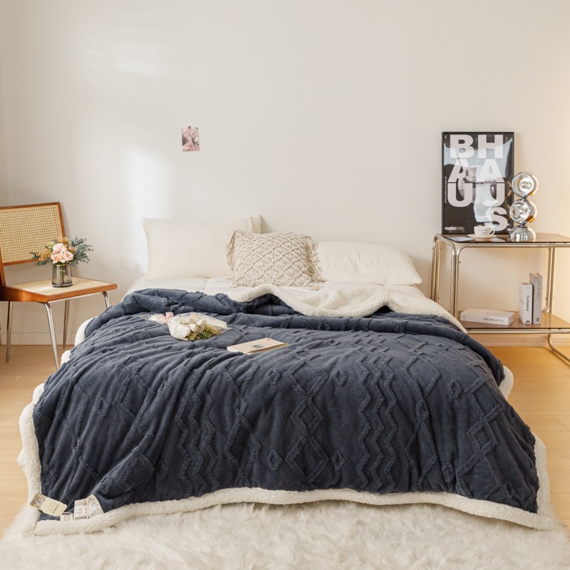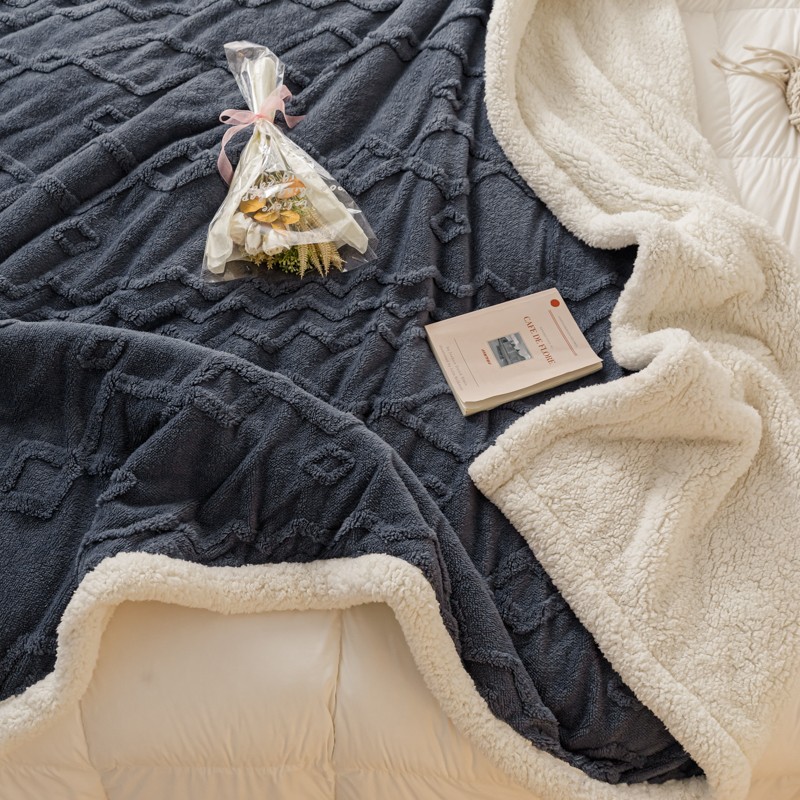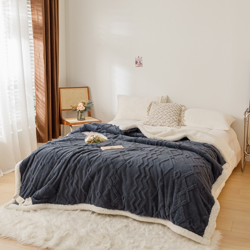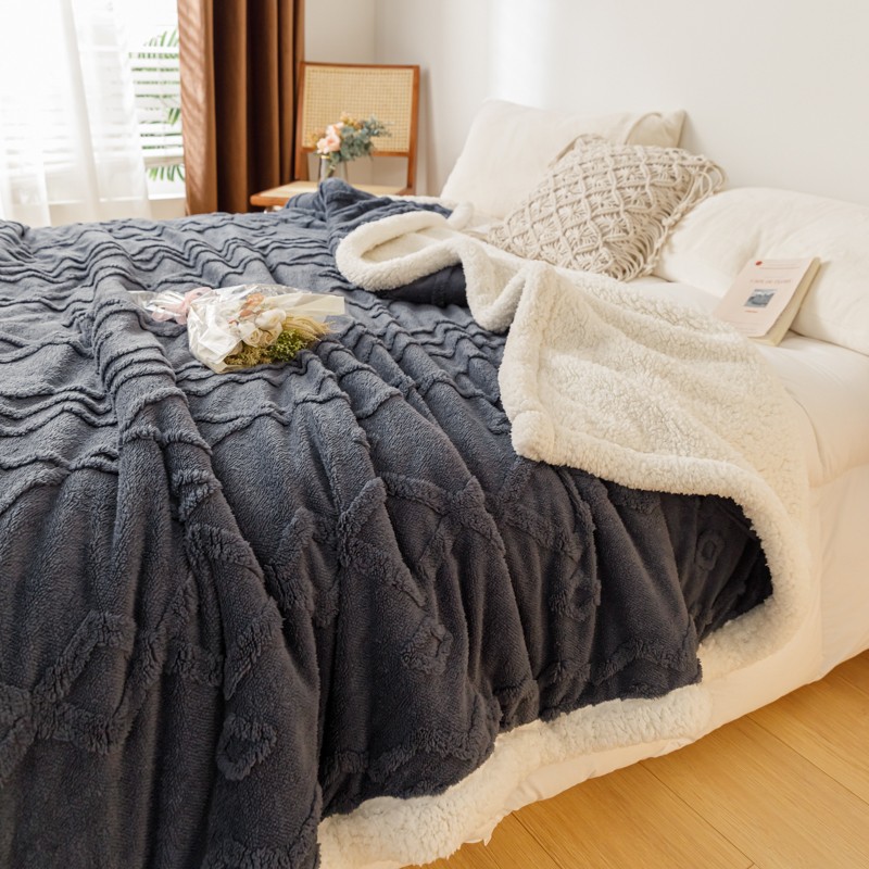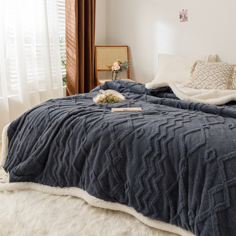 简爱-2026加厚舒棉绒羊羔绒盖毯毛毯 纹路菱形格-深灰