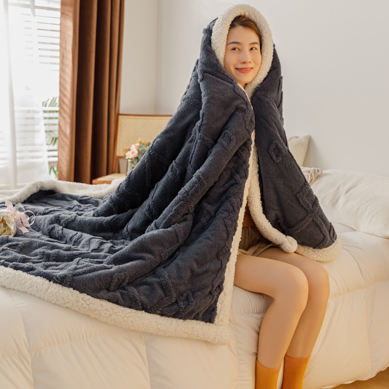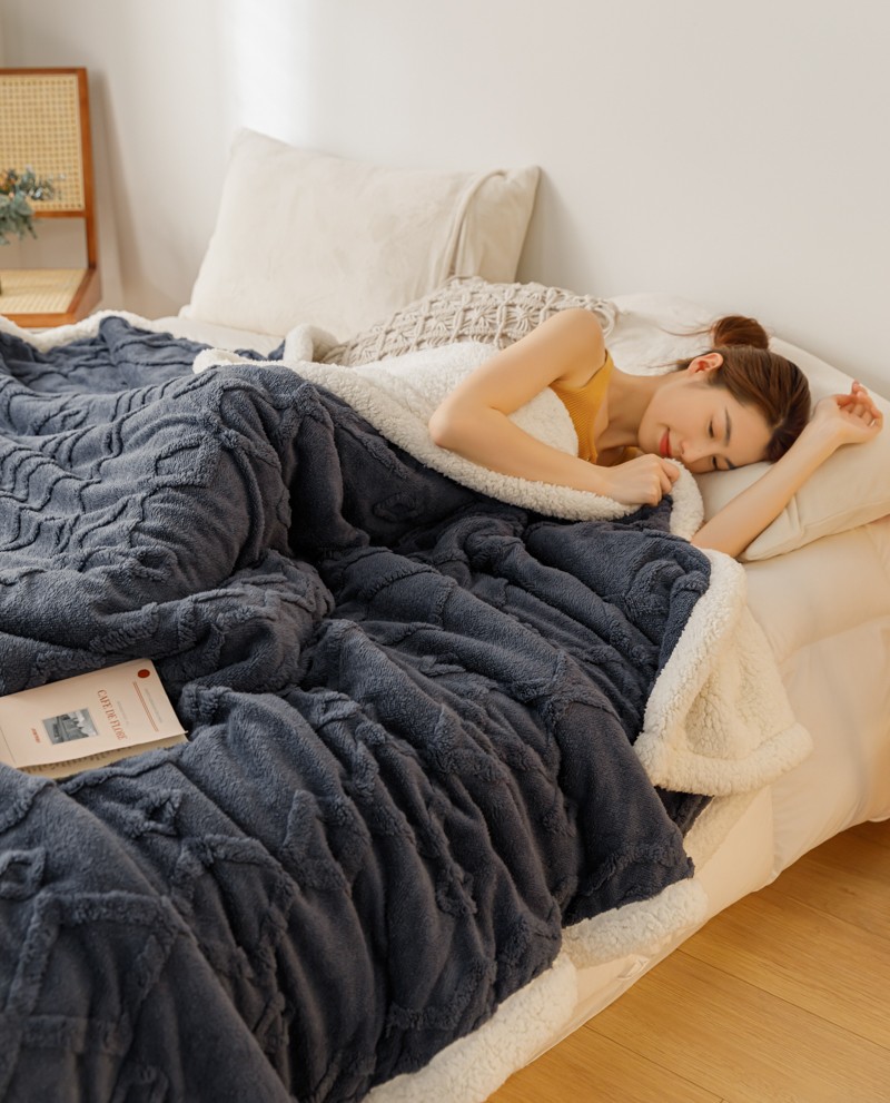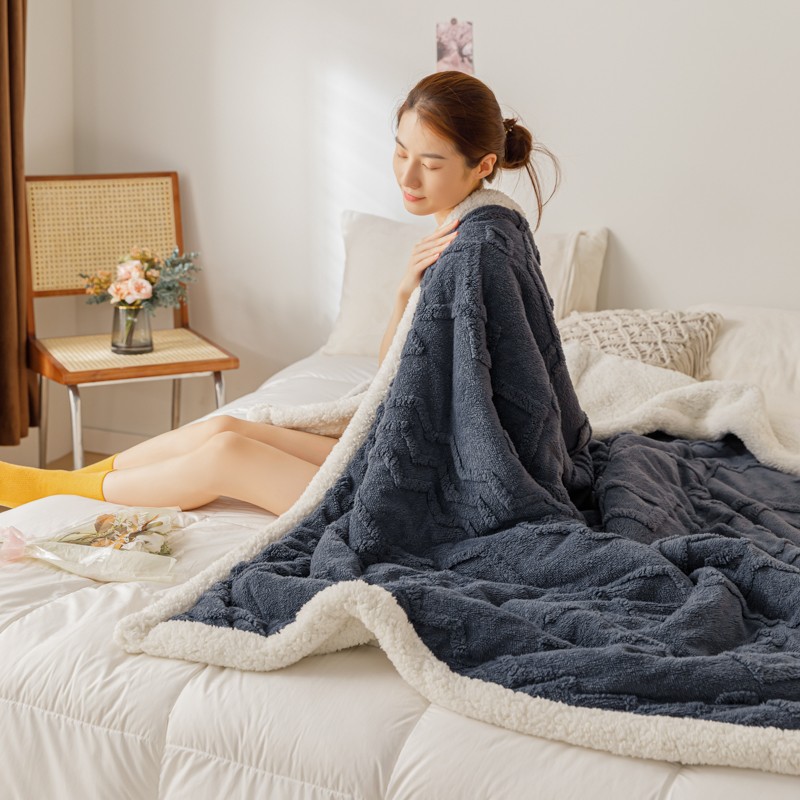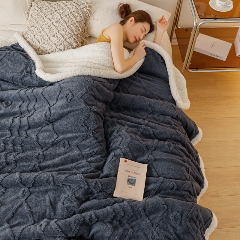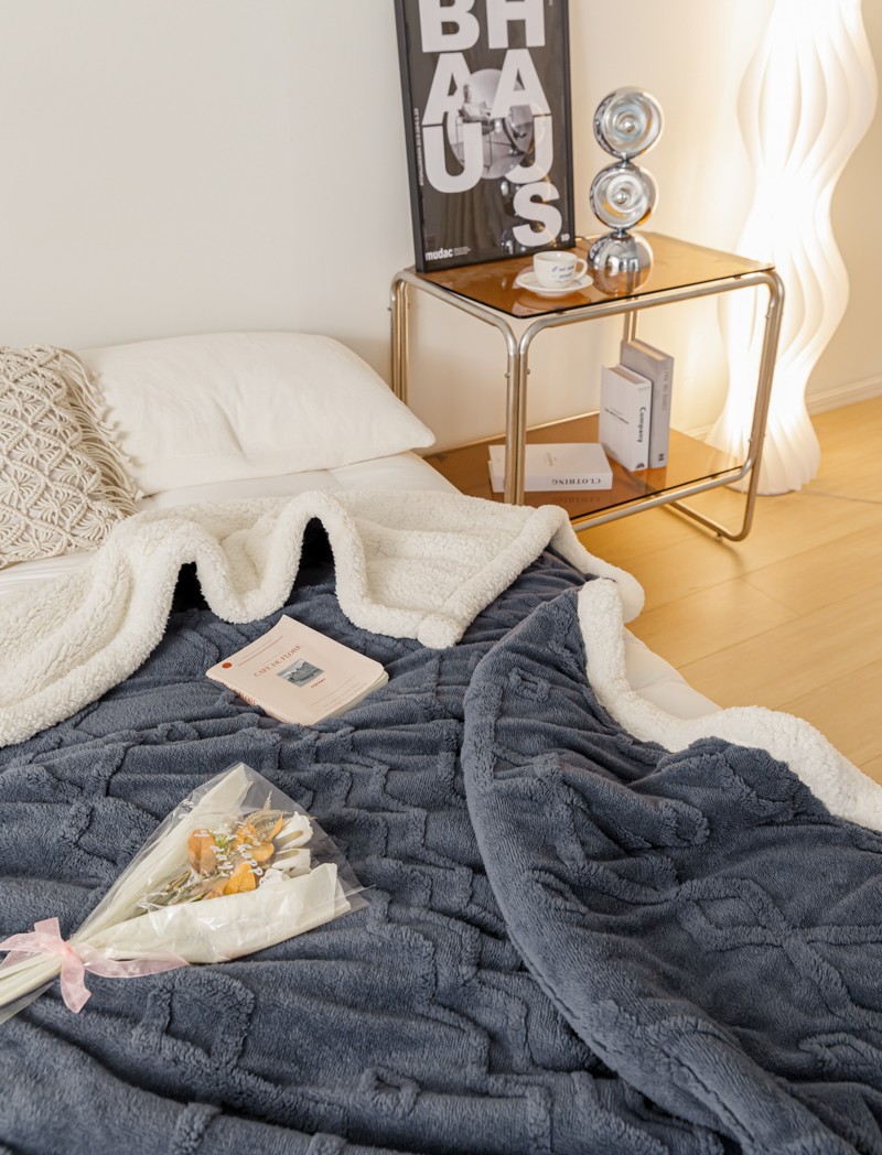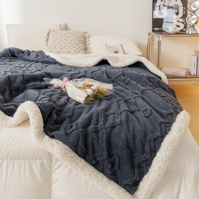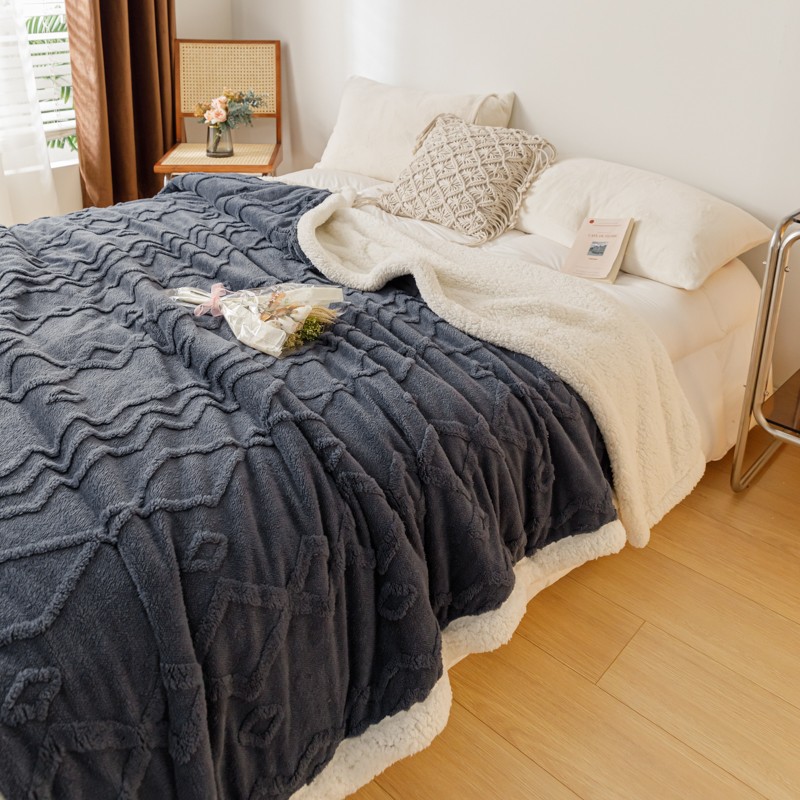 简爱-2026加厚舒棉绒羊羔绒盖毯毛毯 纹路菱形格-深灰