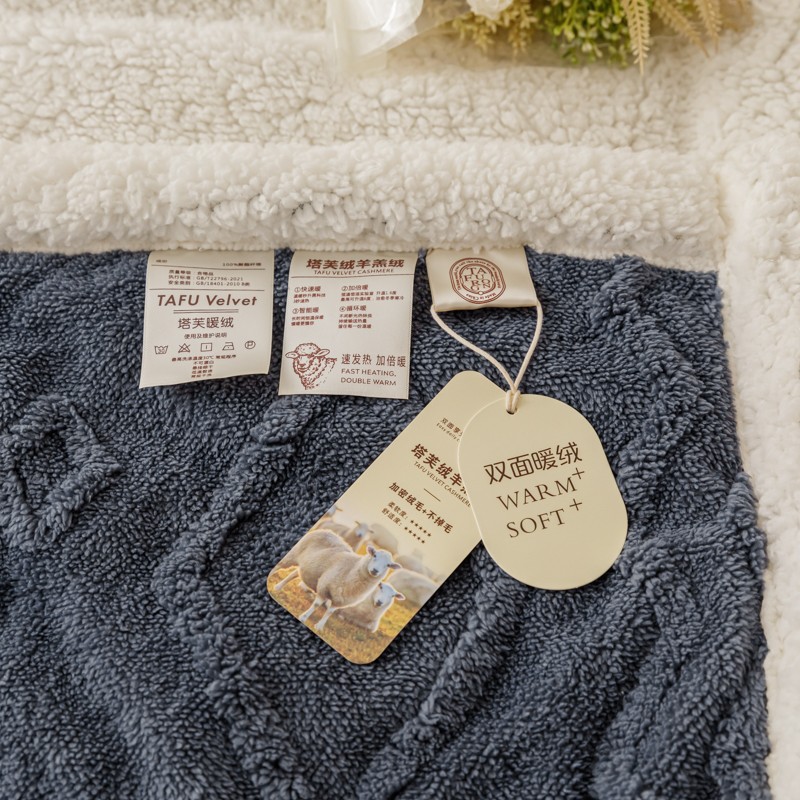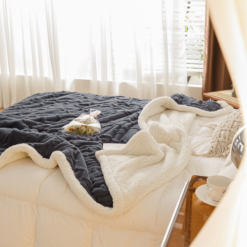 商品名称:简爱-2026加厚舒棉绒羊羔绒盖毯毛毯 纹路菱形格-深灰