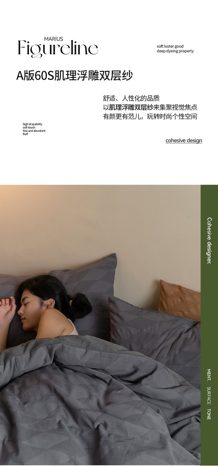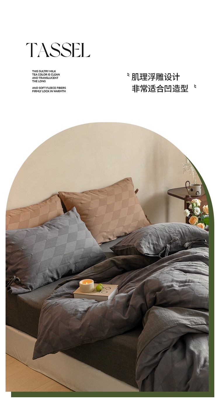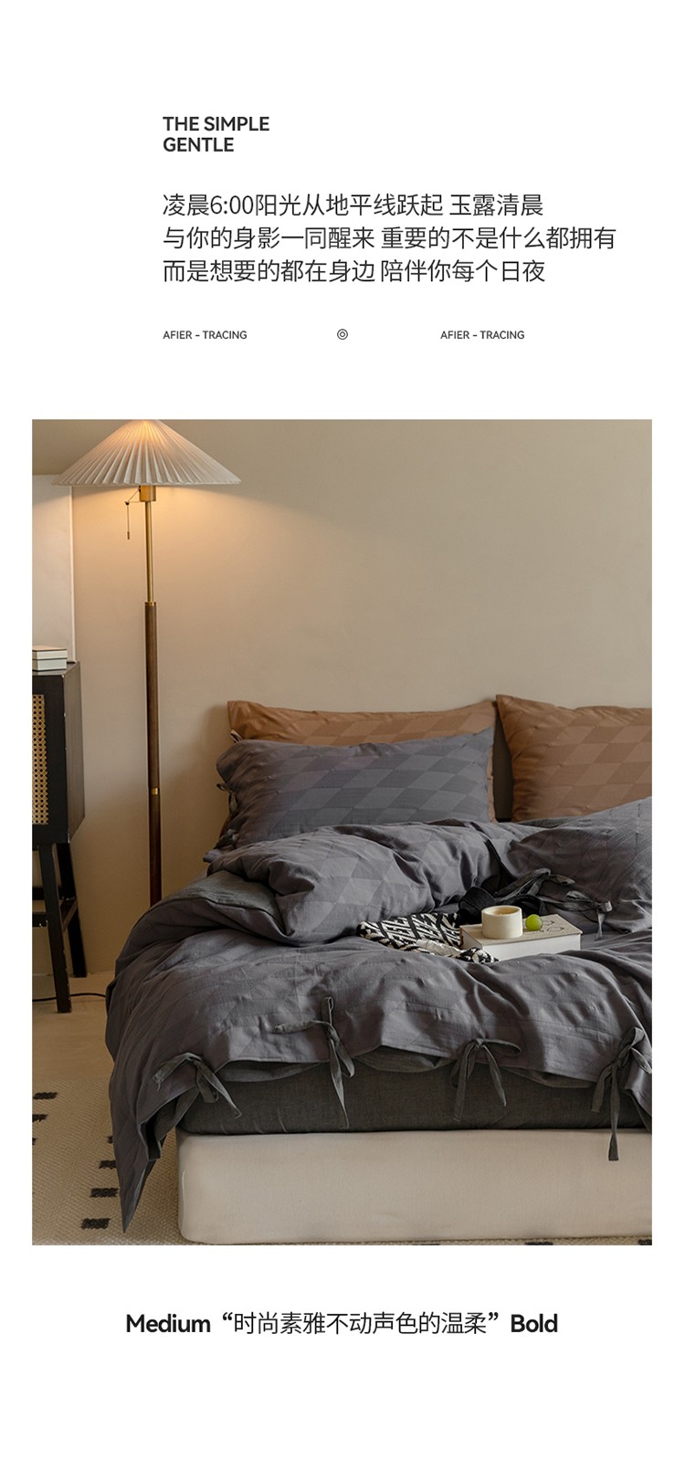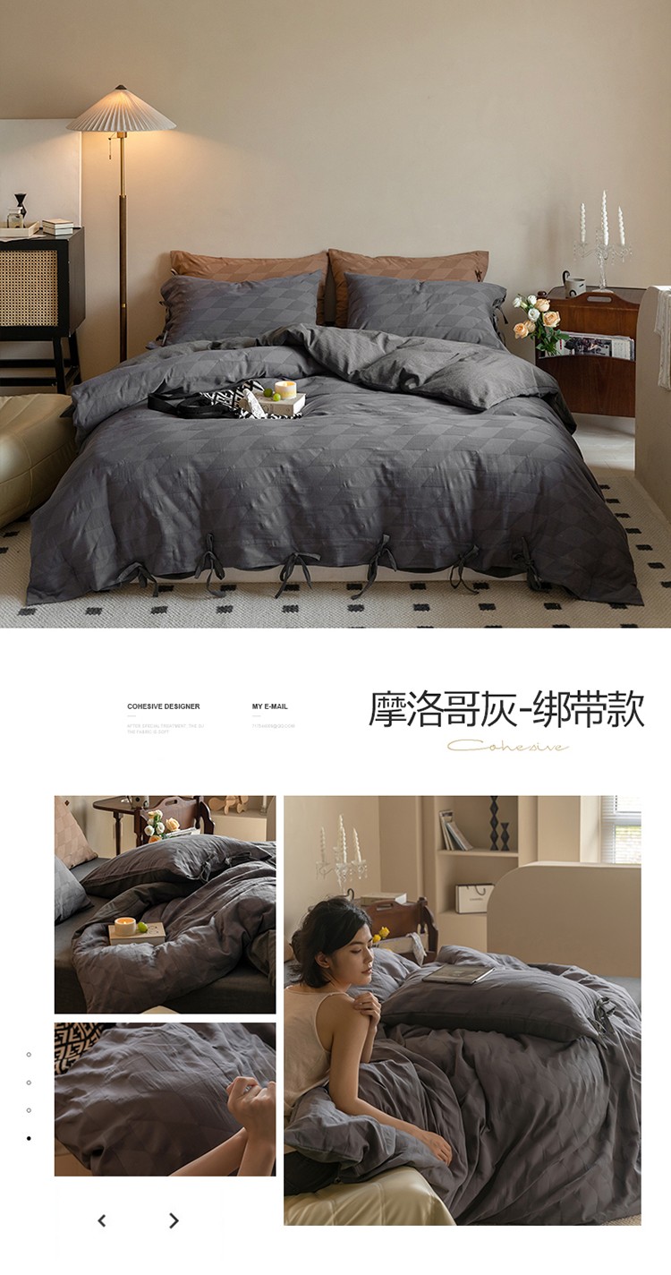 华超针织 2022新款60支肌理浮雕亲柔纱四件套 摩洛哥灰绑带款