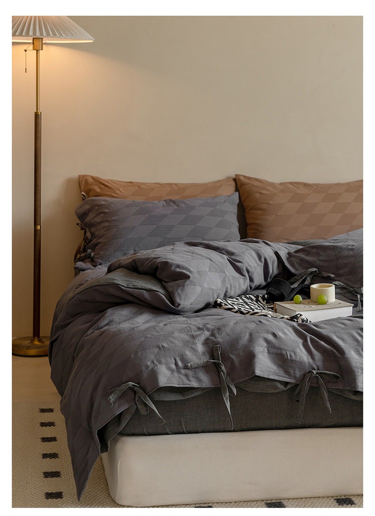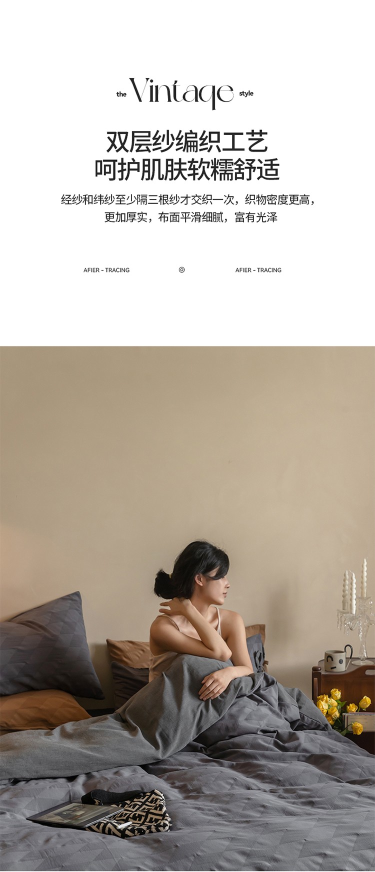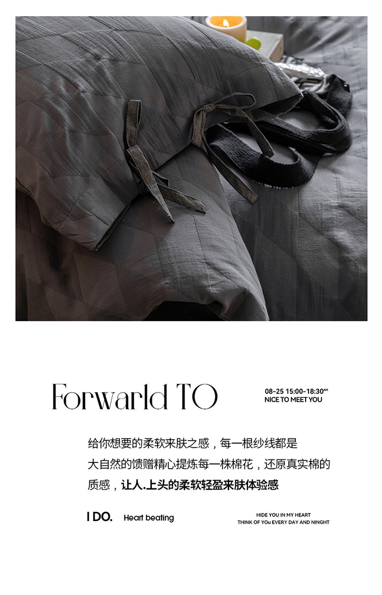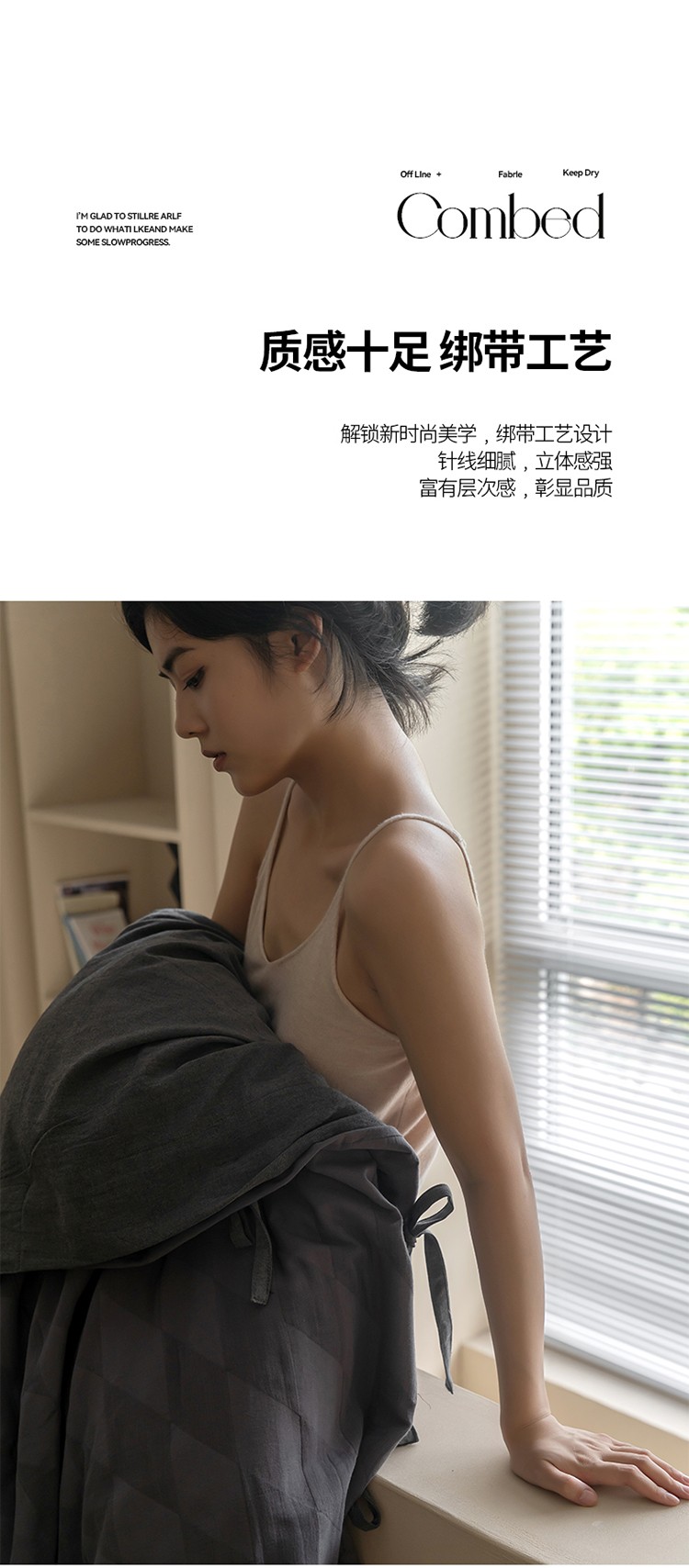 华超针织 2022新款60支肌理浮雕亲柔纱四件套 摩洛哥灰绑带款