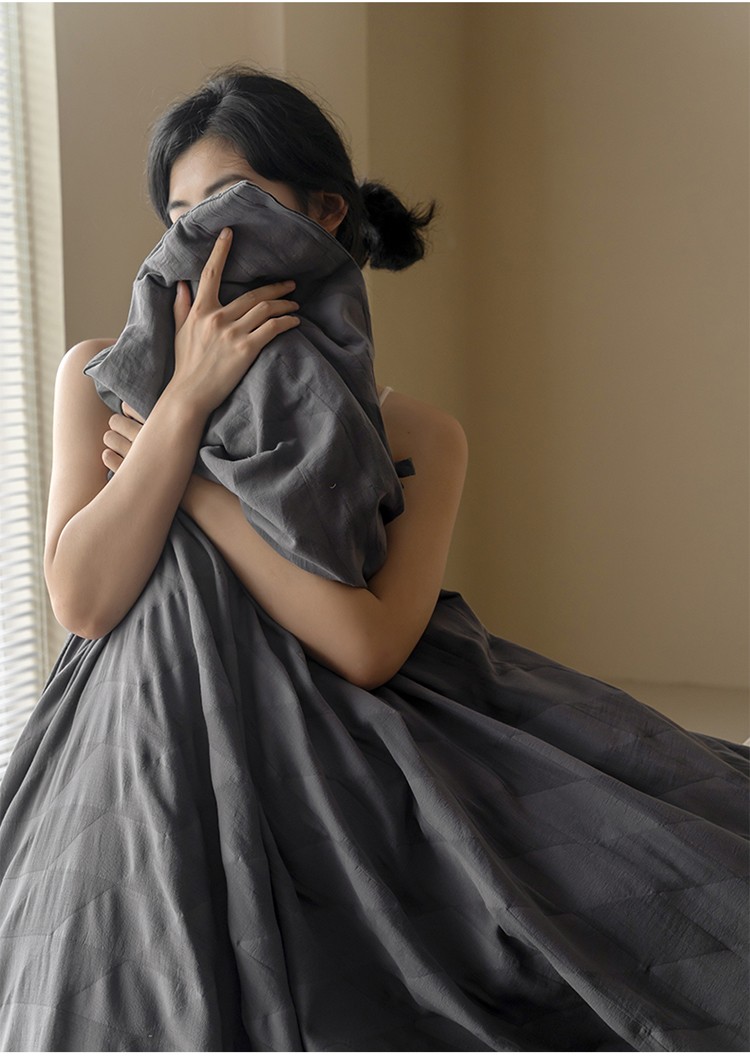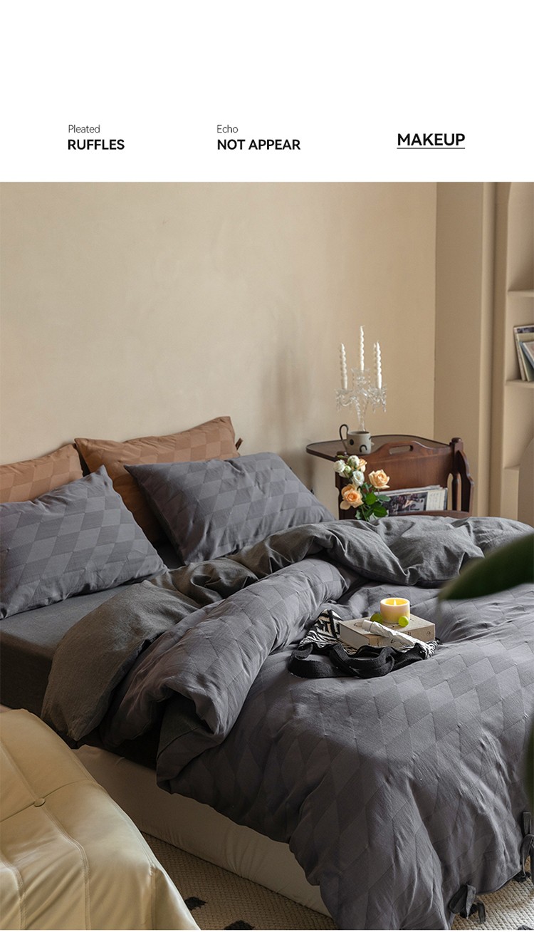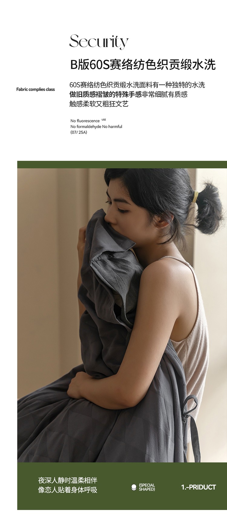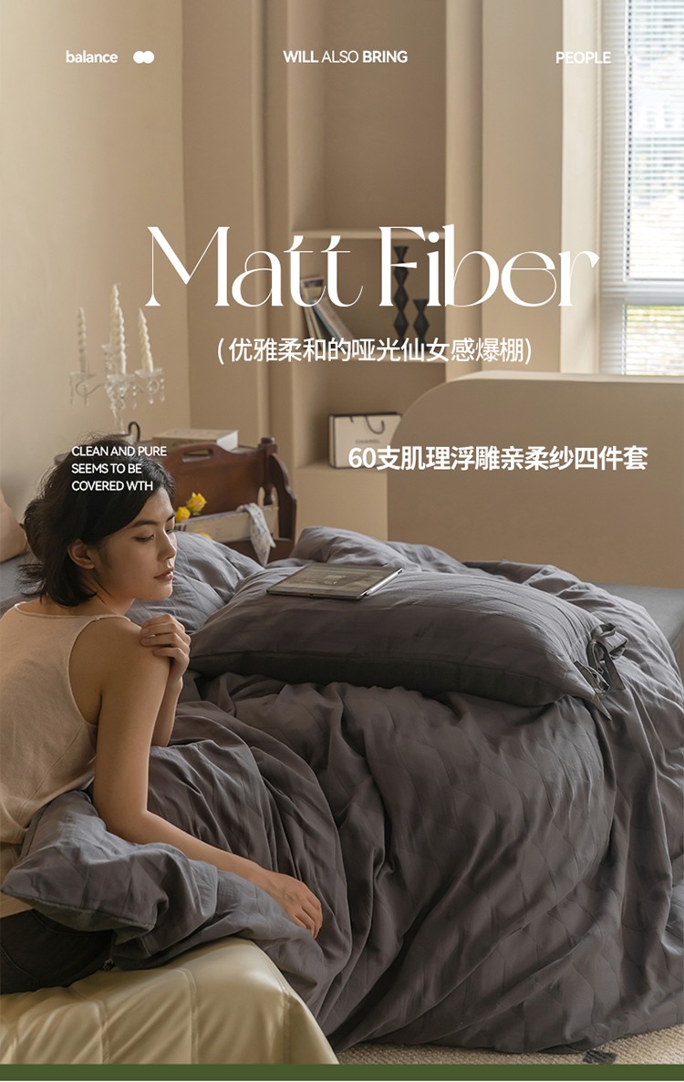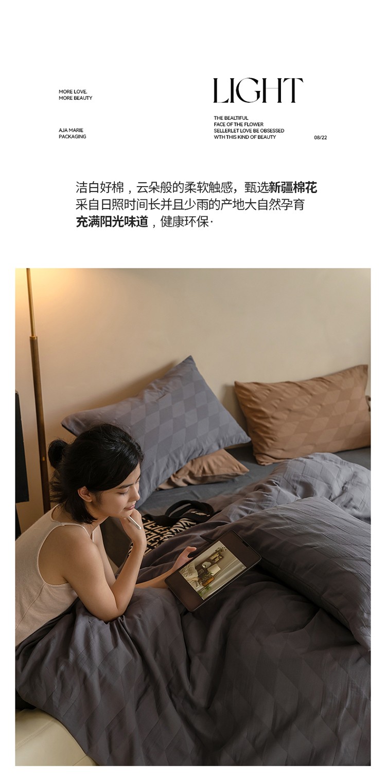 华超针织 2022新款60支肌理浮雕亲柔纱四件套 摩洛哥灰绑带款