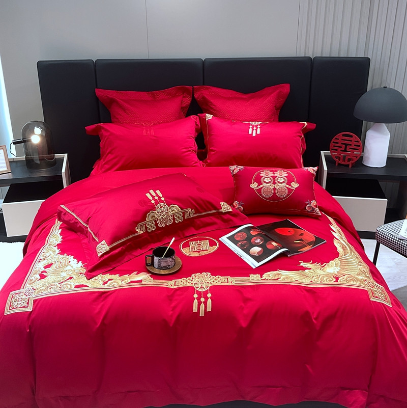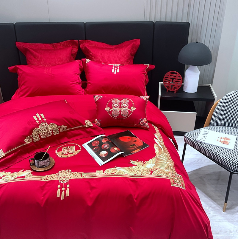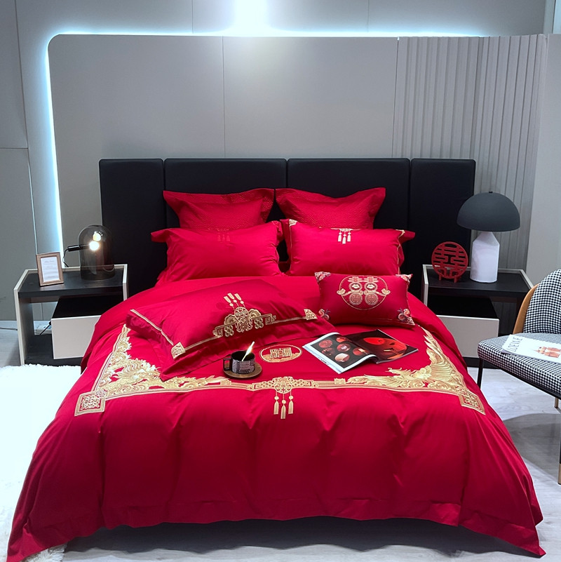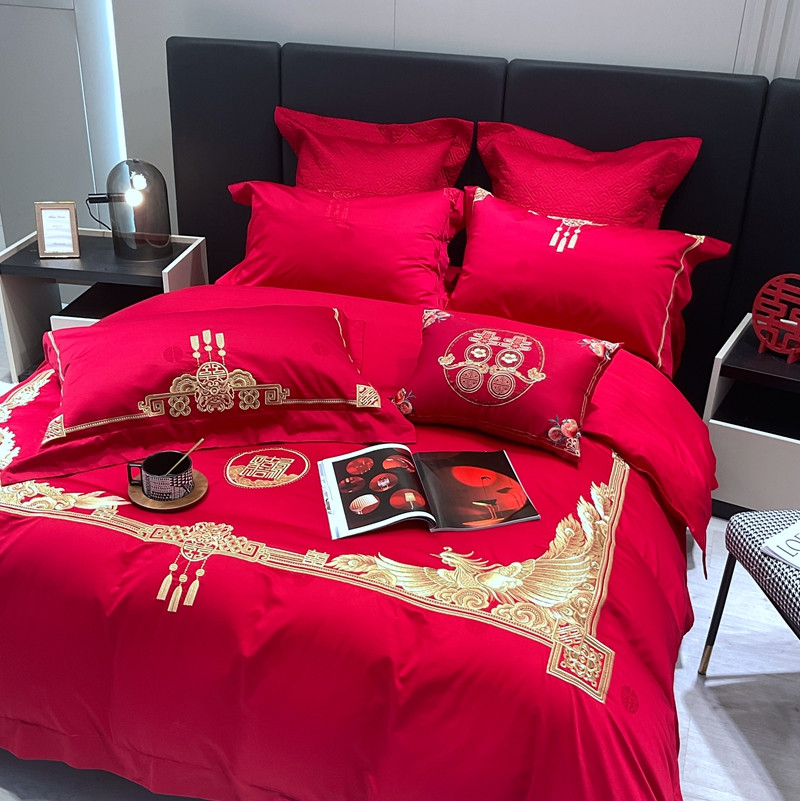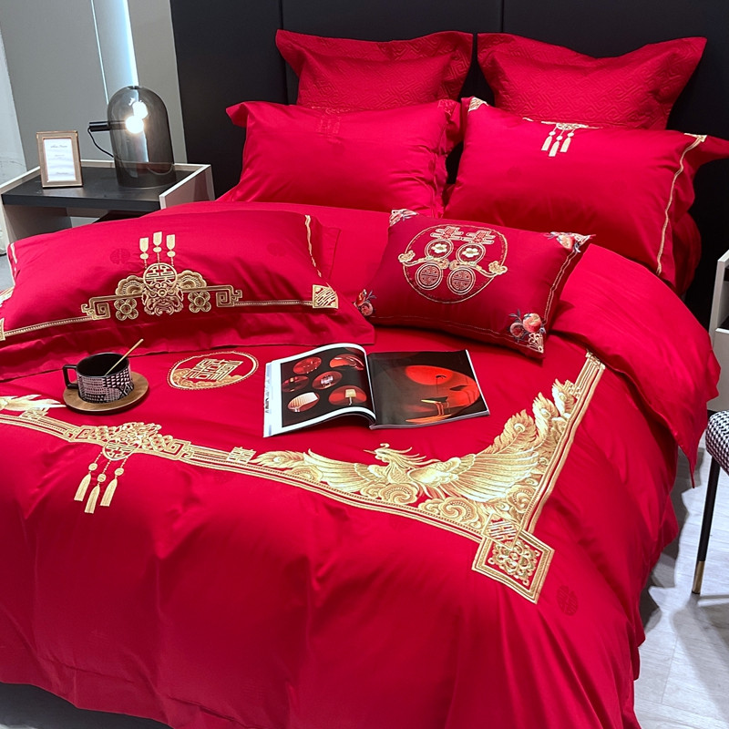 橘滋 2022秋冬高端全棉婚庆新品大红重工刺绣四件套含情脉脉 含情脉脉(金)
