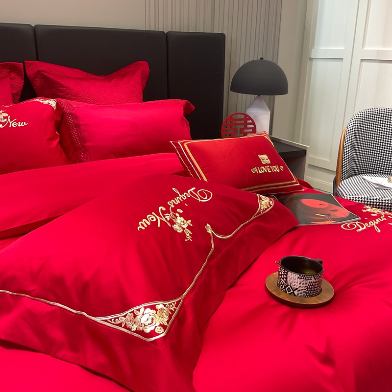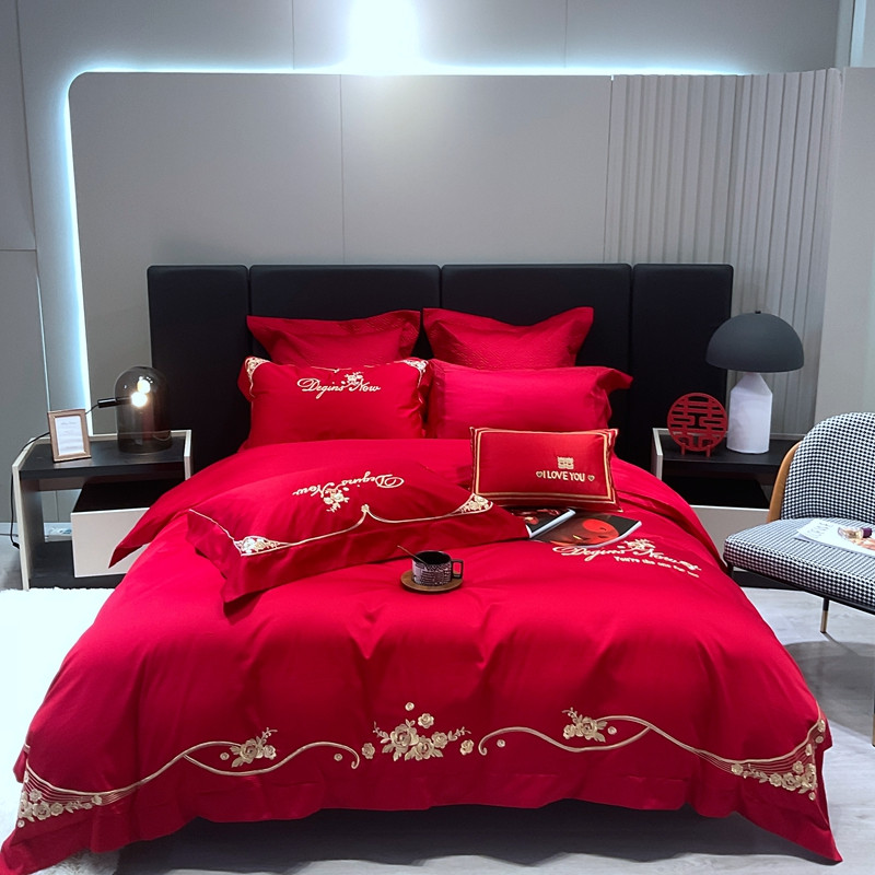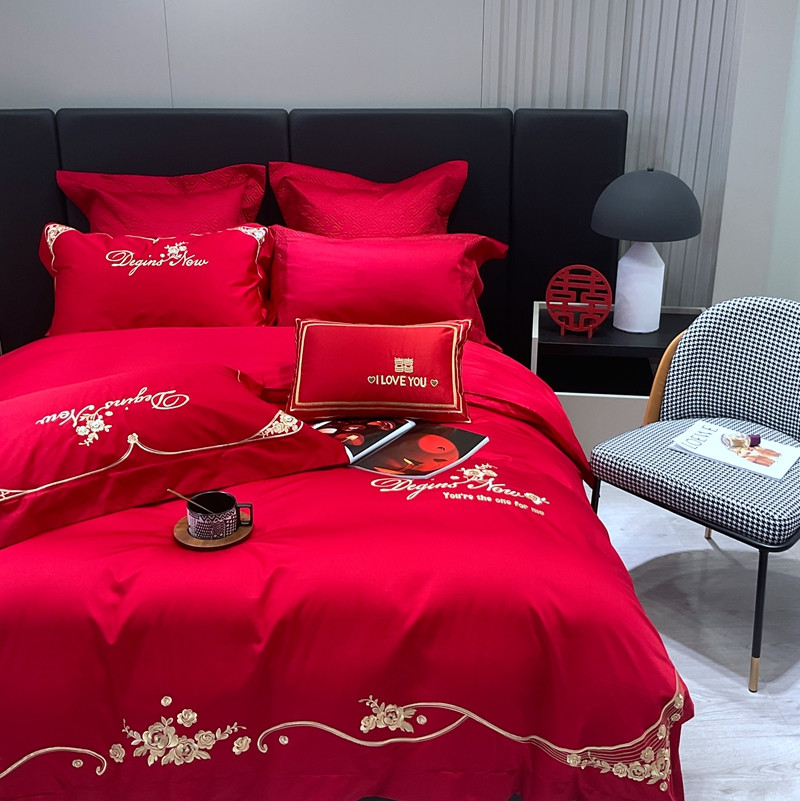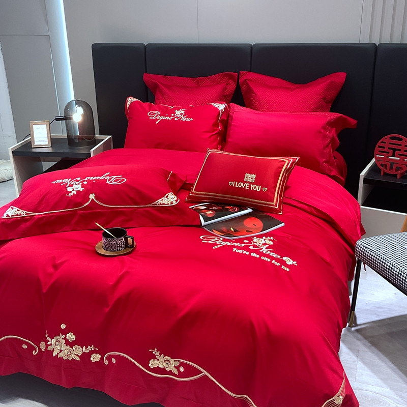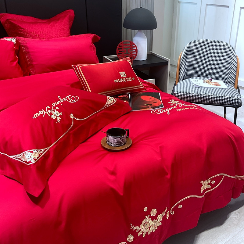 总橘滋2022秋冬高端全棉婚庆新品大红重工刺绣四件套玫瑰传情