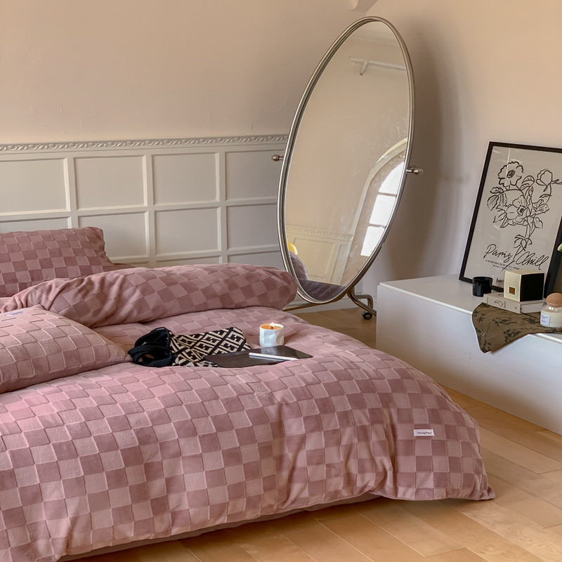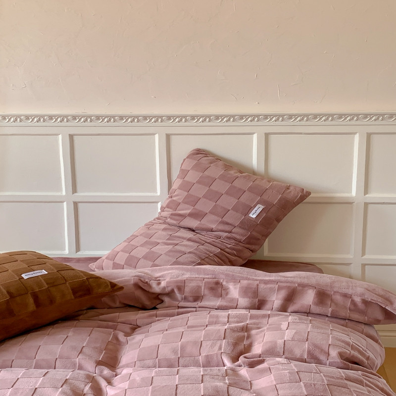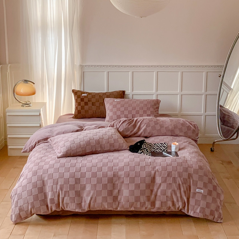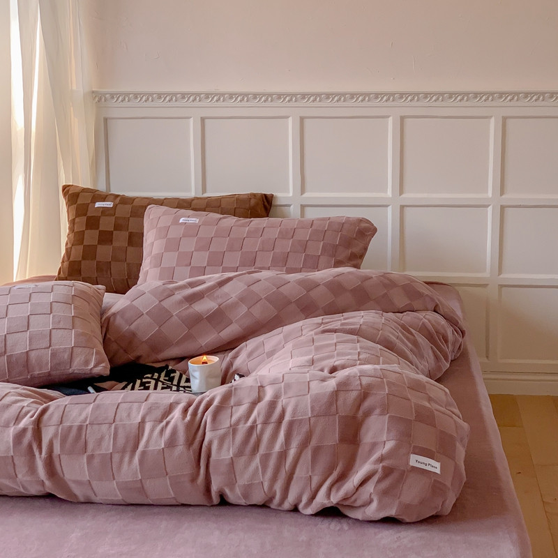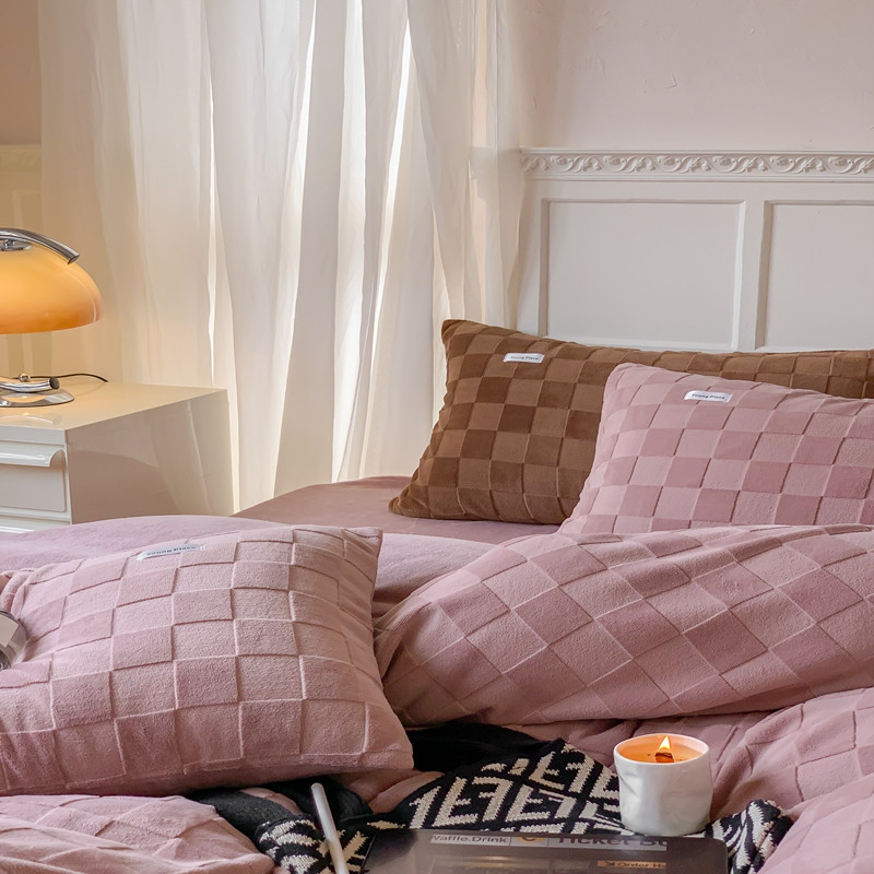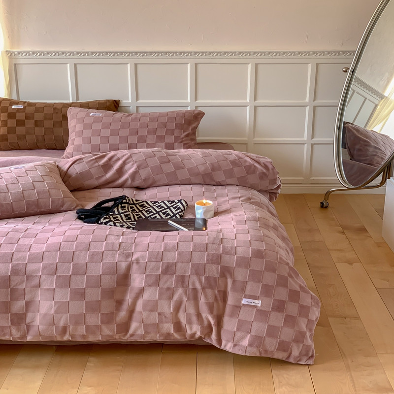 洋铭区 2022新款复古棋盘格四件套 复古棋盘格-豆沙