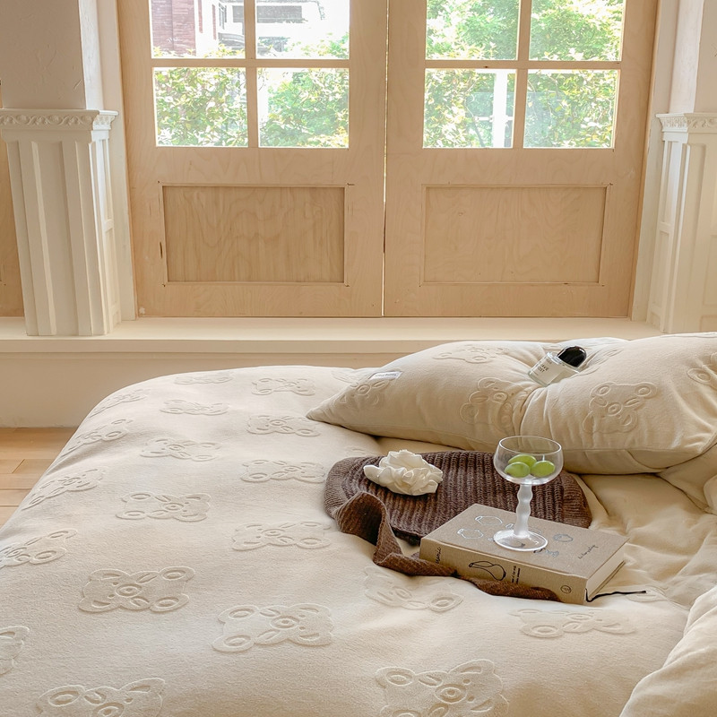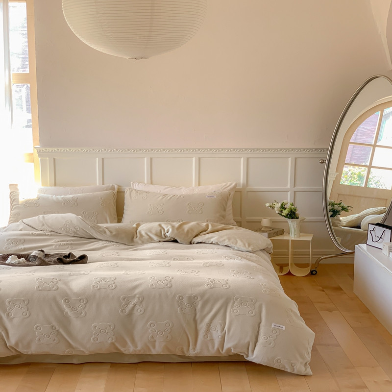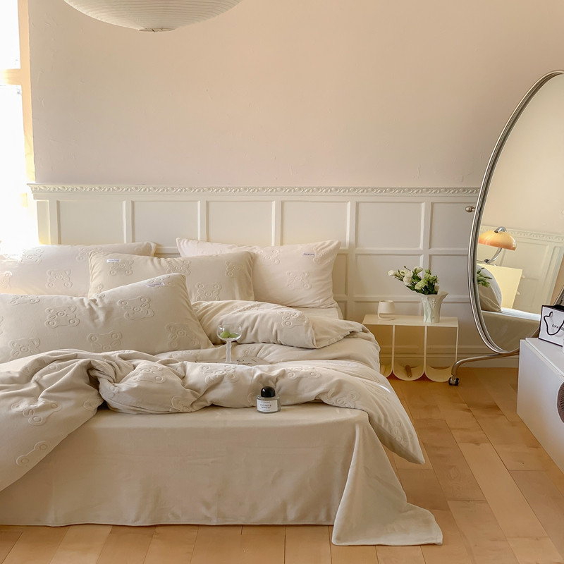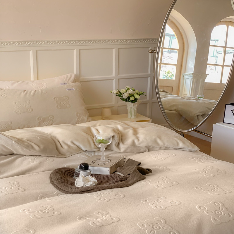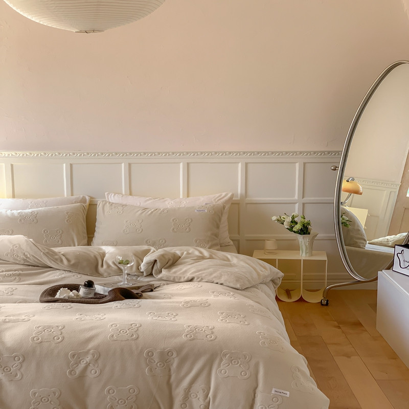 洋铭区 2022新款牛奶绒四件套小熊软糖 小熊软糖奶杏色