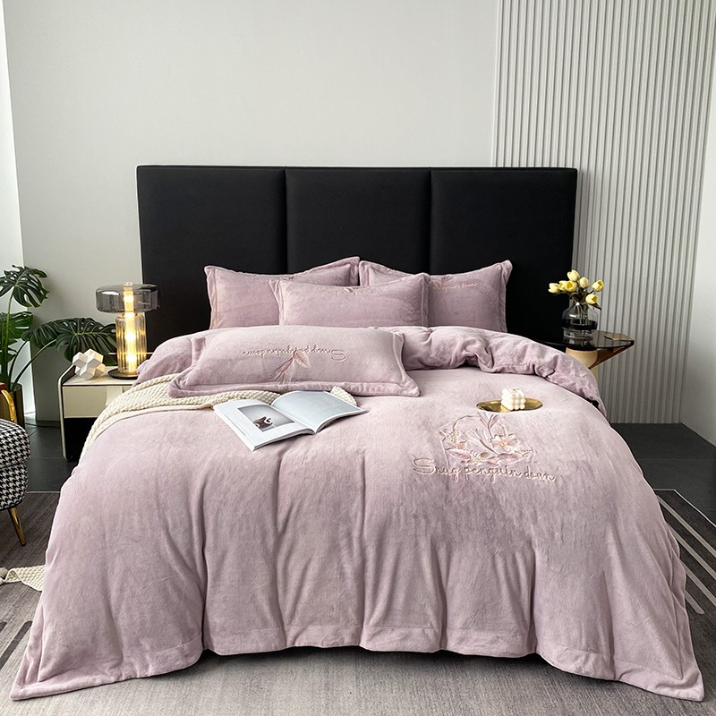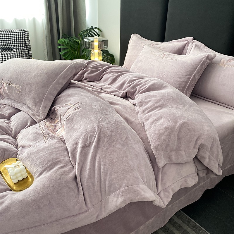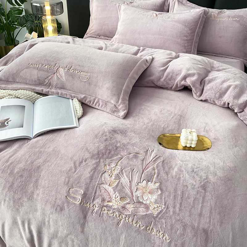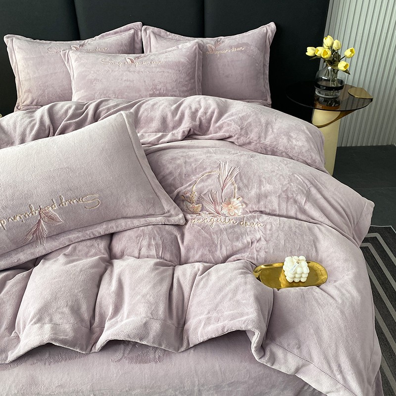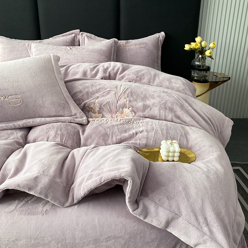 云锦 2022新款230g牛奶绒全消光四件套-含情麦麦-淡紫