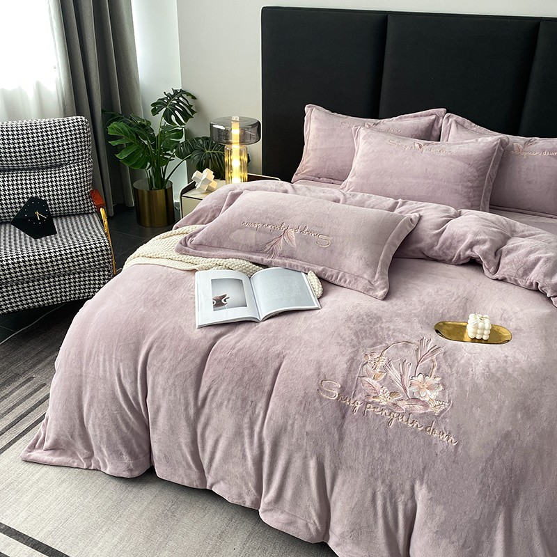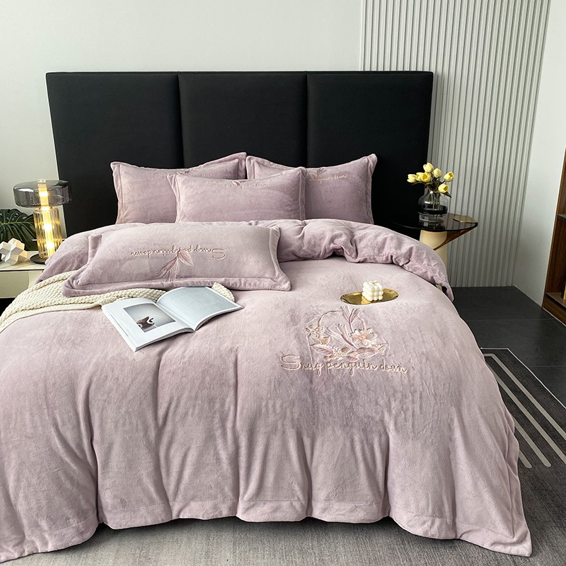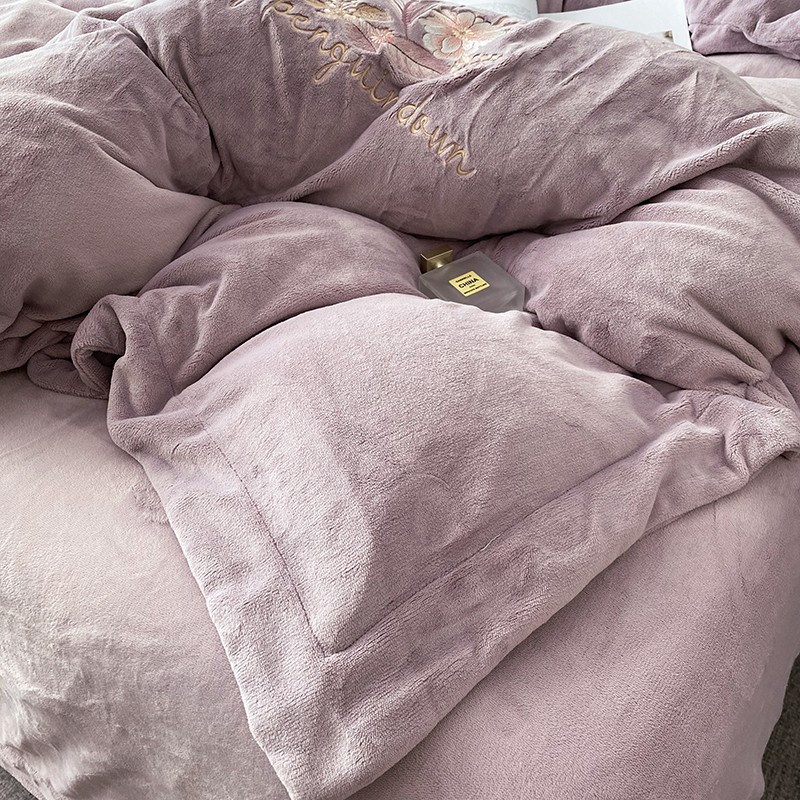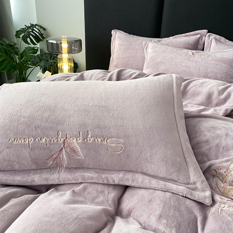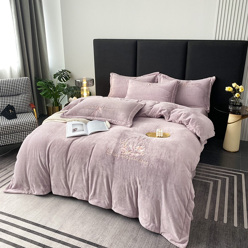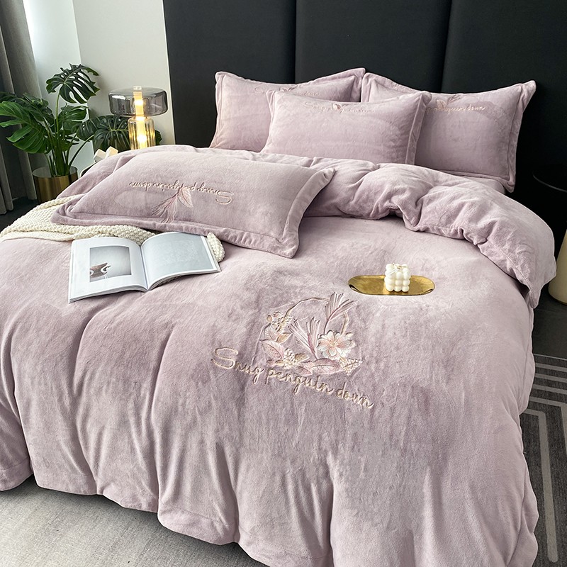 云锦 2022新款230g牛奶绒全消光四件套-含情麦麦-淡紫