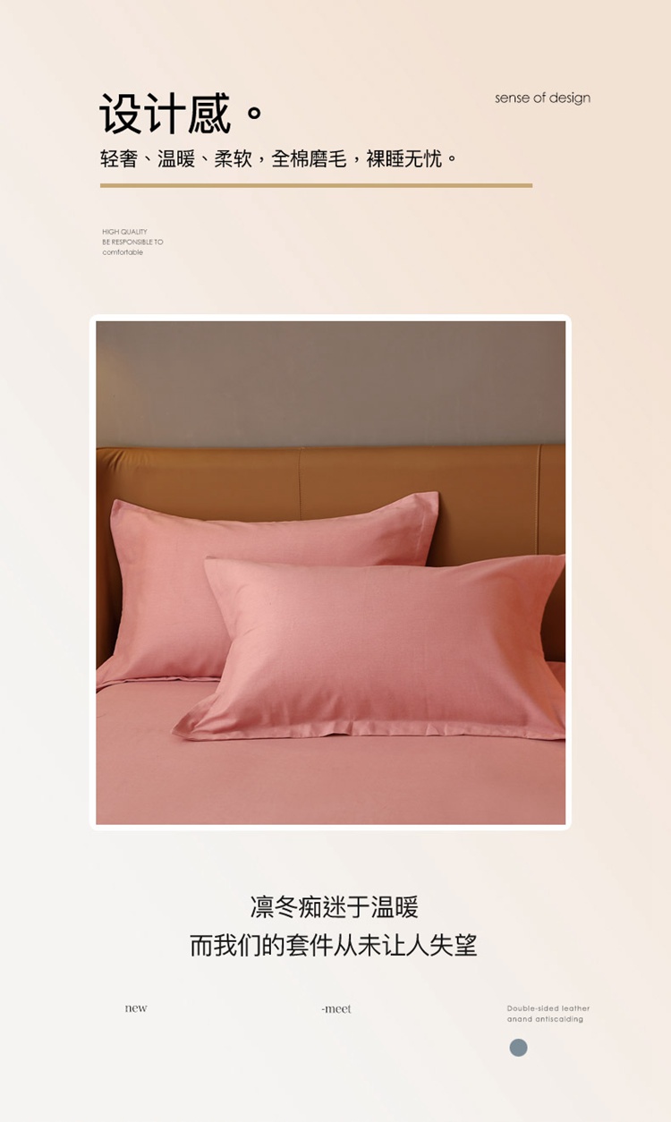 晶缦家纺 加厚全棉纯色生态磨毛多规格系列单品枕套纯依-粉玉