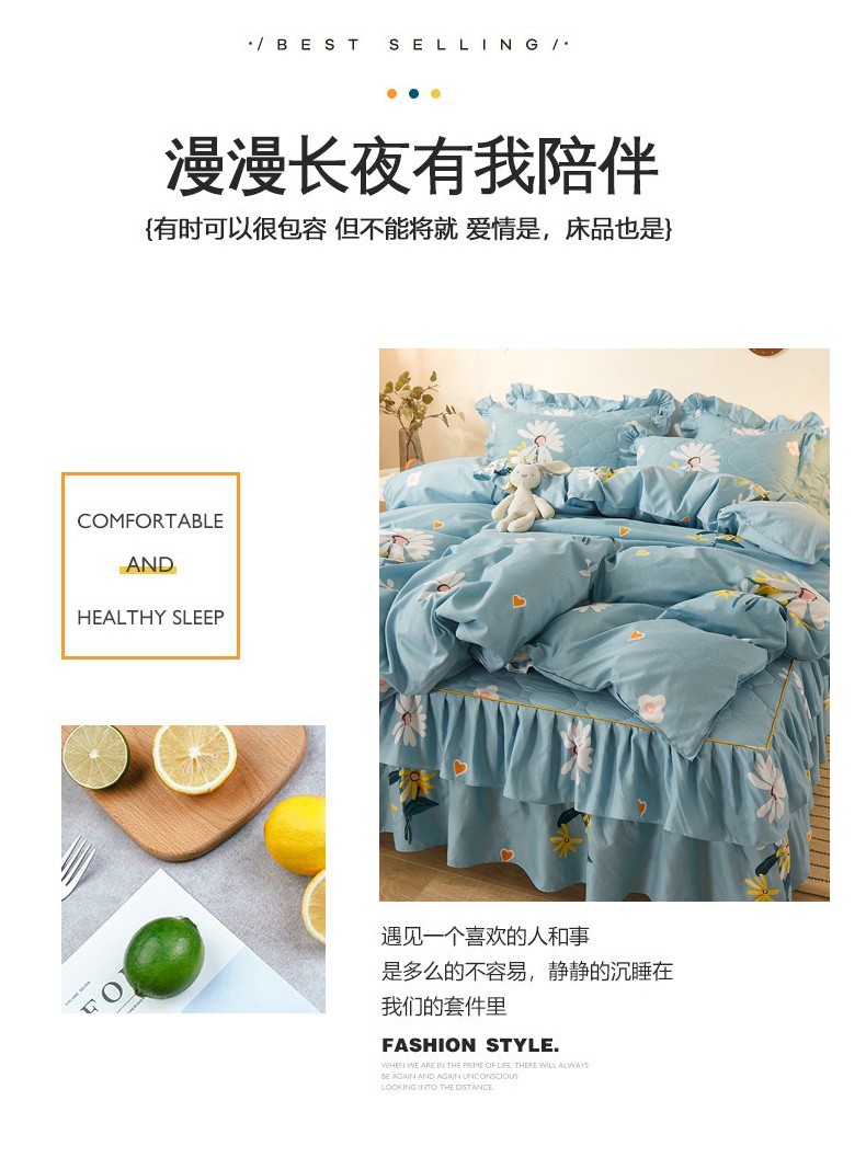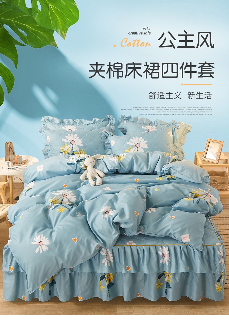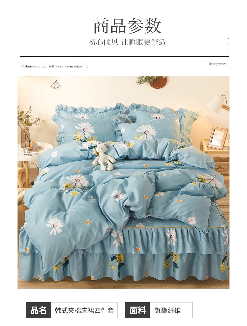 当前位置: 91家纺网 > 商品网购 > 床品套件 > 四件套 > 全棉普通四件套 > 优家居 2025新款芦荟棉双层边夹棉床裙四件套 小雏菊