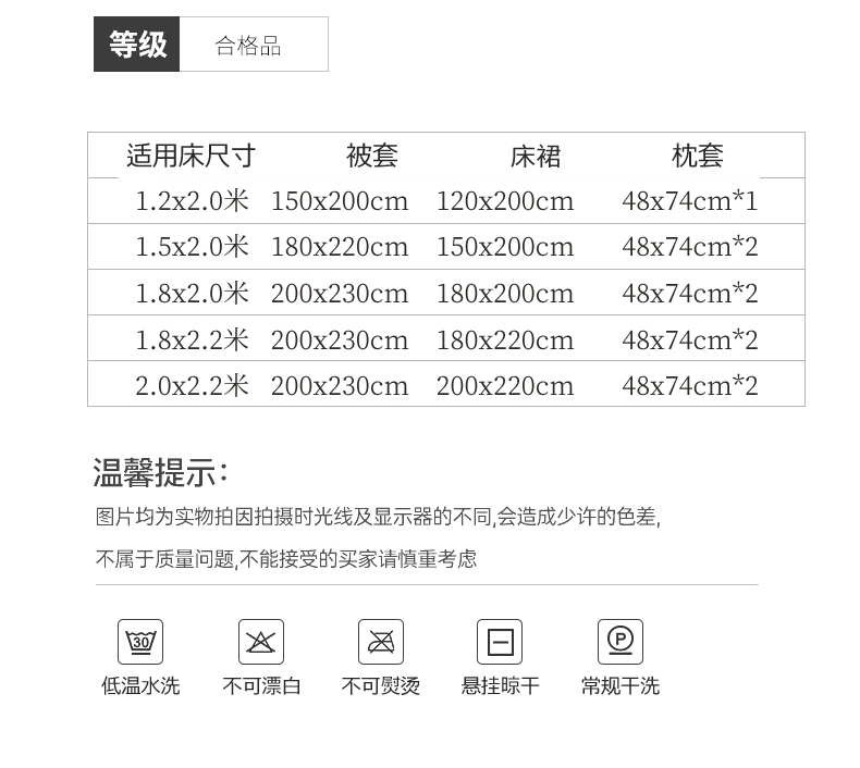 1.5m夹棉床裙款四件套配普通信封枕 | ¥55.00 |