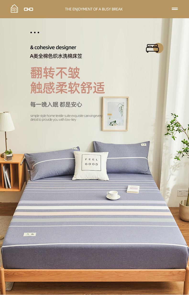 (总)21度C 2023新款A类全棉色织水洗棉单品床笠