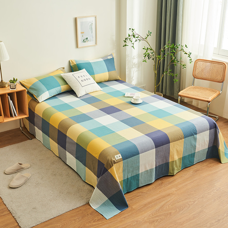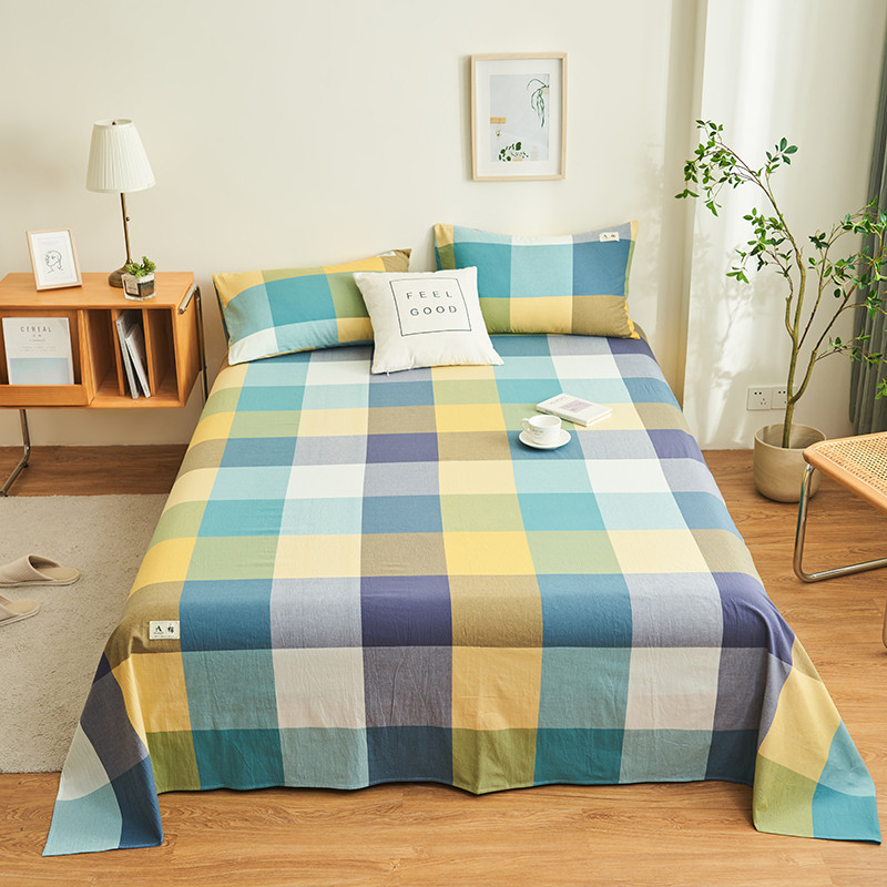 • 91家纺网 家纺一手货源 找家纺 21度C 2023新款A类全棉色织水洗棉单品床单 彩虹大格