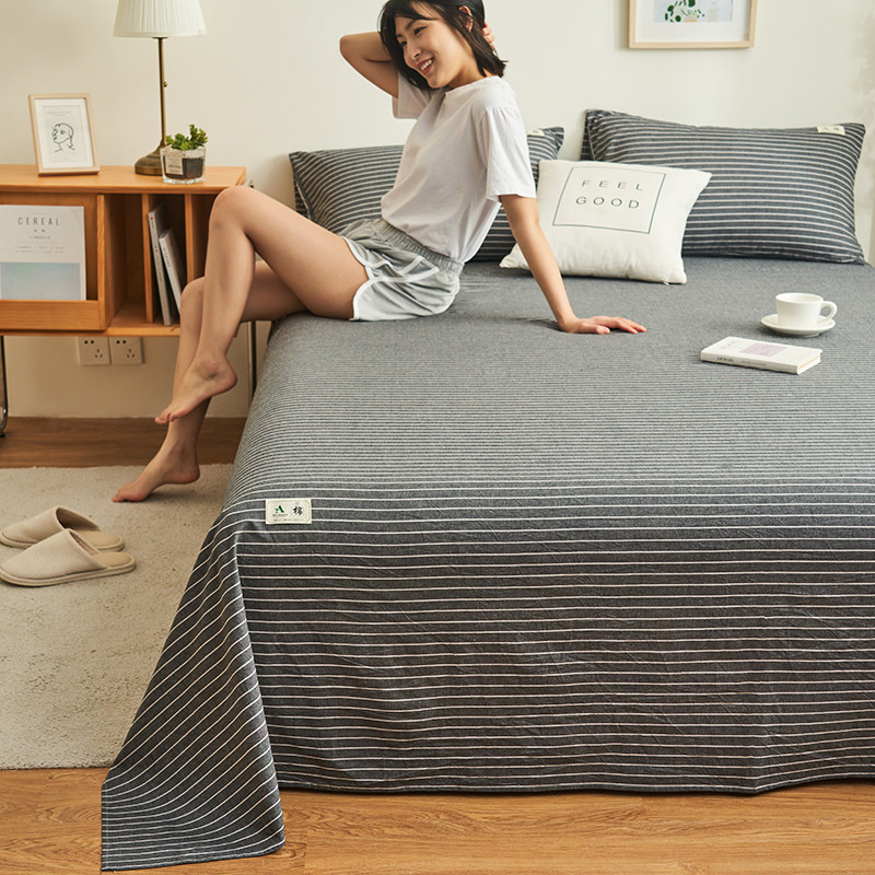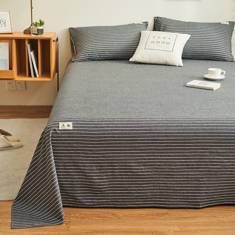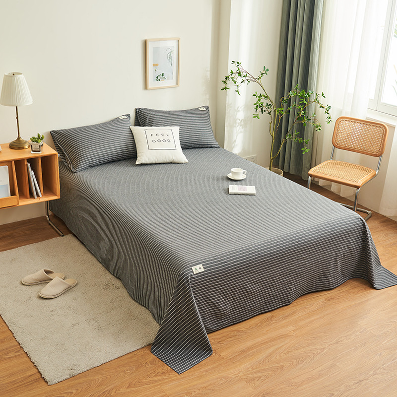 21度C 2023新款A类全棉色织水洗棉单品床单 细条灰