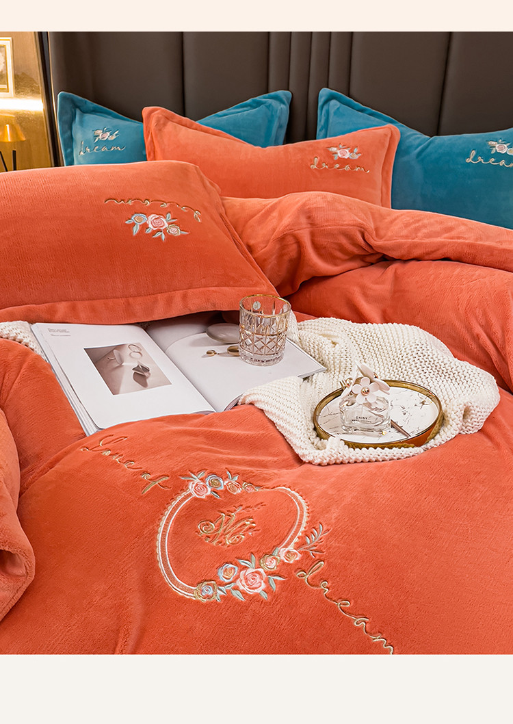 名品优仓 2022新款图兰朵系列牛奶绒刺绣四件套 图兰朵-桔红色