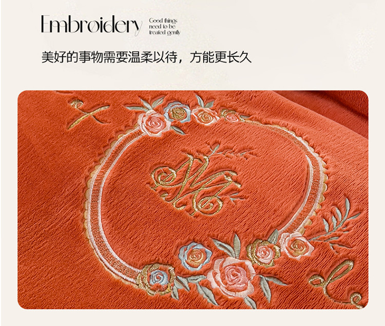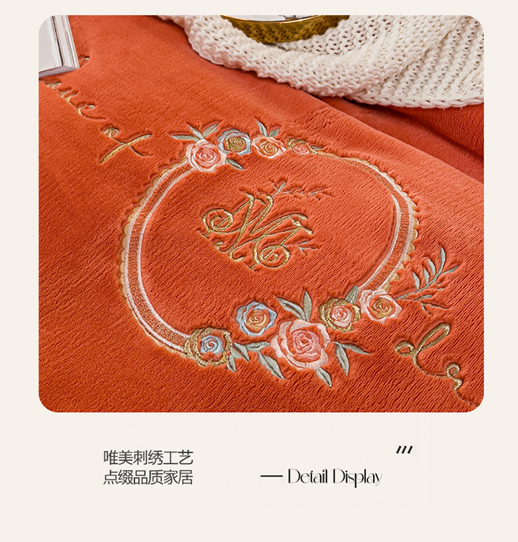商品名称:名品优仓 2022新款图兰朵系列牛奶绒刺绣四件套 图兰朵-桔红色