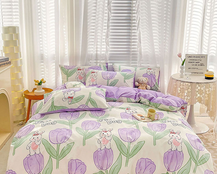 梦家居 2023春季新品小清新系列全棉单被套 郁金紫兔