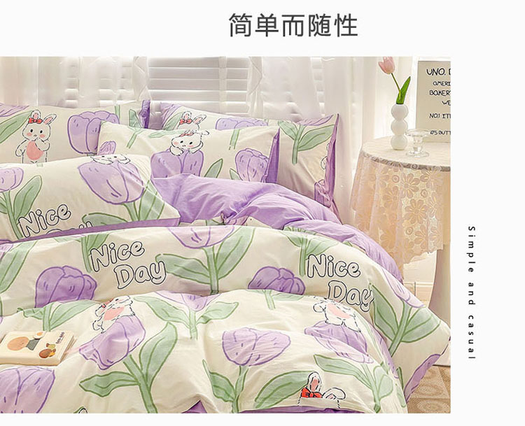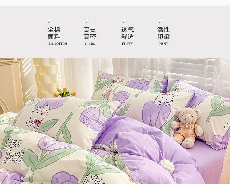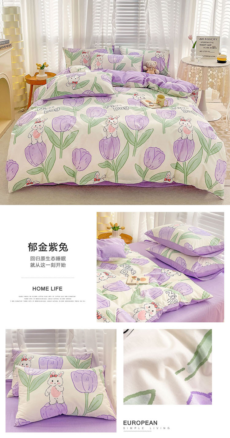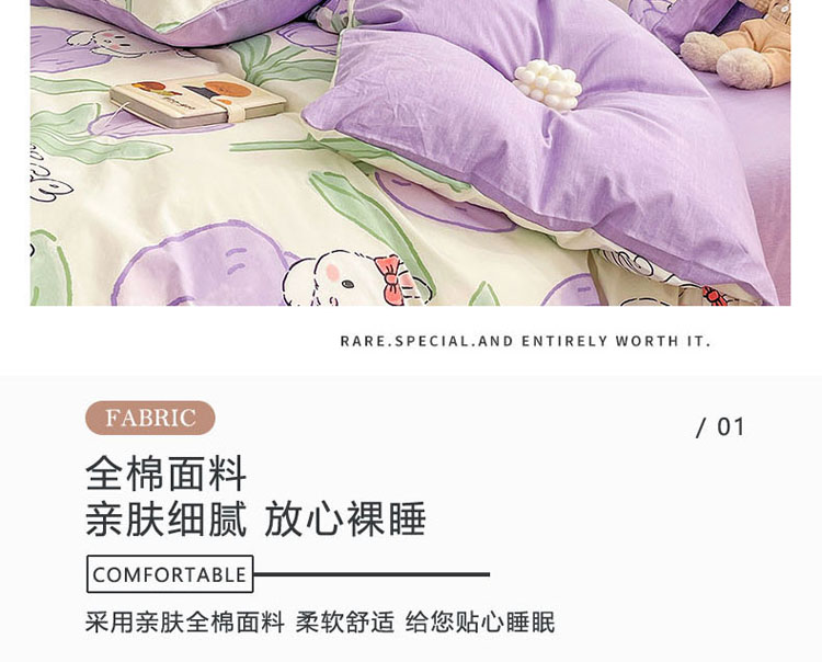 商品名称:梦家居 2023春季新品小清新系列全棉单被套 郁金紫兔