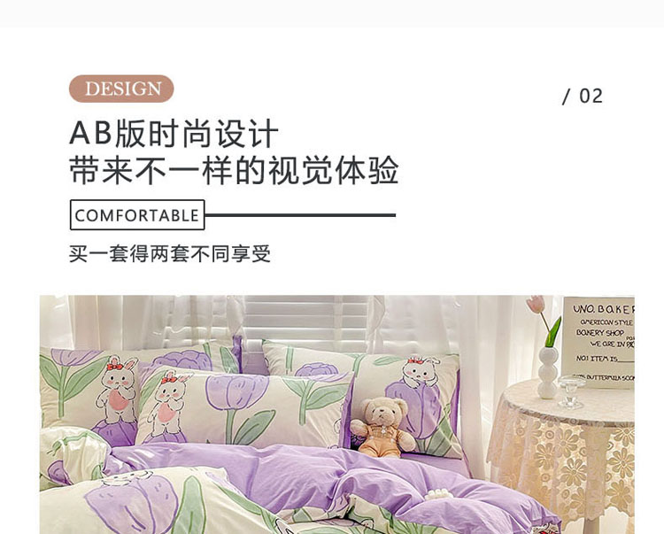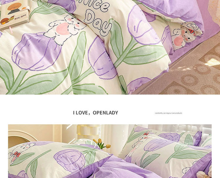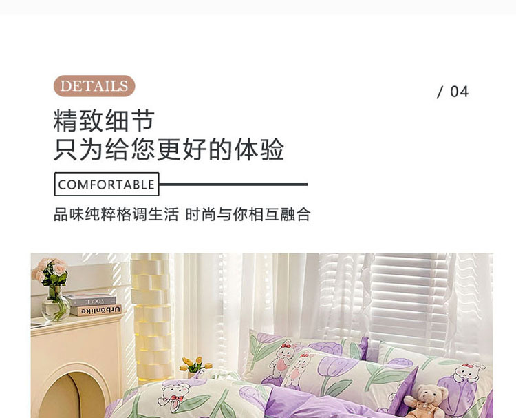 (总)梦家居 2023春季新品小清新系列全棉四件套,幸运兔,爱心兔,铃兰花兔,钱兔柿锦,熊兔乐园,奶咖小兔,西莉娅,魔法小兔,郁金粉兔,郁金紫兔,草莓兔,蜜桃兔,黛西,南瓜小兔,郁金花兔