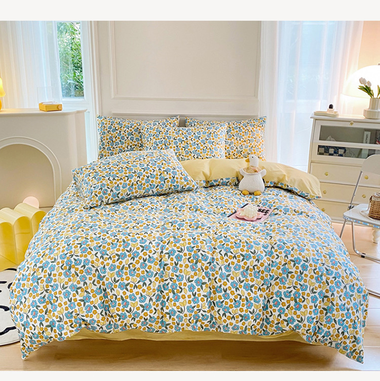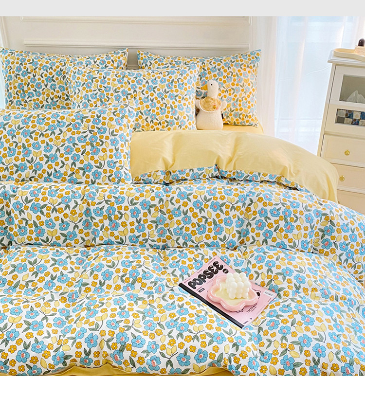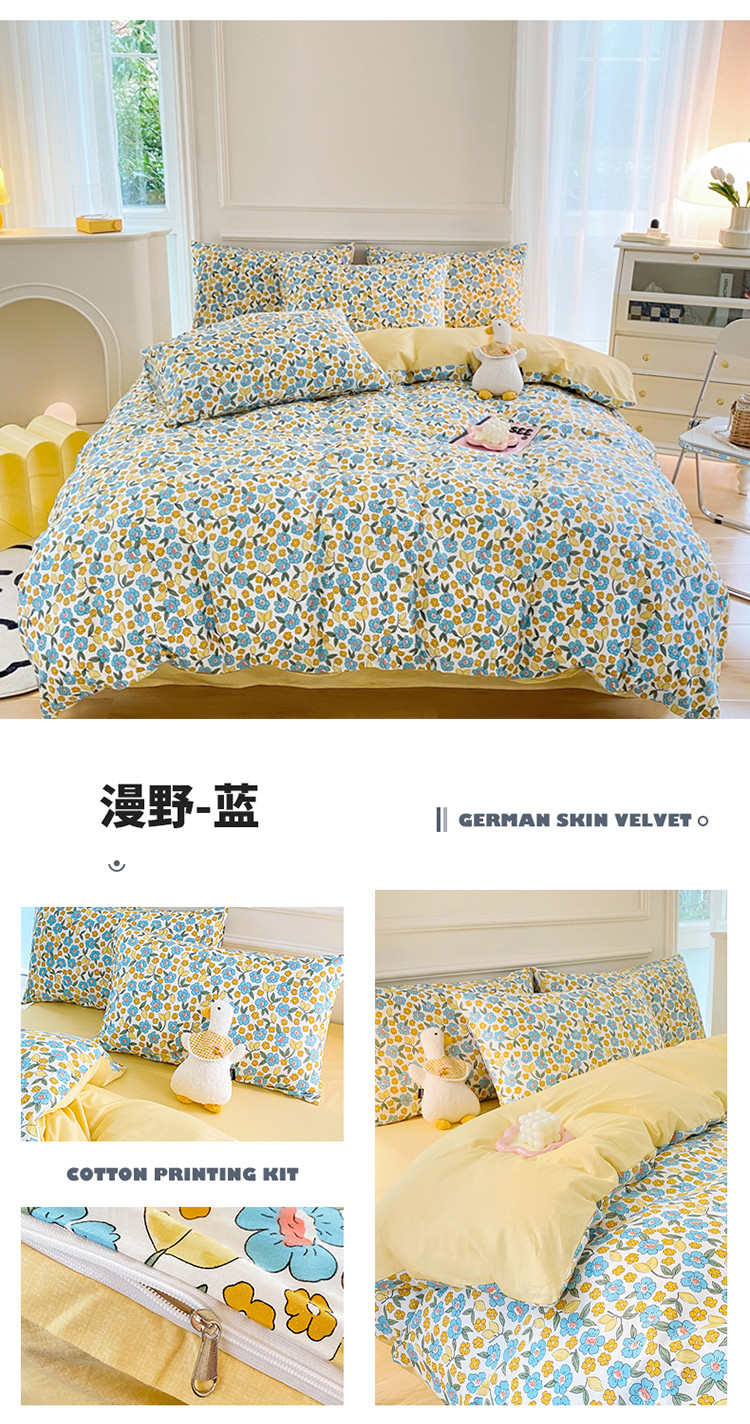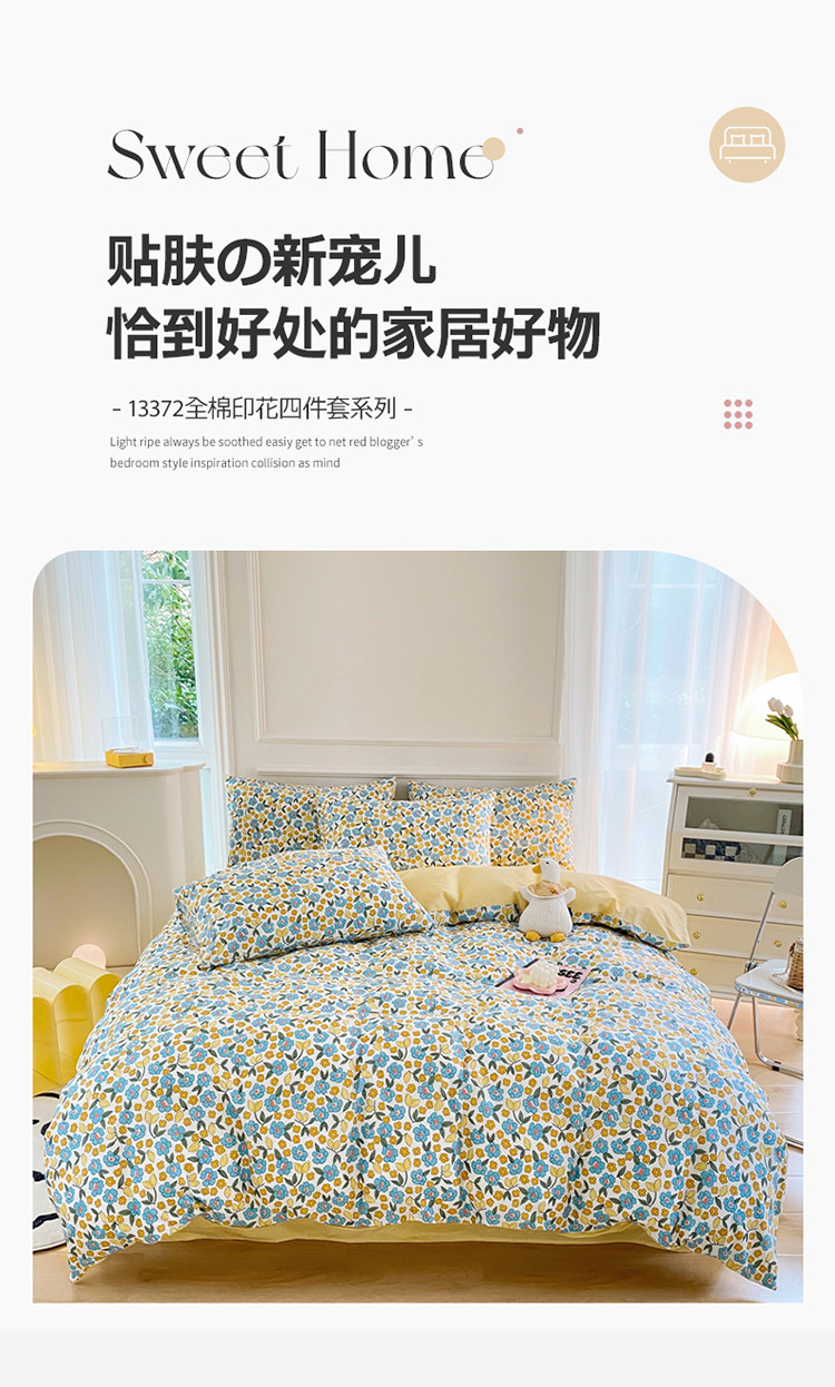 星巴k家纺 2023全棉13372花卉印花简约四件套漫野-蓝