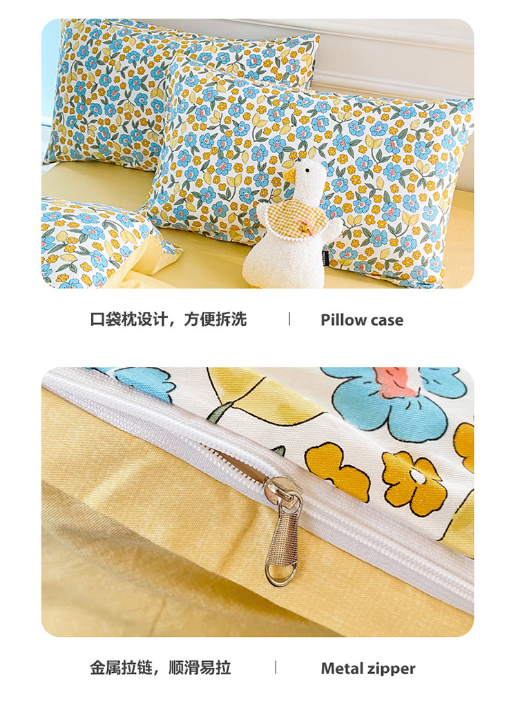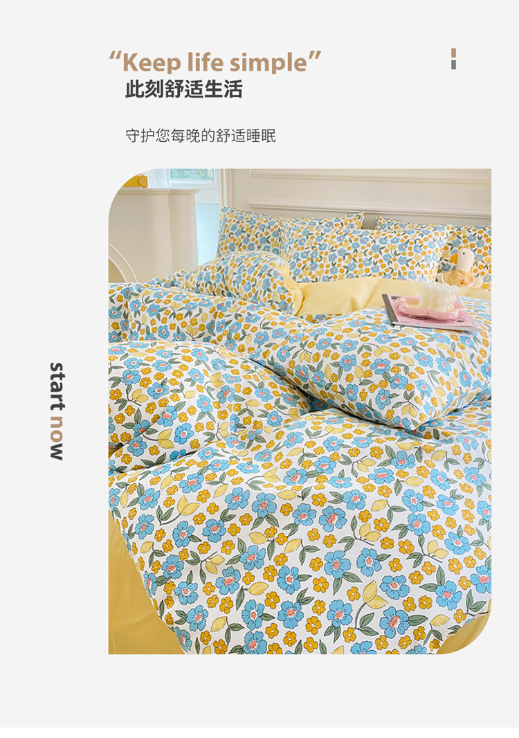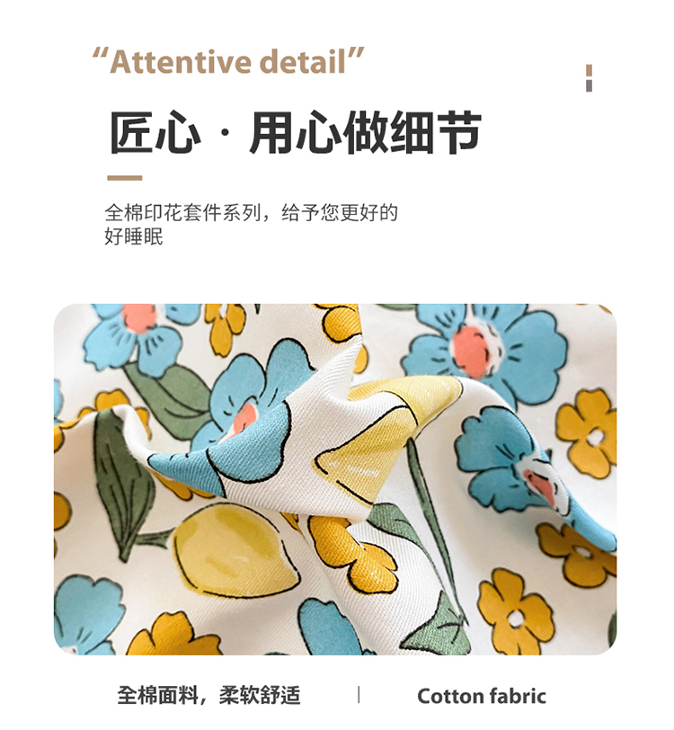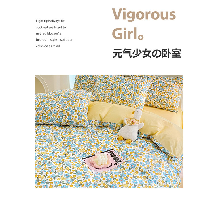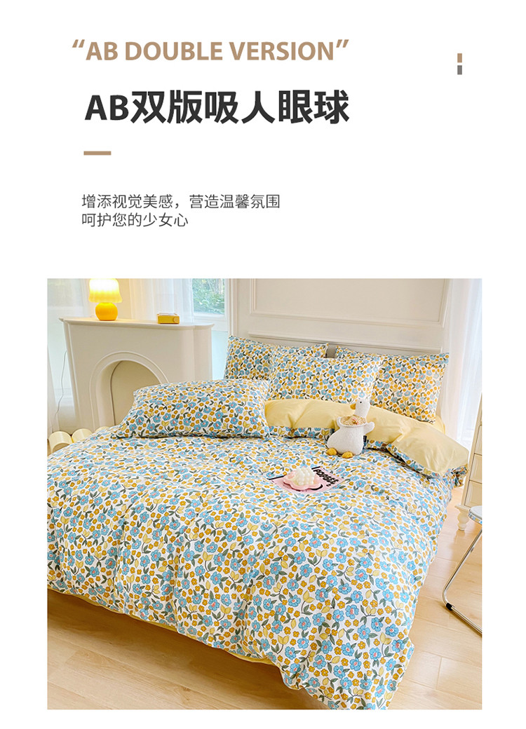 星巴k家纺 2023全棉13372花卉印花简约四件套漫野-蓝