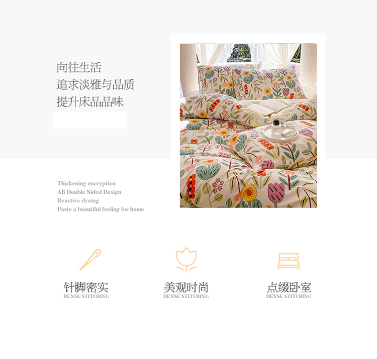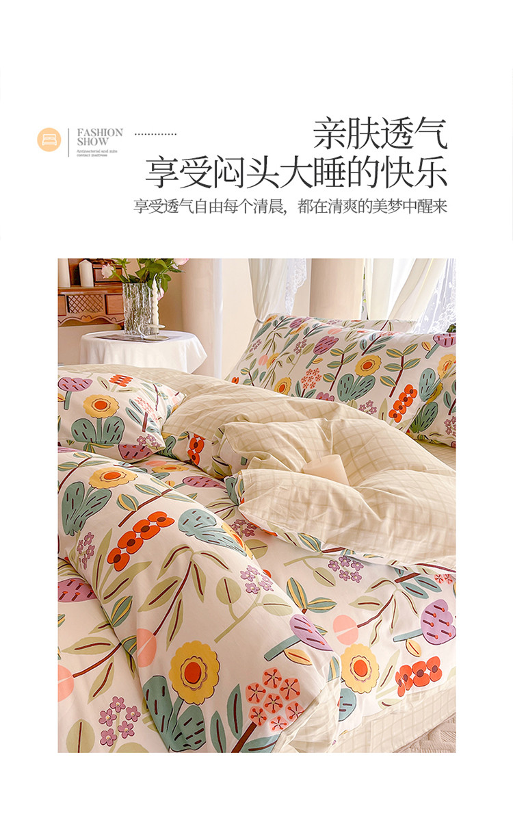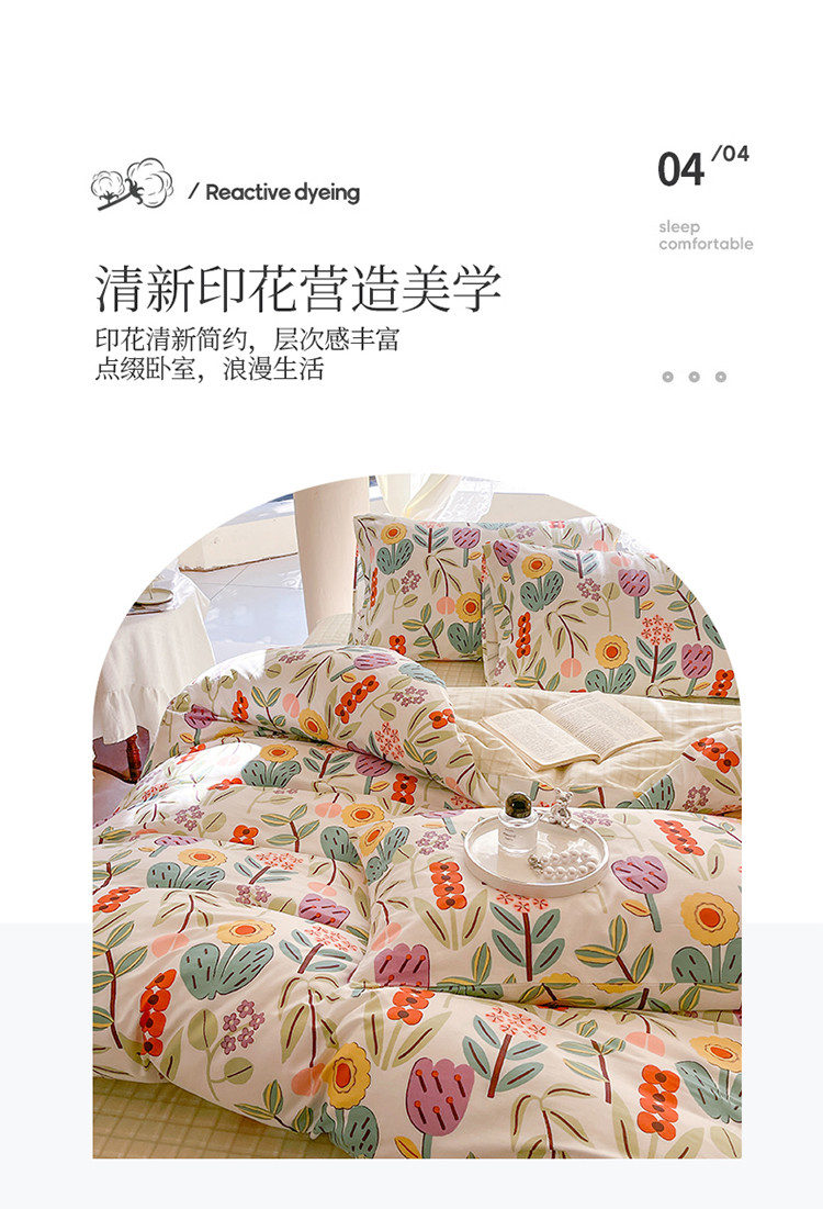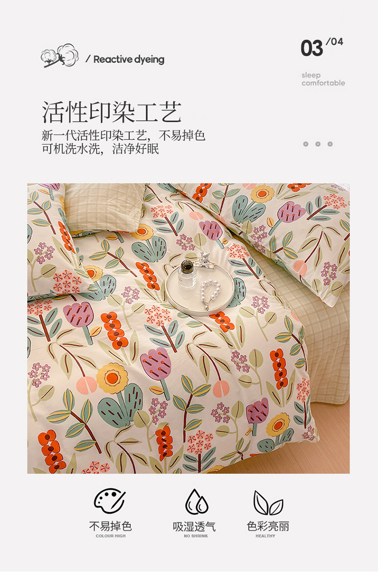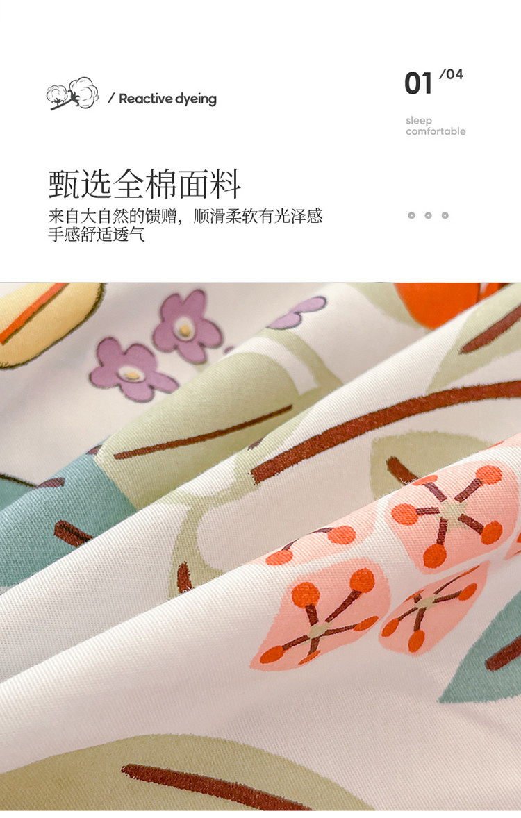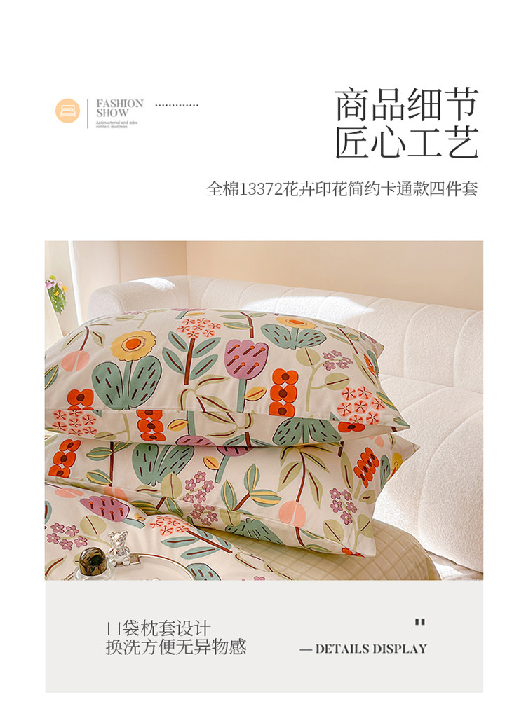 商品名称:星巴k家纺2023新款全棉13372花卉印花简约卡通款多规格四件套梨木