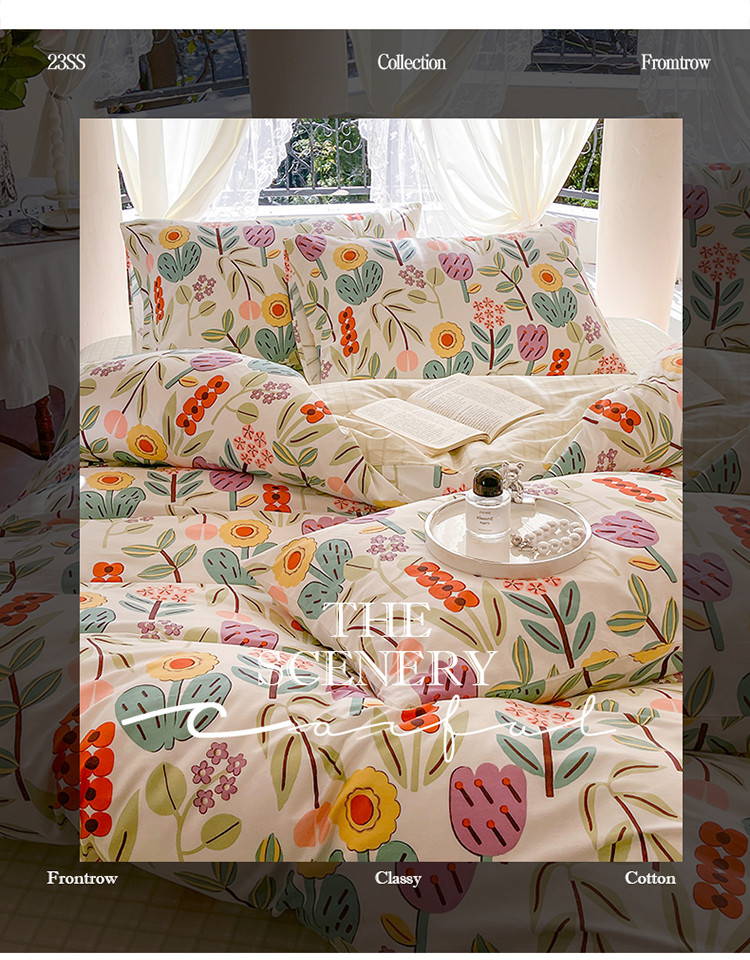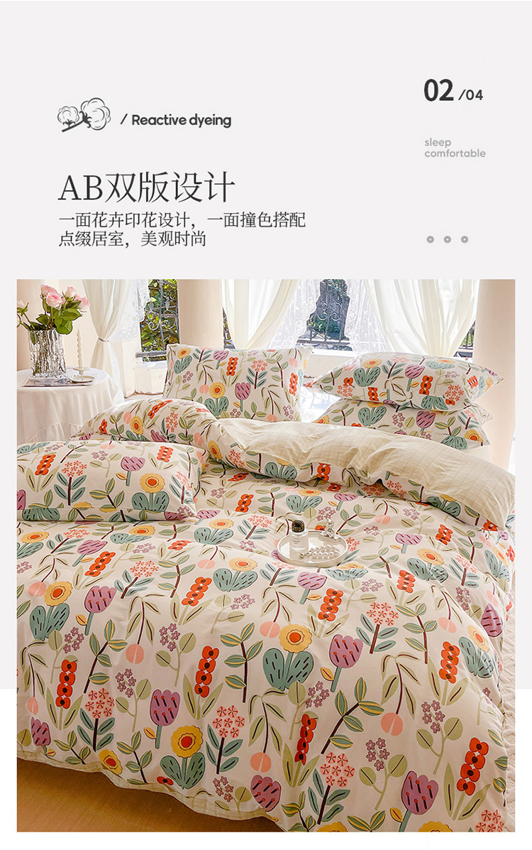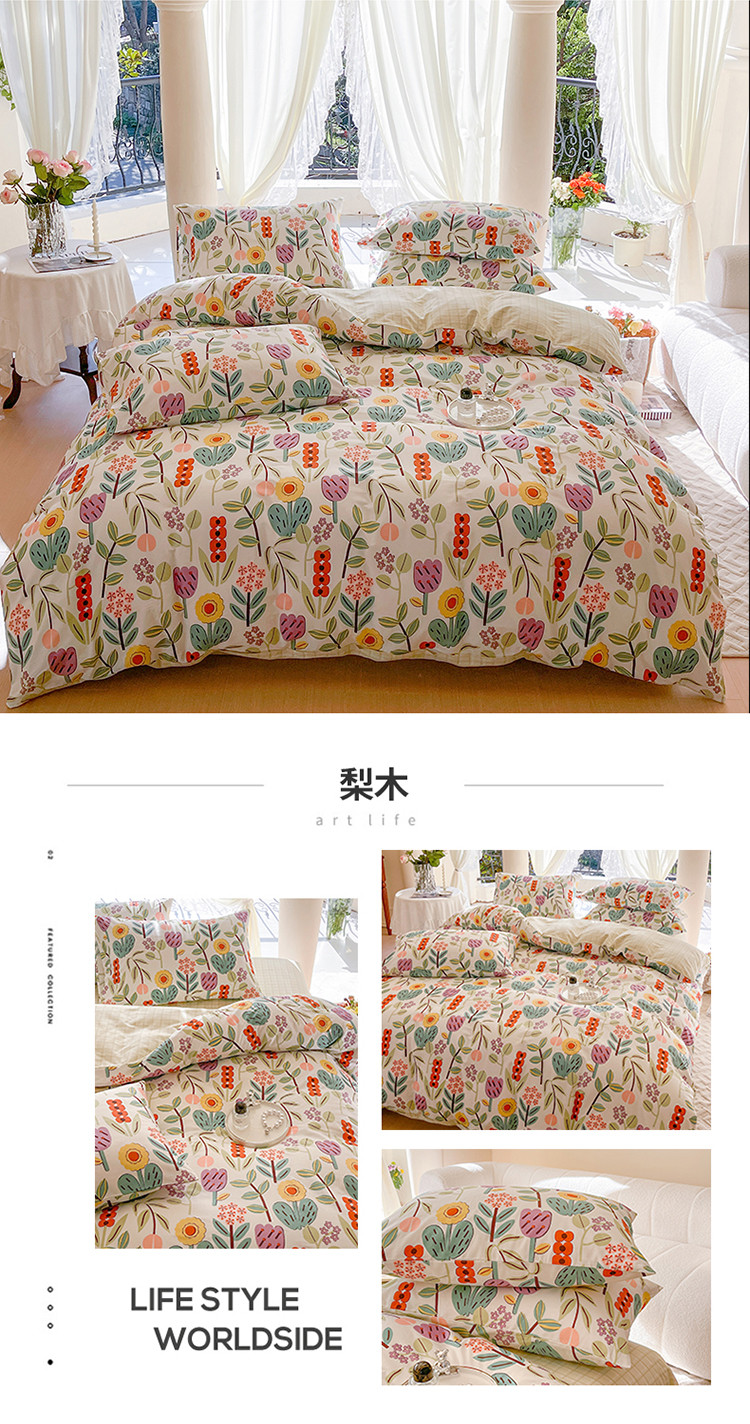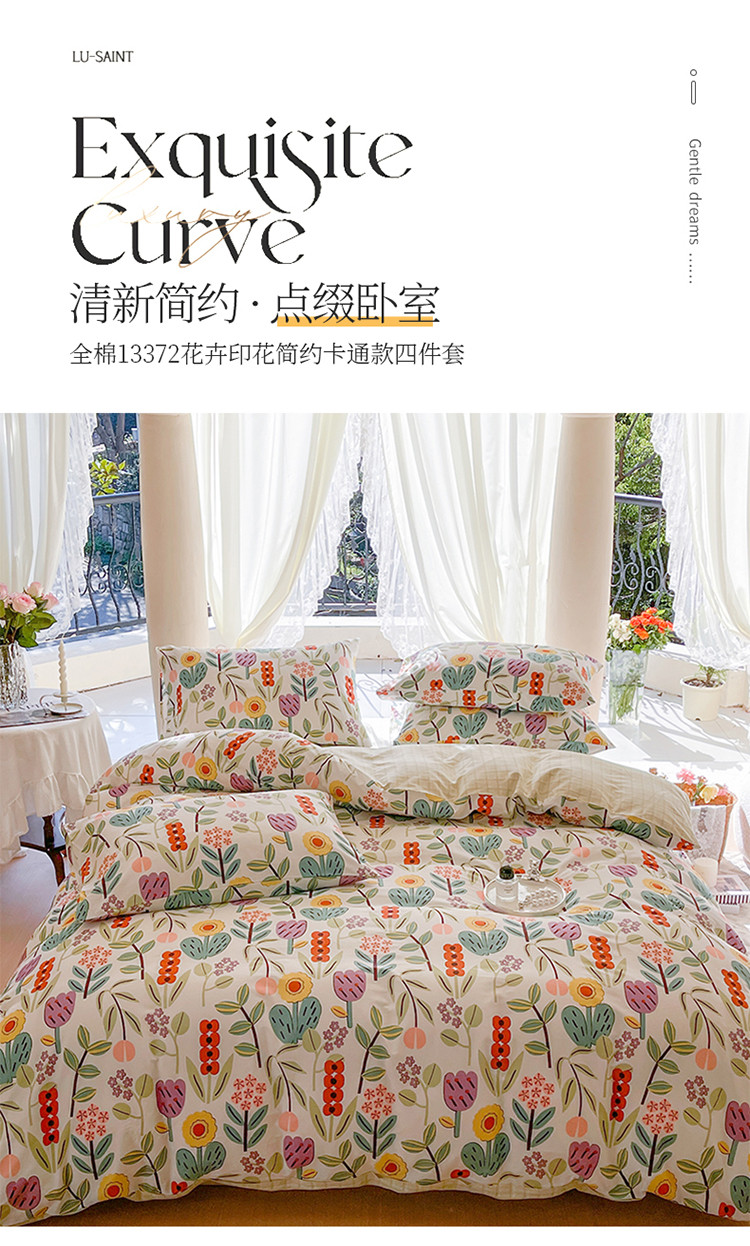 星巴k家纺2023新款全棉13372花卉印花简约卡通款多规格四件套梨木