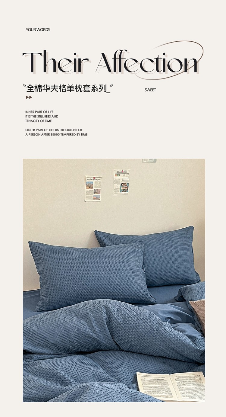 商品名称:雅居纺 2023新款全棉华夫格单品枕套 华夫格雾蓝