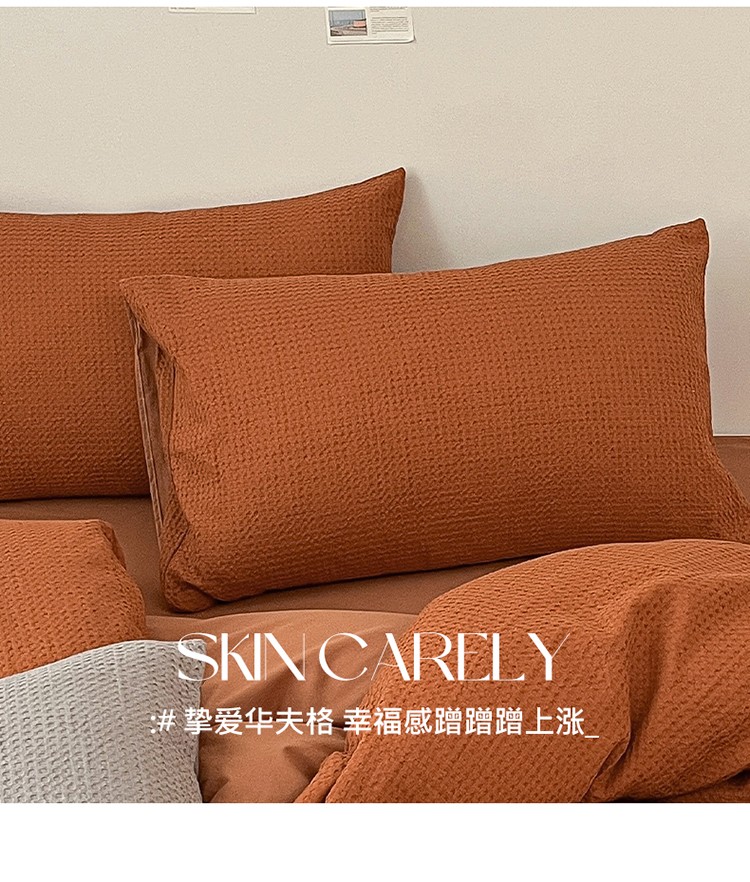 (总)雅居纺家纺 2022新款全棉华夫格普通款四件套,焦糖,米驼,奶油白,柔粉,深灰,雾蓝,月灰