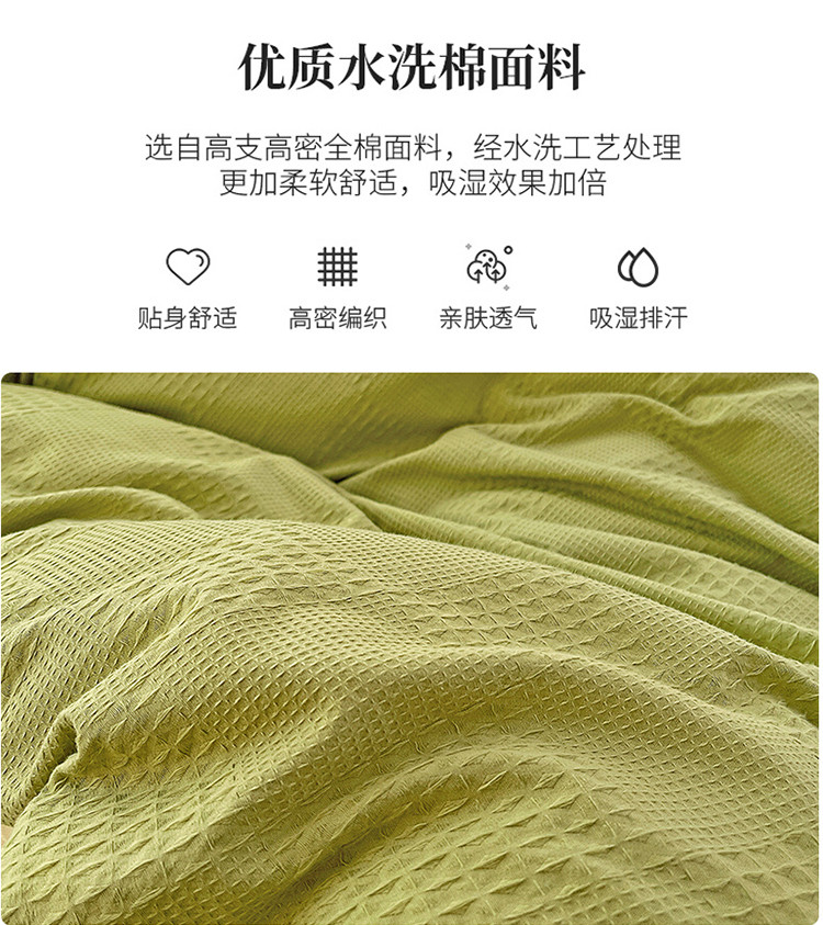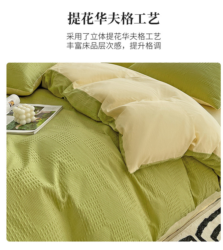 商品名称:娜娜 2023新款全棉水洗棉华夫格四件套 华夫格-抹茶绿