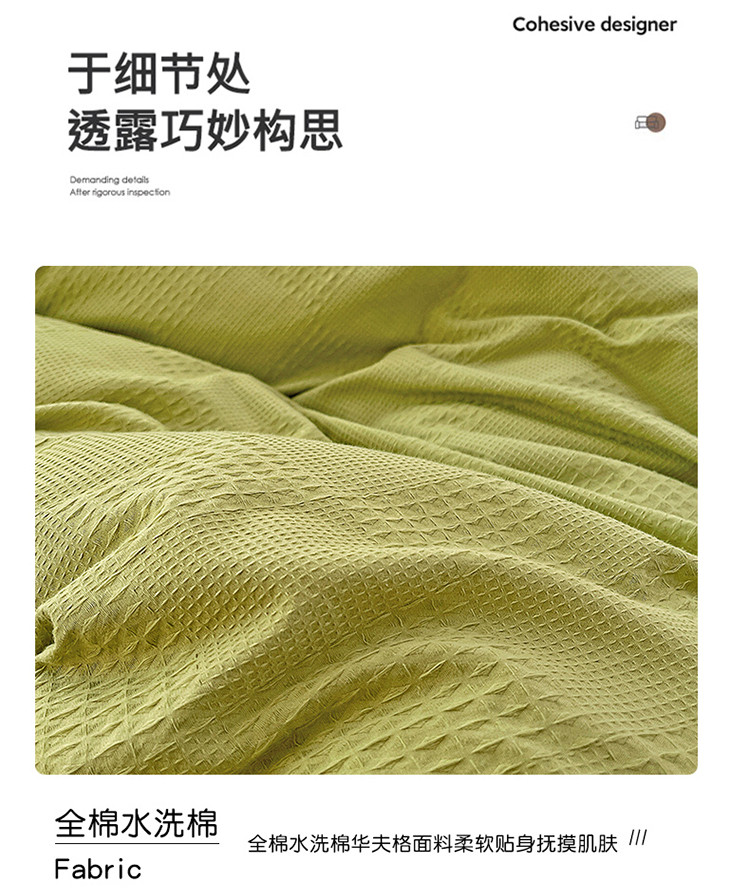 娜娜 2023新款全棉水洗棉华夫格四件套 华夫格-抹茶绿