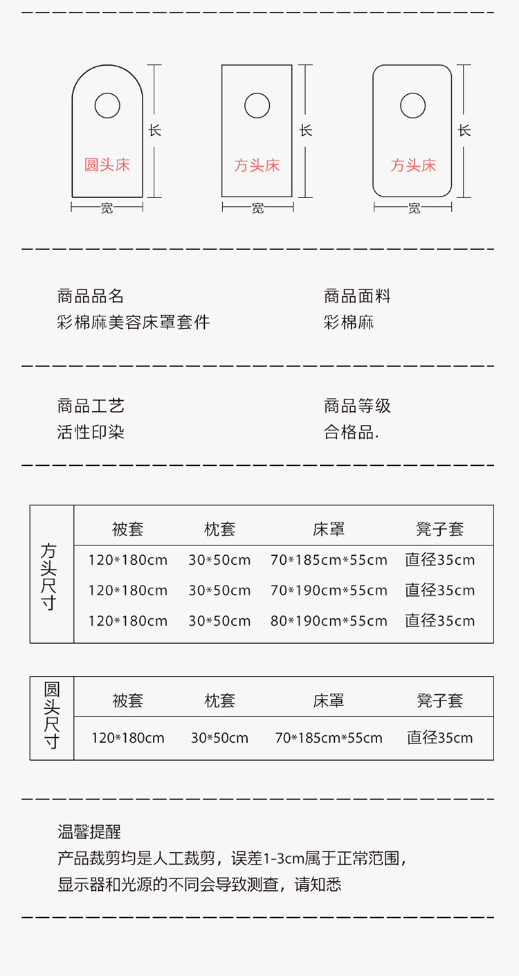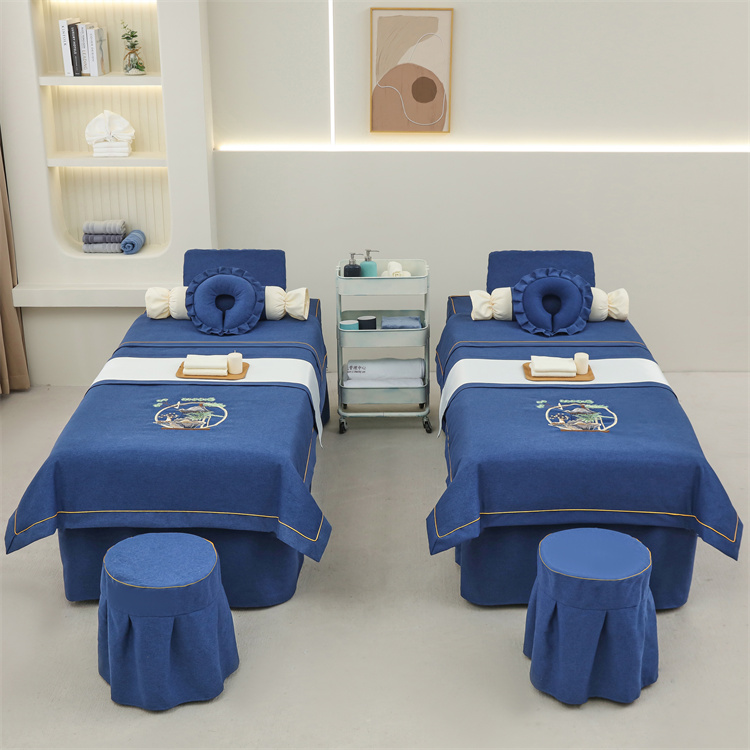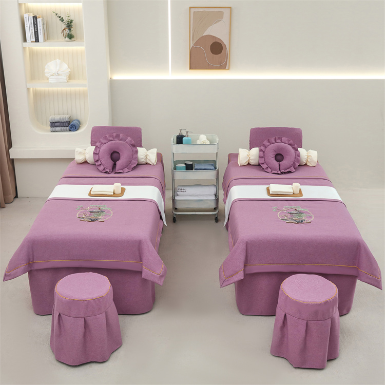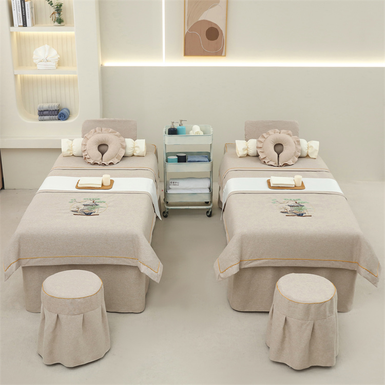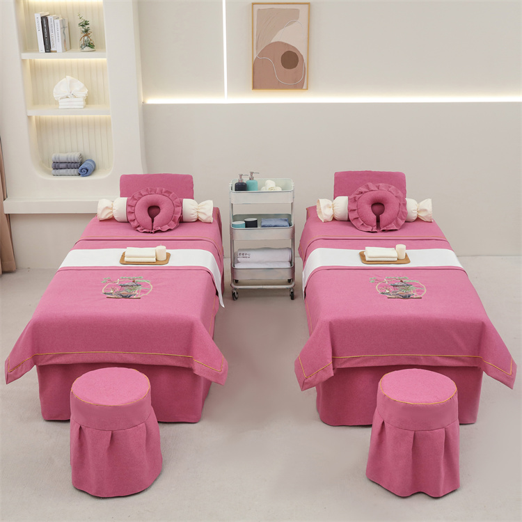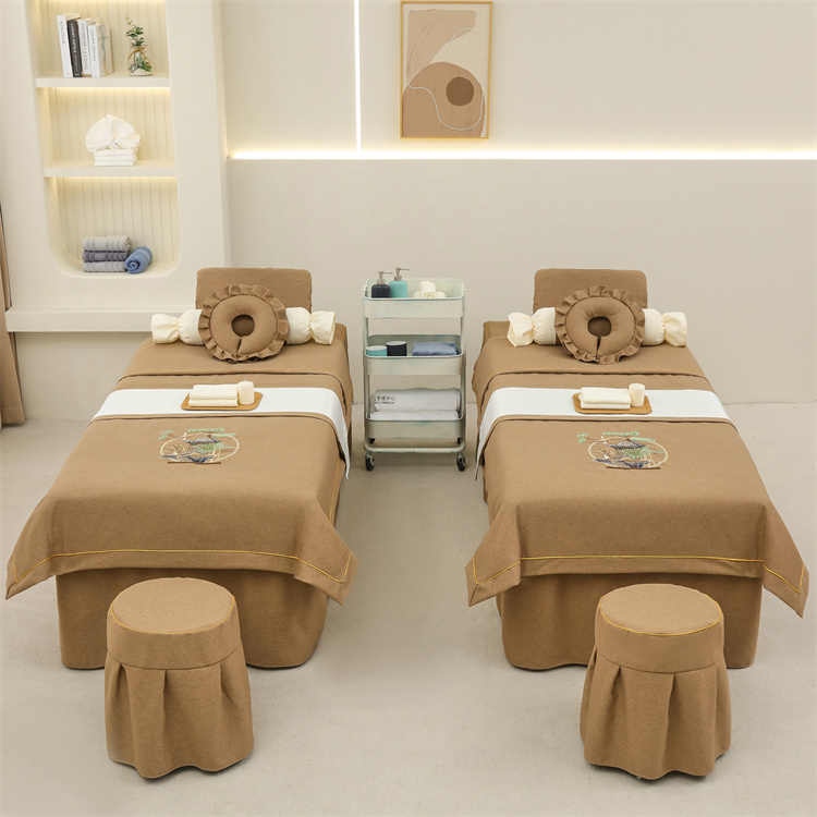 (总)莉人坊 2023至尊丽人裙摆彩棉麻美容床罩,至尊丽人粉色+米黄,至尊丽人海蓝+米黄,至尊丽人湖蓝+米黄,至尊丽人驼色+米黄,至尊丽人紫色+米黄,至尊丽人灰色+米黄,至尊丽人酒红+米黄