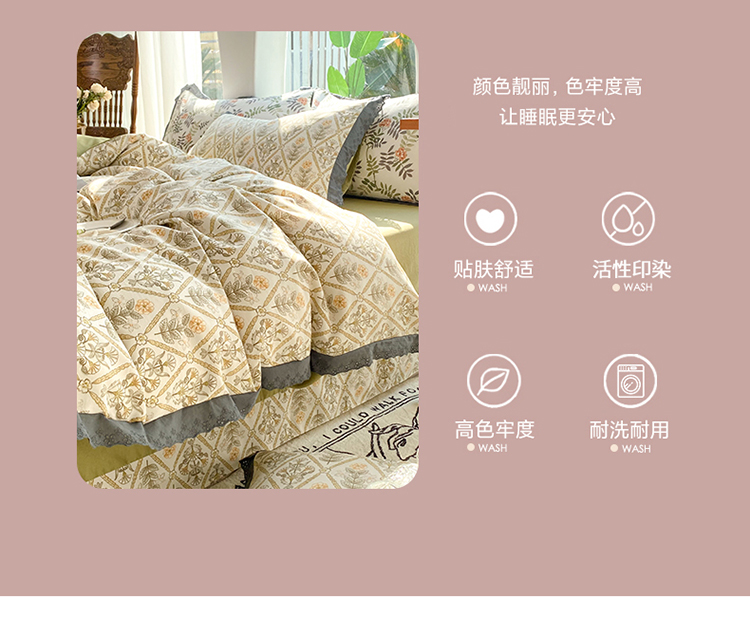 (总)艾米 2023新款水洗棉麻双层纱系列四件套,暗香,饼干熊,菠萝兔,沉香,繁花,芳华,花海,花满夫橘色,快乐熊,流年,梦萝,千寻,牵牛花豆沙,牵牛花蓝,水墨,四叶草,童趣乐园,薰衣草豆沙,薰衣草紫,月野