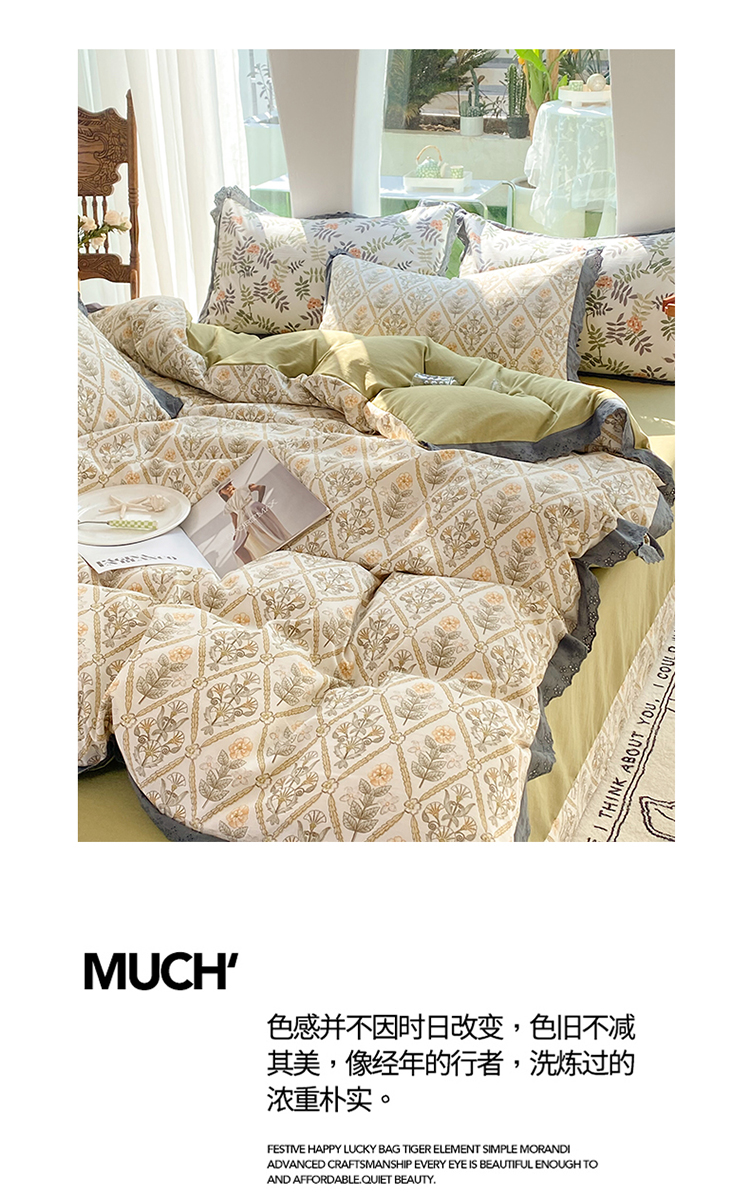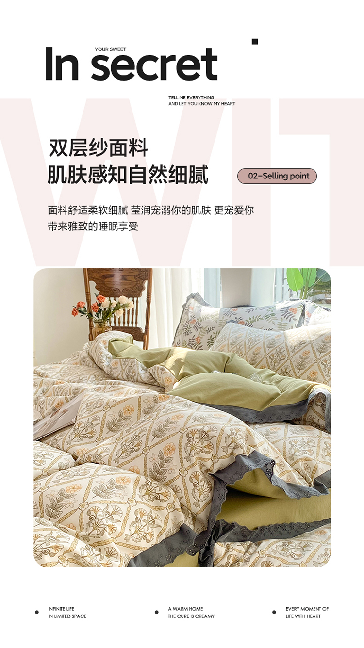 (总)艾米家居 2025新款A类天丝棉冰丝法式花边褶皱款四件套,绿野仙踪褶皱款,秘密花园皱褶款