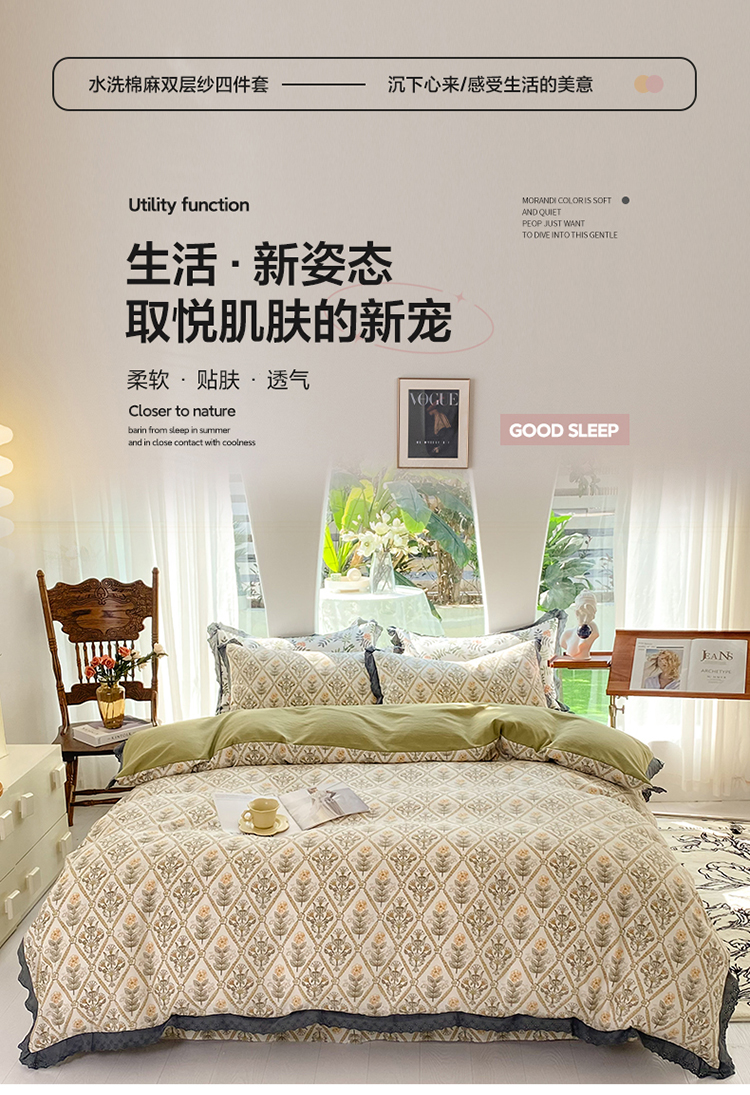 商品名称:艾米 2023新款水洗棉麻双层纱系列四件套 千寻
