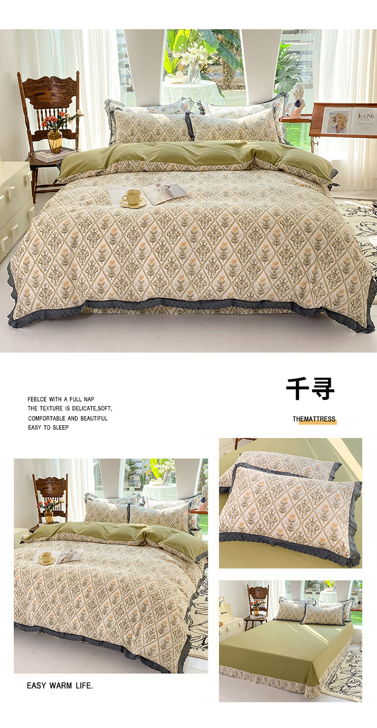 (总)艾米家居 2025秋冬新款牛奶绒泡泡印花花边四件套,豆沙条纹粉,蝴蝶花,太阳花