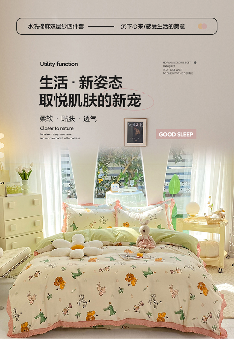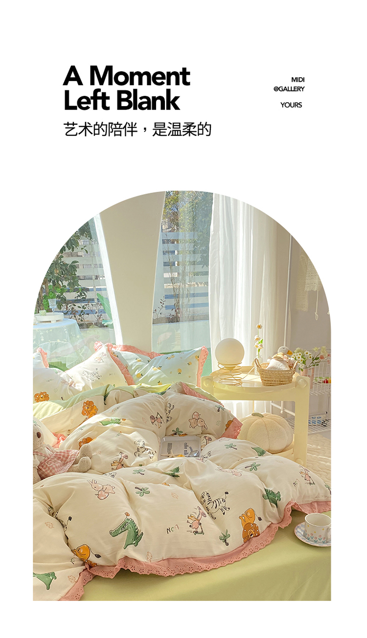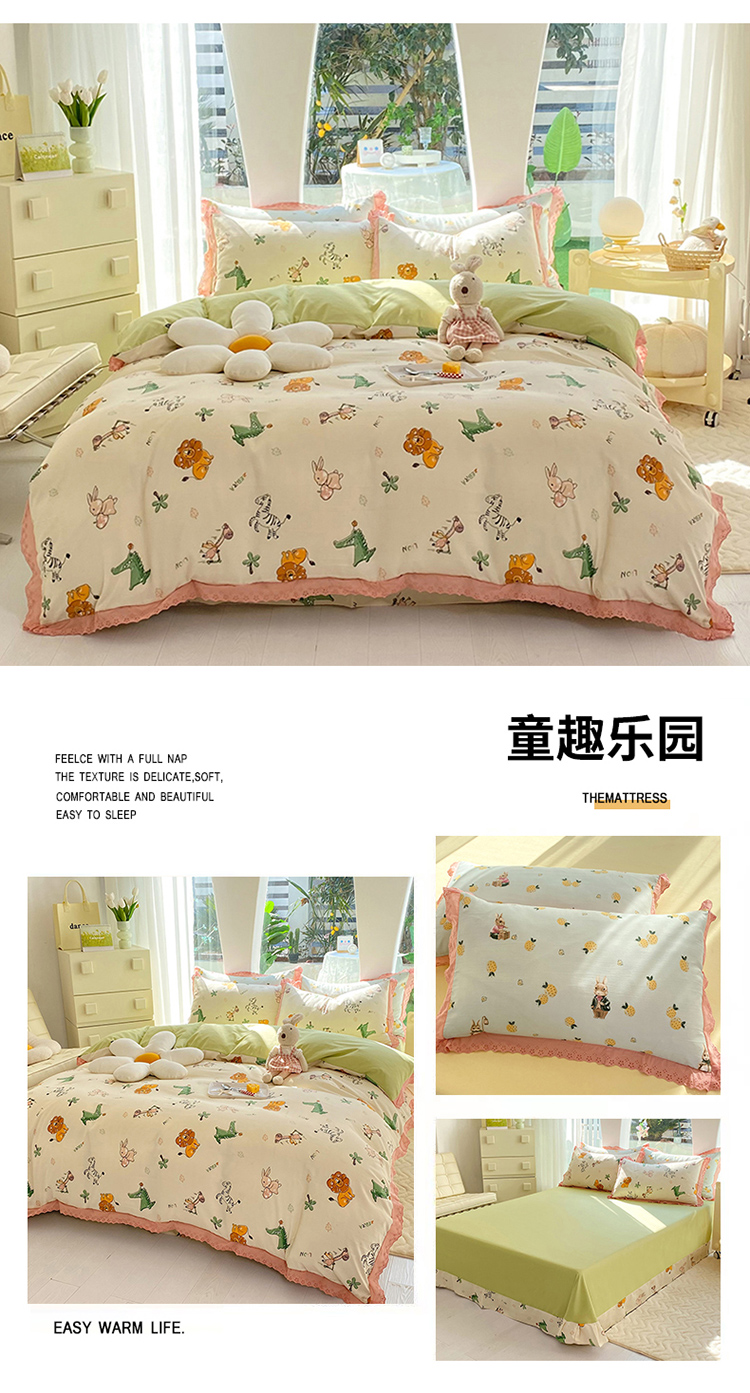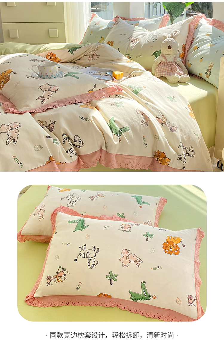艾米 2023新款水洗棉麻双层纱系列四件套 童趣乐园