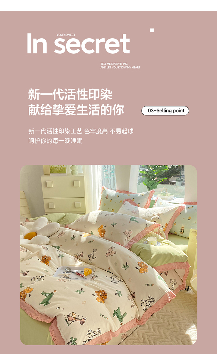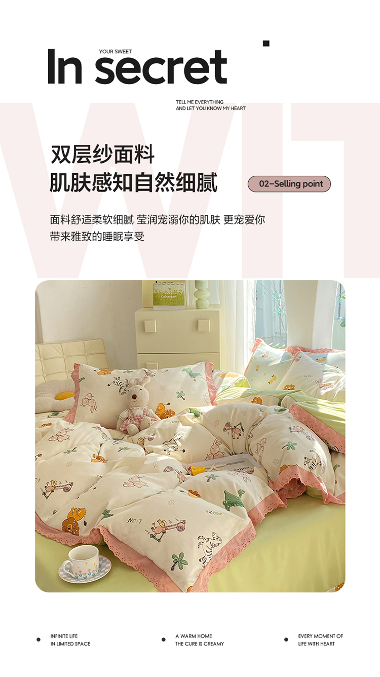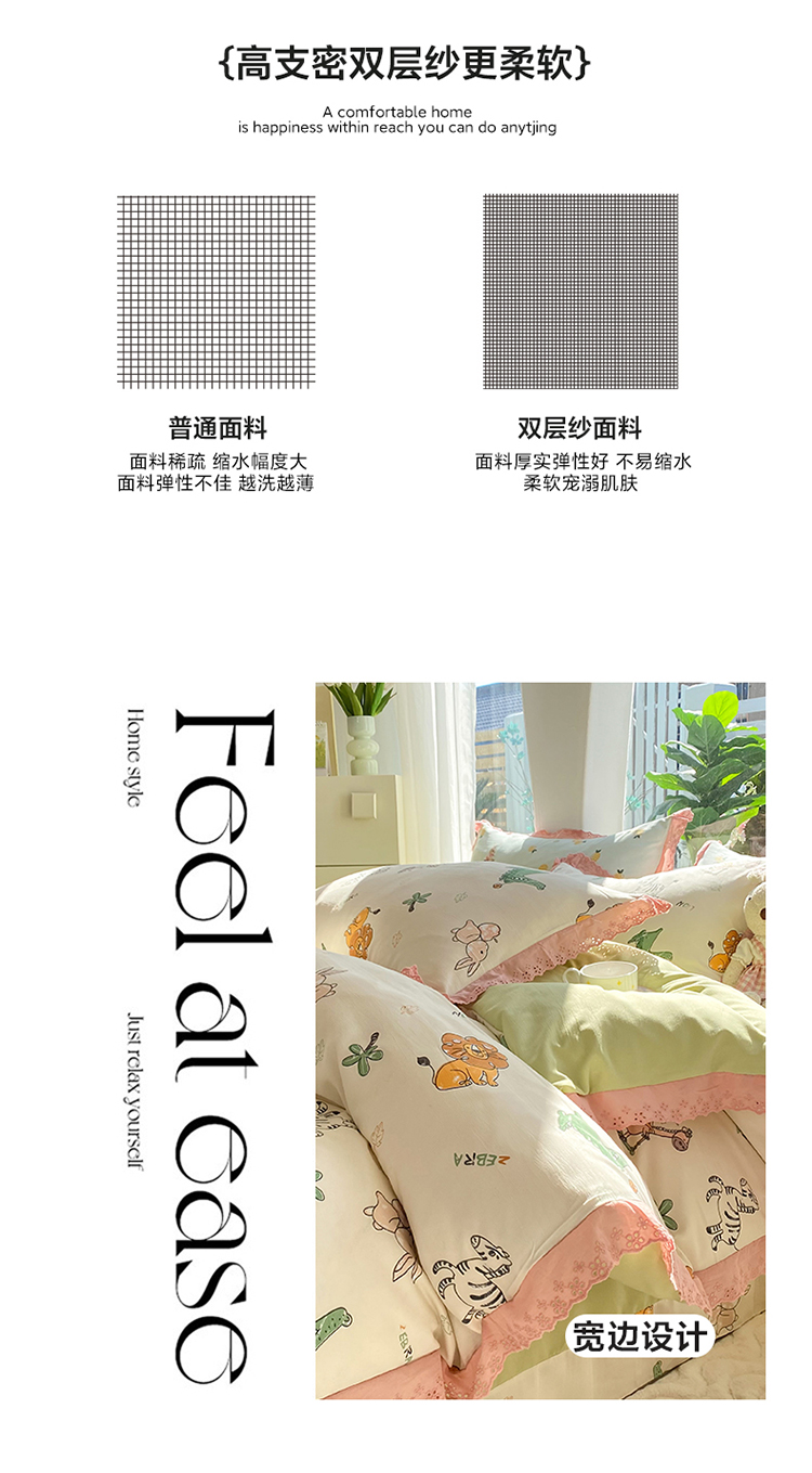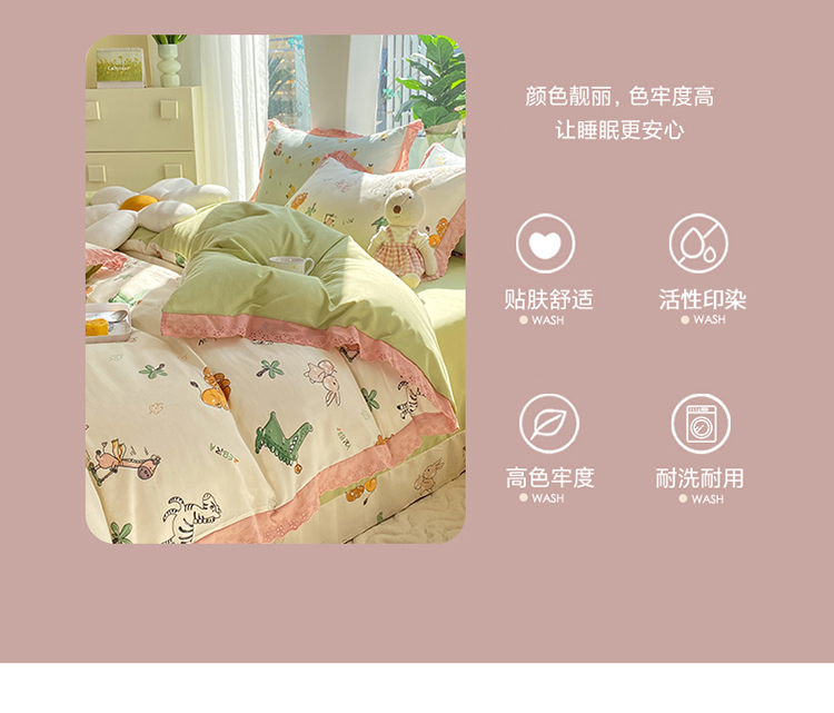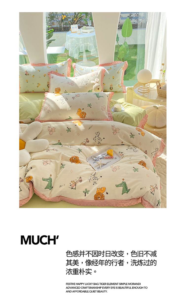 艾米 2023新款水洗棉麻双层纱系列四件套 童趣乐园
