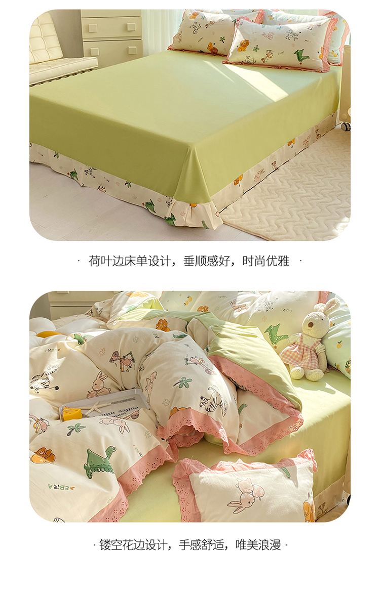 商品名称:艾米 2023新款水洗棉麻双层纱系列四件套 童趣乐园
