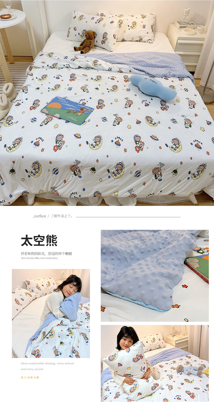 有货2023爆款春夏夏凉被小清新春秋被卡通针织棉豆豆被 太空熊